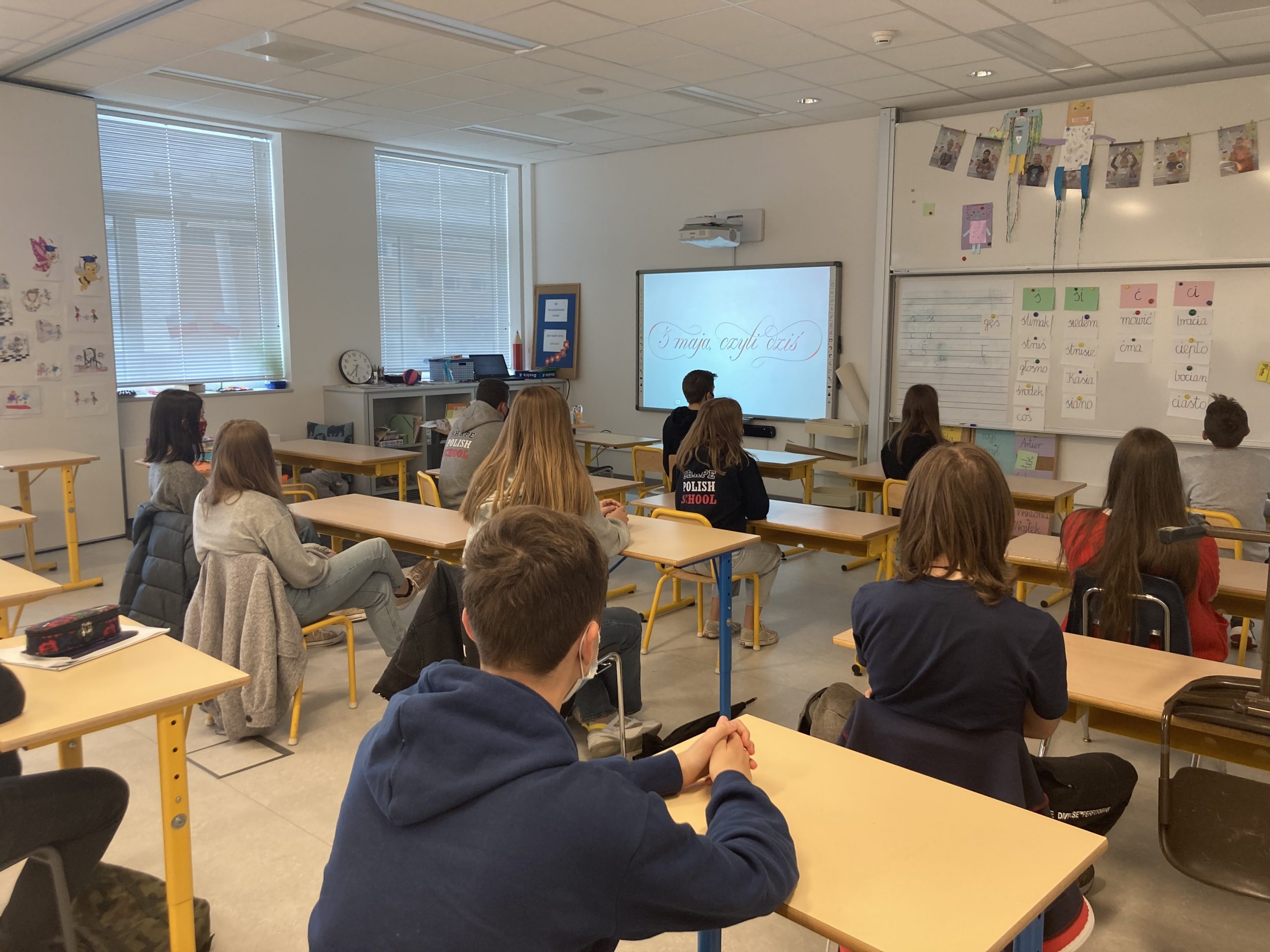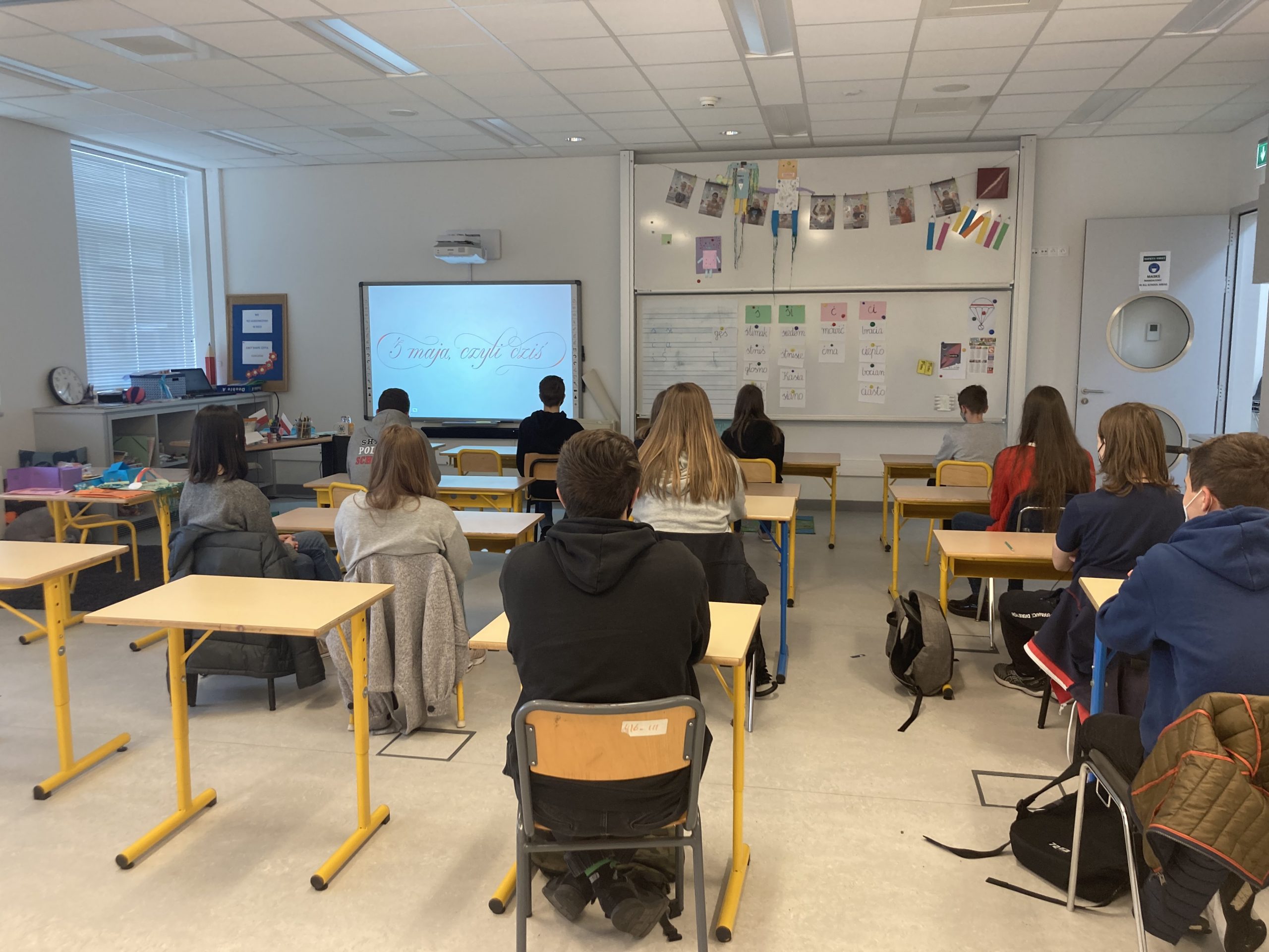 Dzięki współpracy naszej szkoły z Ambasadą RP w Królestwie Belgii możliwa stała się projekcja filmu pt. „3 maja, czyli dziś”. To pełnometrażowy film dokumentalny, przygotowany przez Telewizję Polską S.A. z okazji 230 rocznicy uchwalenia Konstytucji 3 Maja.
