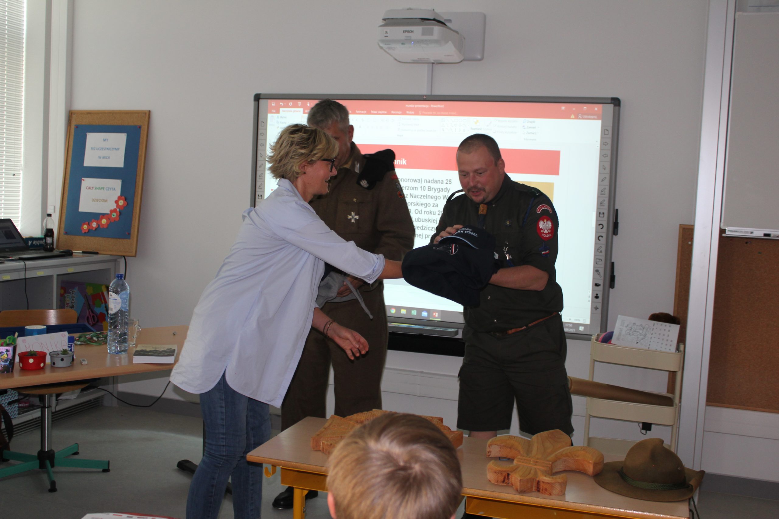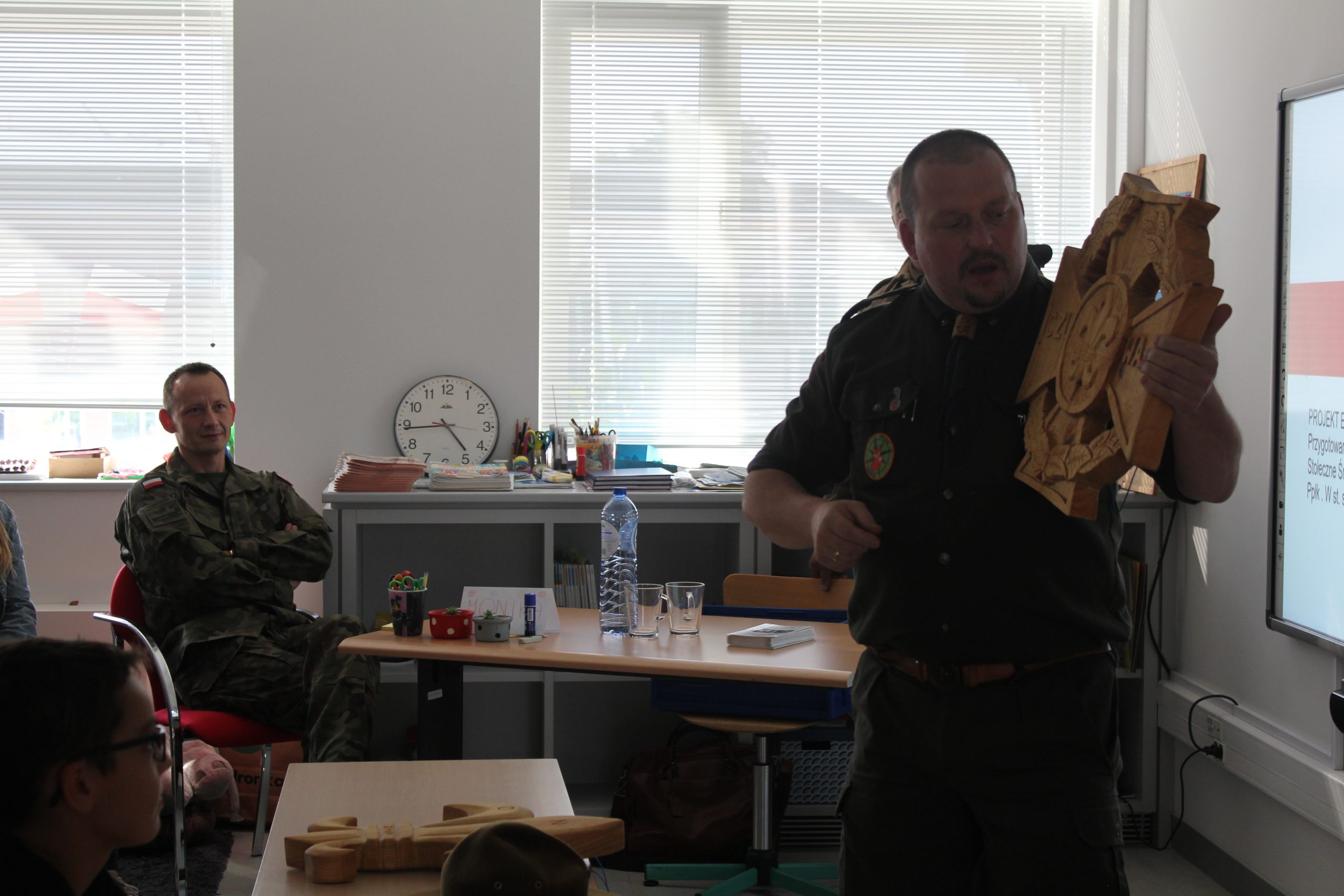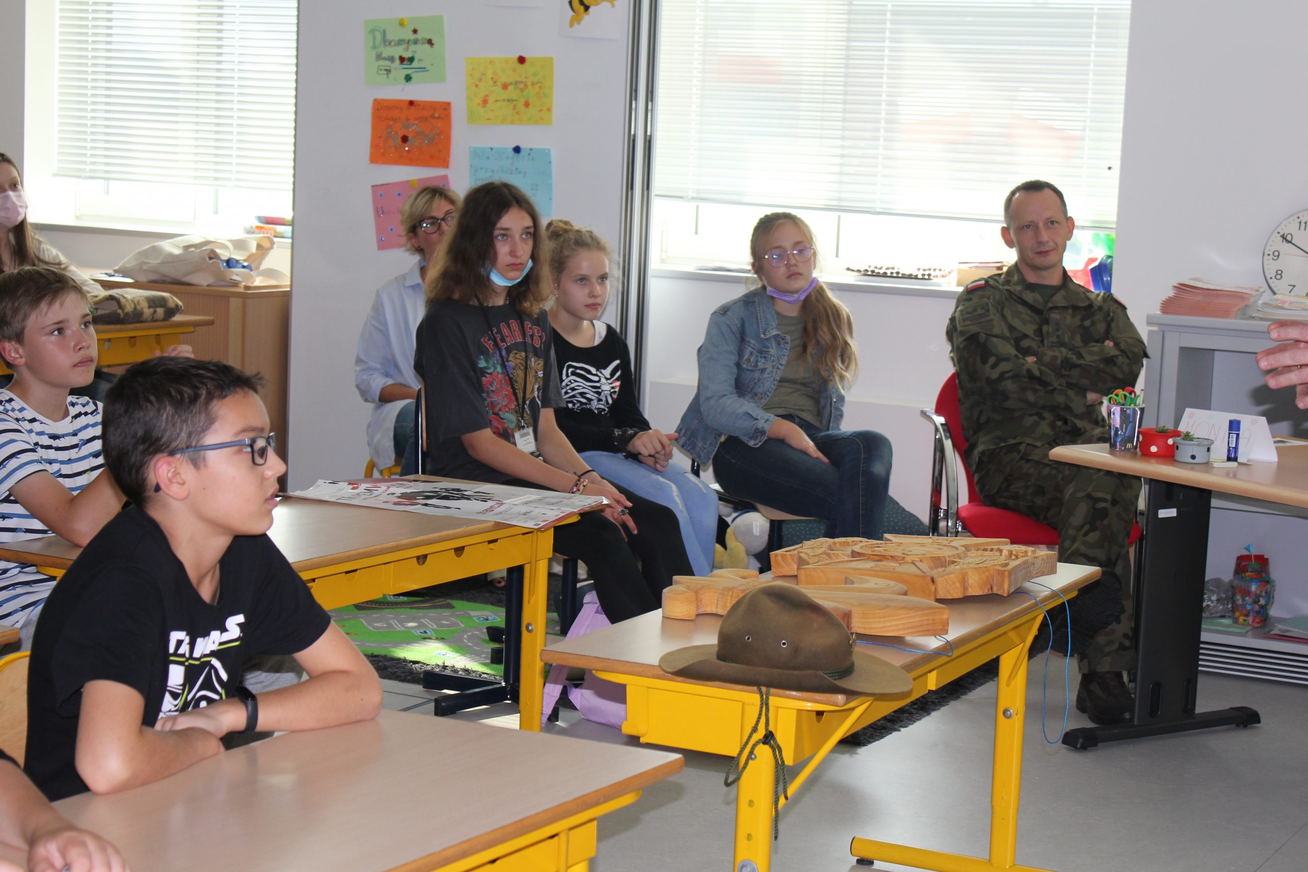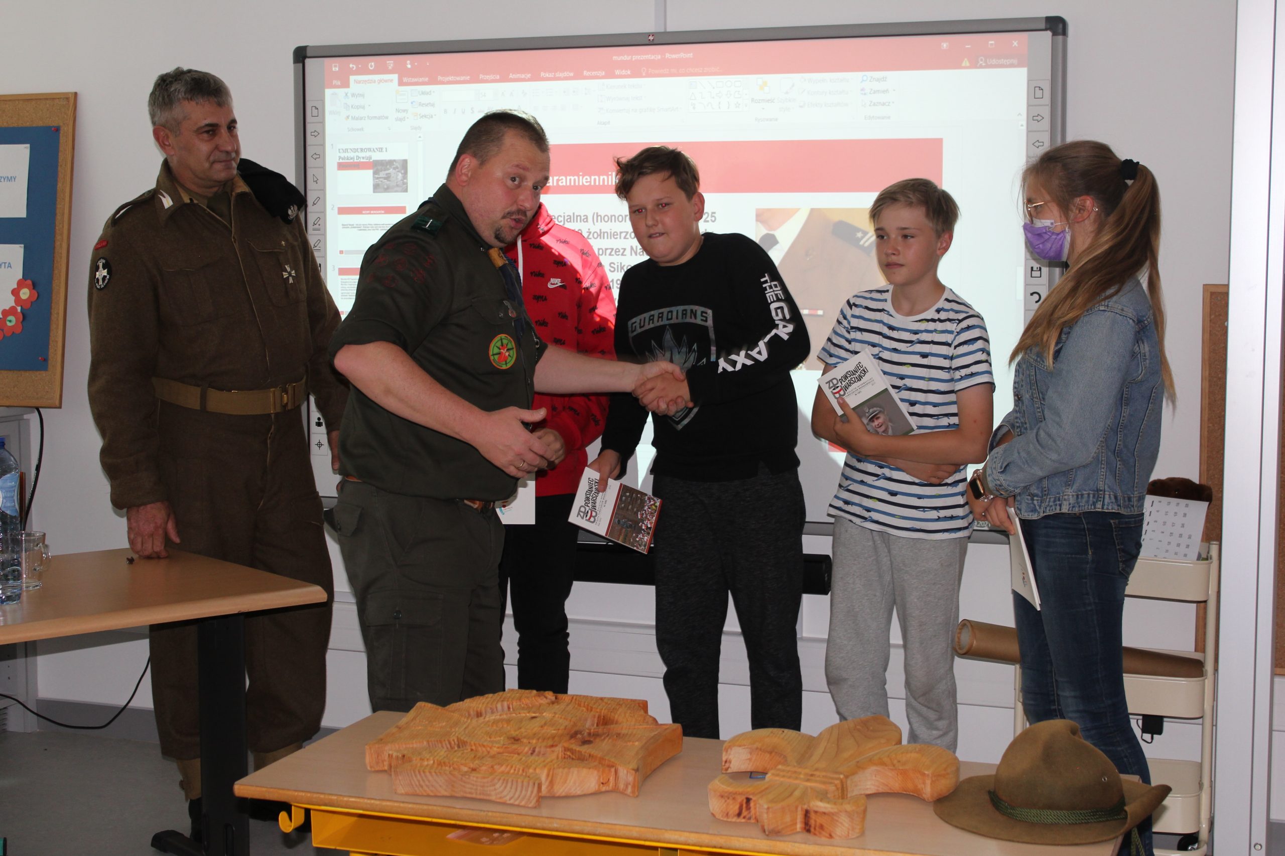 Uczniowie z uwagą słuchali, jak z wielką pasją i zaangażowaniem opowiadali o prawdziwym harcerskim życiu i o harcerskich ideałach: Ojczyźnie, Nauce i Cnocie.