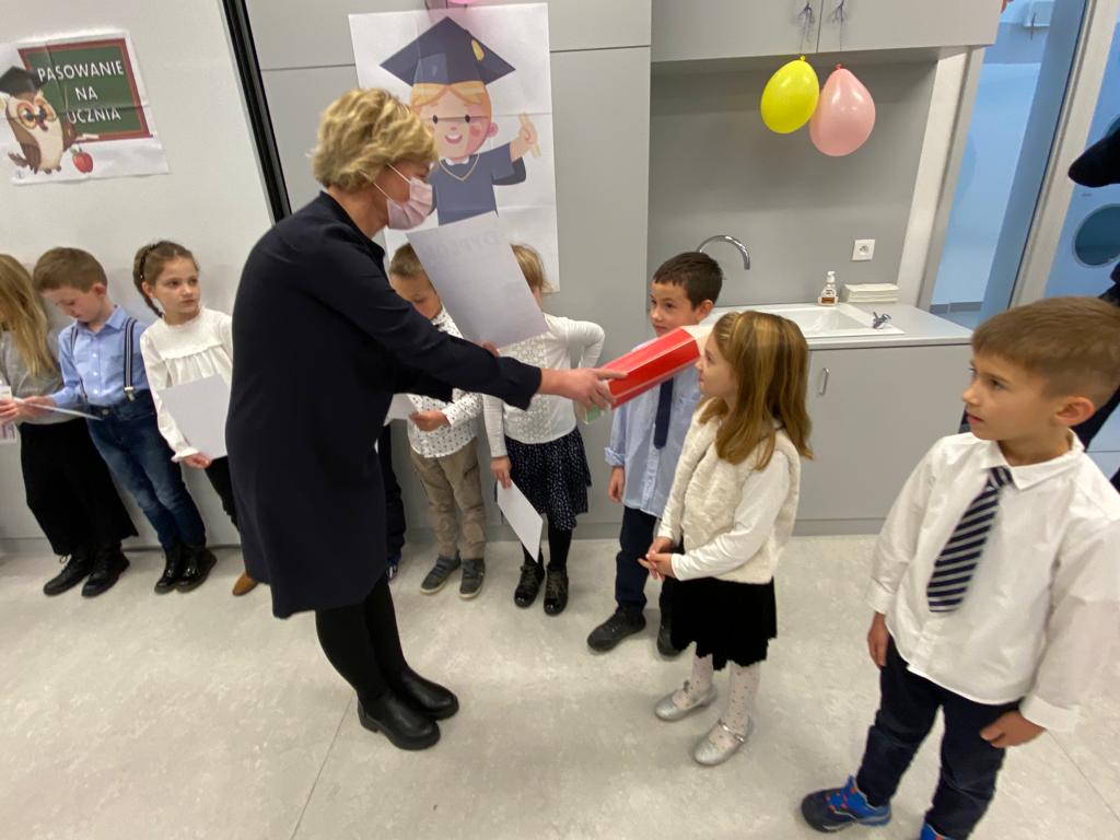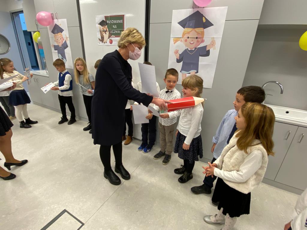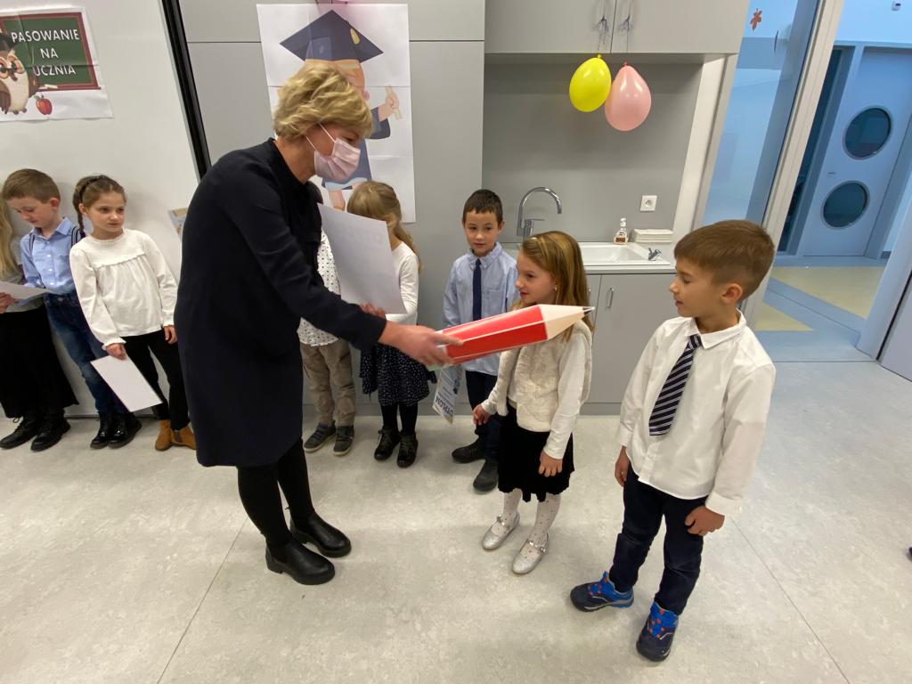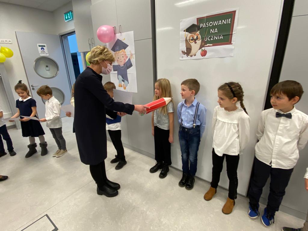 W sobotę 13 listopada 2021 r. odbyła się uroczystość PASOWANIA NA UCZNIA, podczas której dzieci oficjalnie przyjęte zostały do grona uczniów naszej szkoły. Po wspaniałym występie, nasi najmłodsi podopieczni zostali pasowani na ucznia przez Panią Kierownik, Joannę Jurkiewicz za pomocą wielkiego ołówka.
