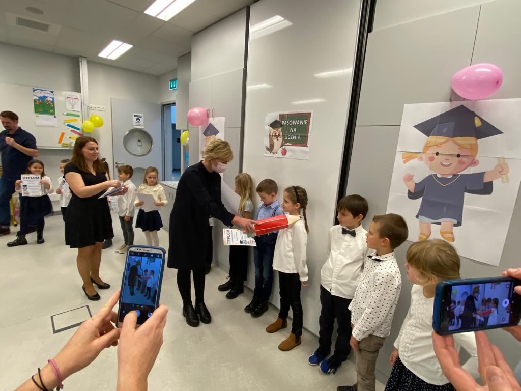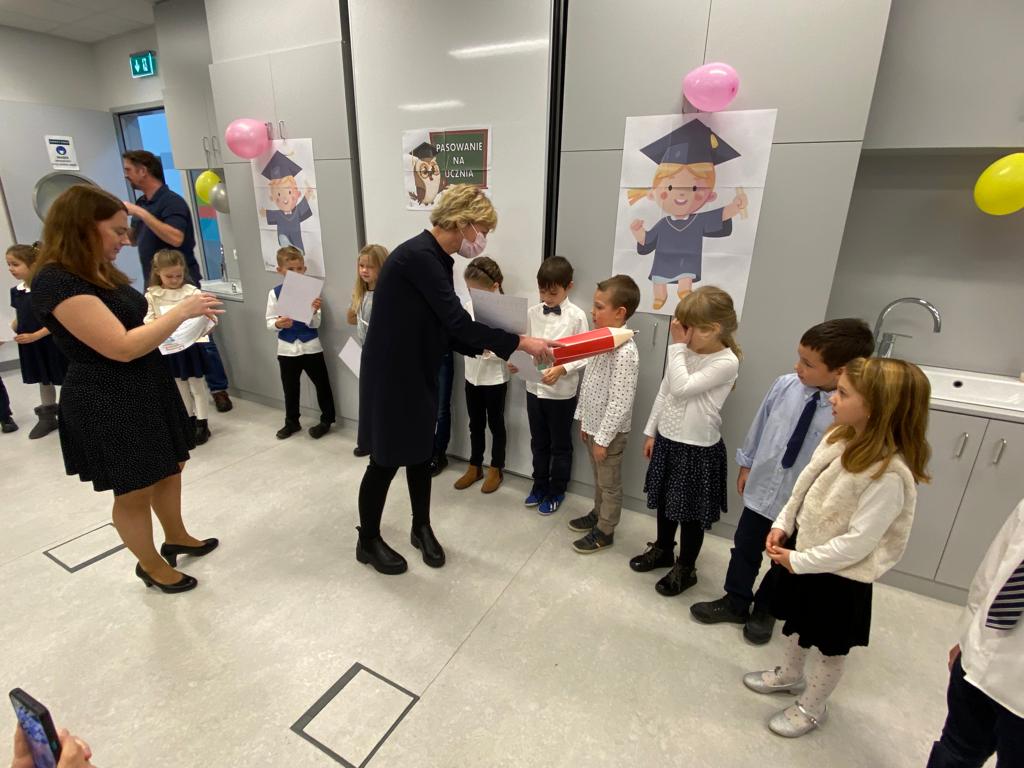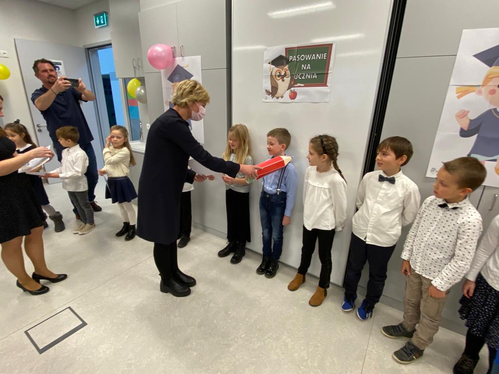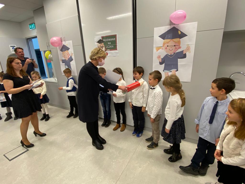W sobotę 13 listopada 2021 r. odbyła się uroczystość PASOWANIA NA UCZNIA, podczas której dzieci oficjalnie przyjęte zostały do grona uczniów naszej szkoły. Po wspaniałym występie, nasi najmłodsi podopieczni zostali pasowani na ucznia przez Panią Kierownik, Joannę Jurkiewicz za pomocą wielkiego ołówka.
