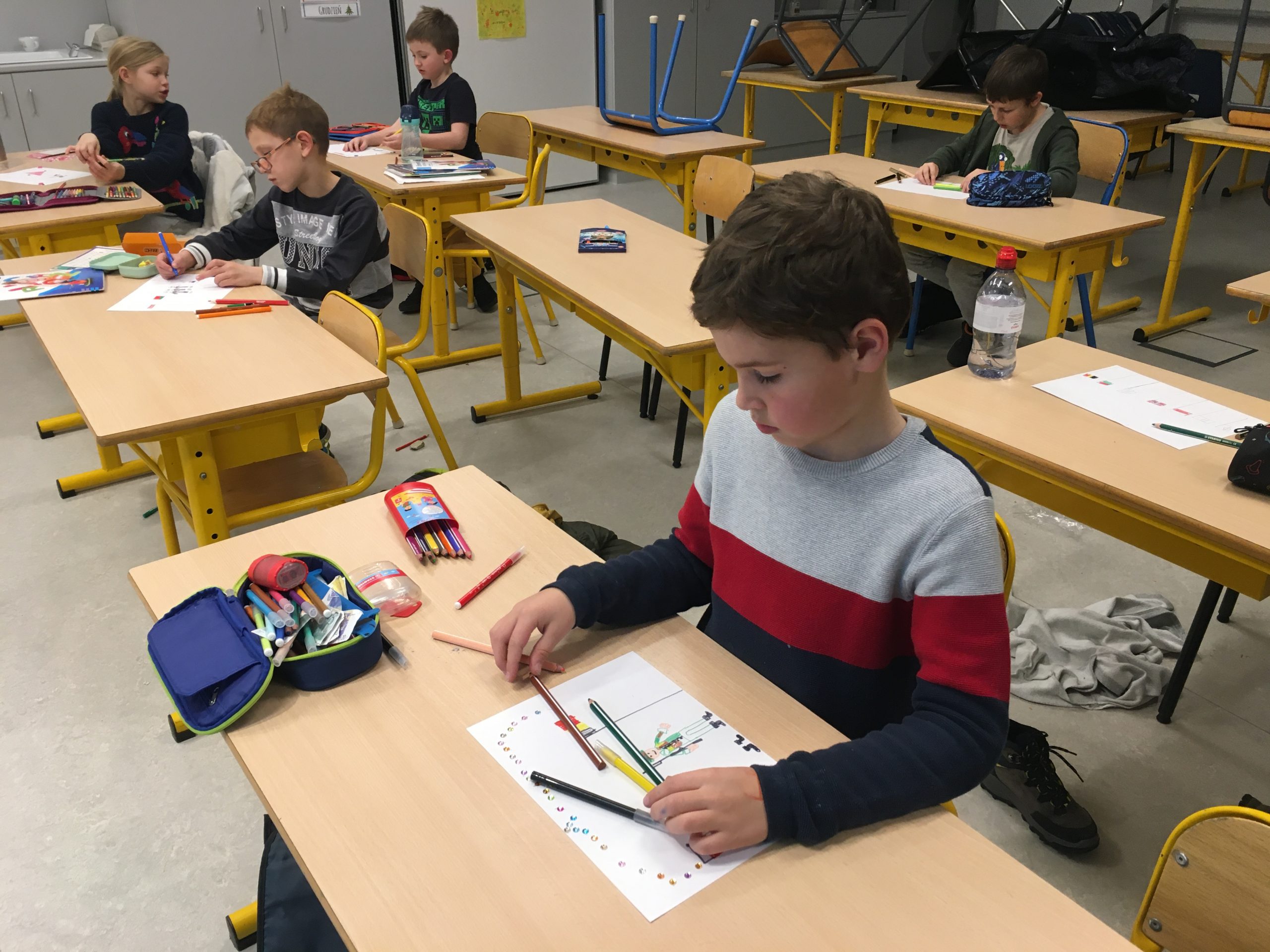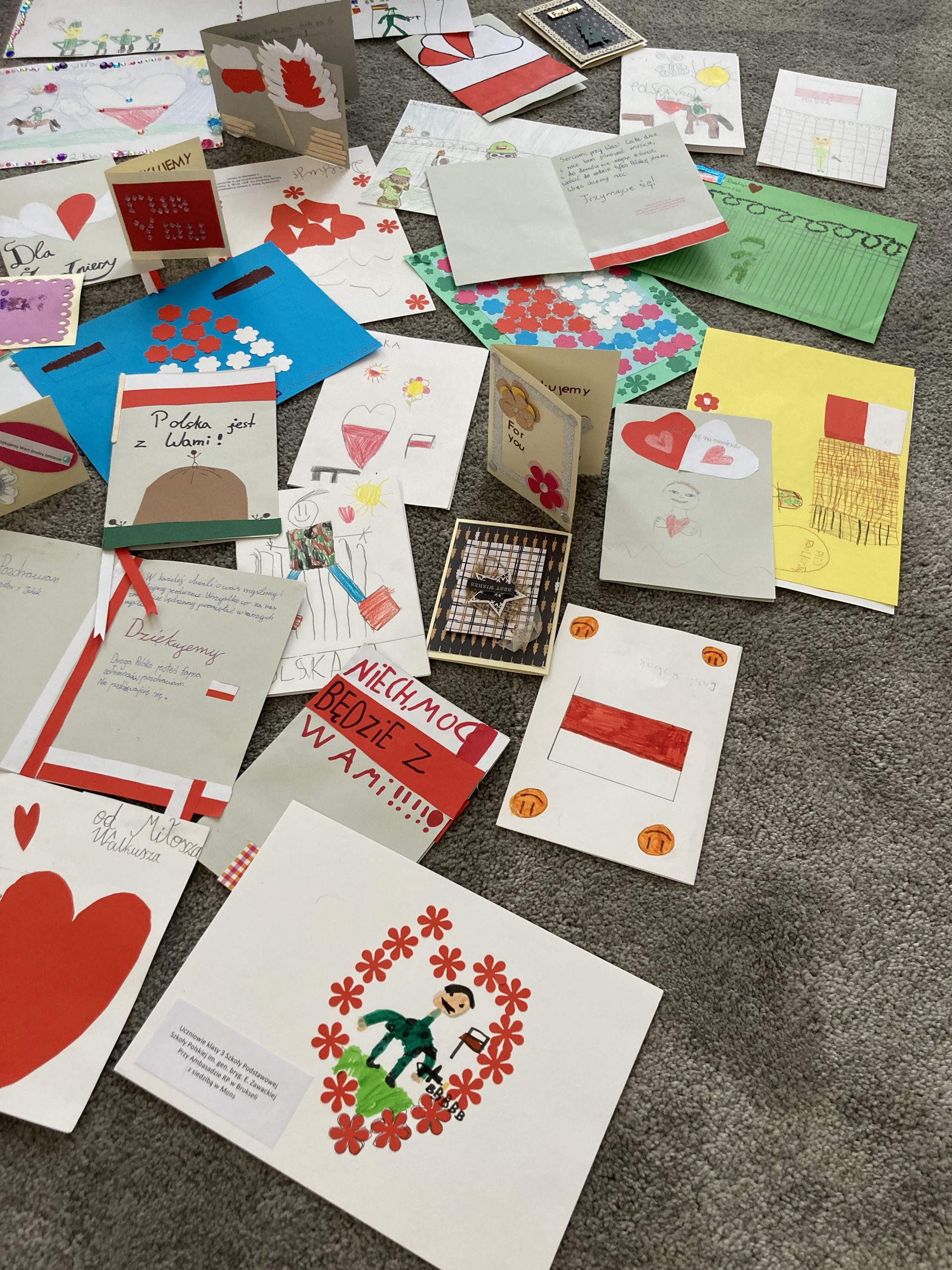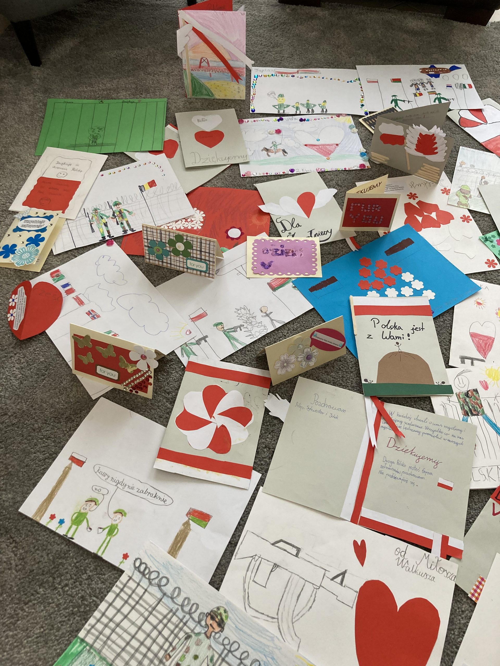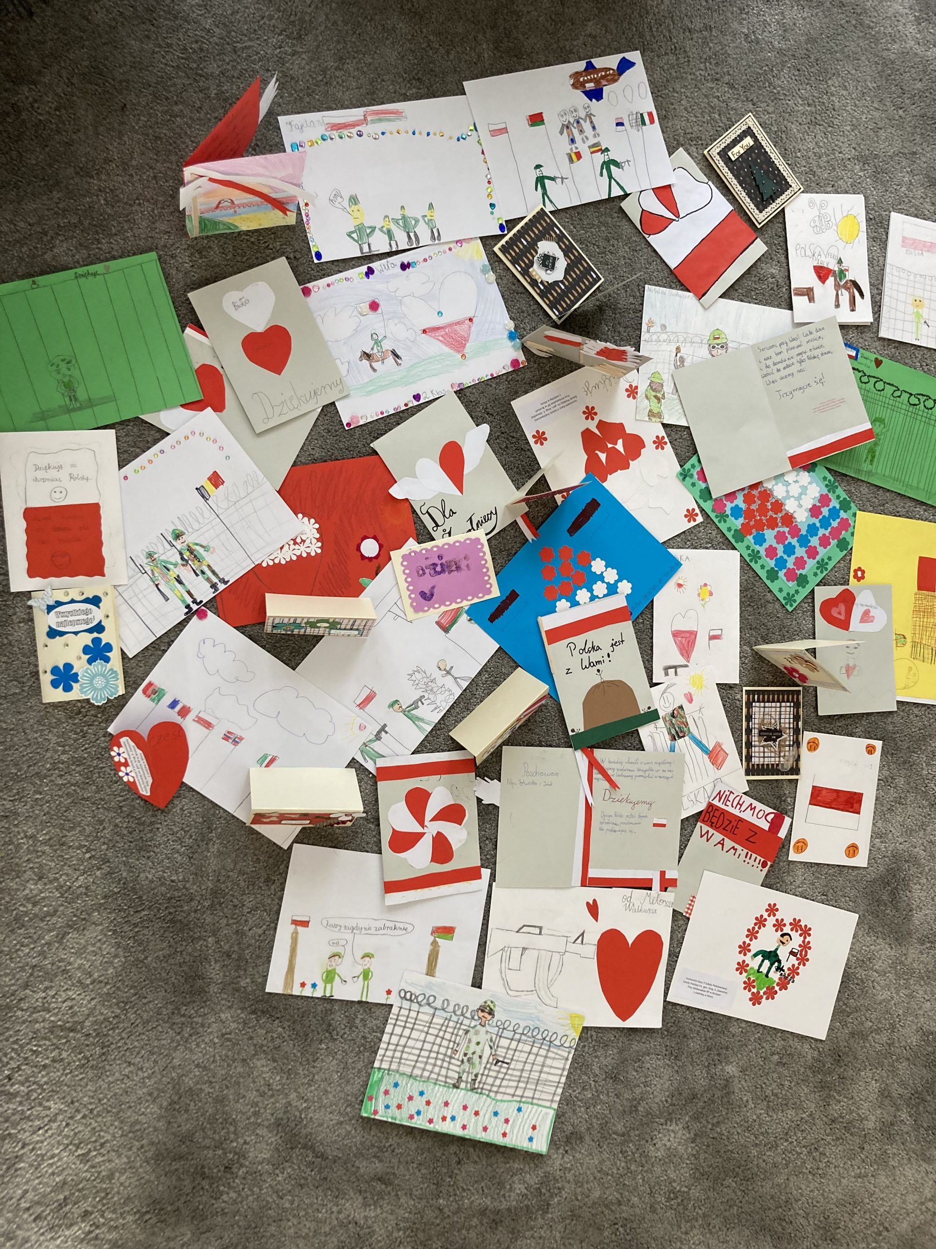 Uczniowie z przejęciem i wielkim sercem przygotowywali kartki dla żołnierzy pełniących ciężką służbę na granicy polsko-białoruskiej.