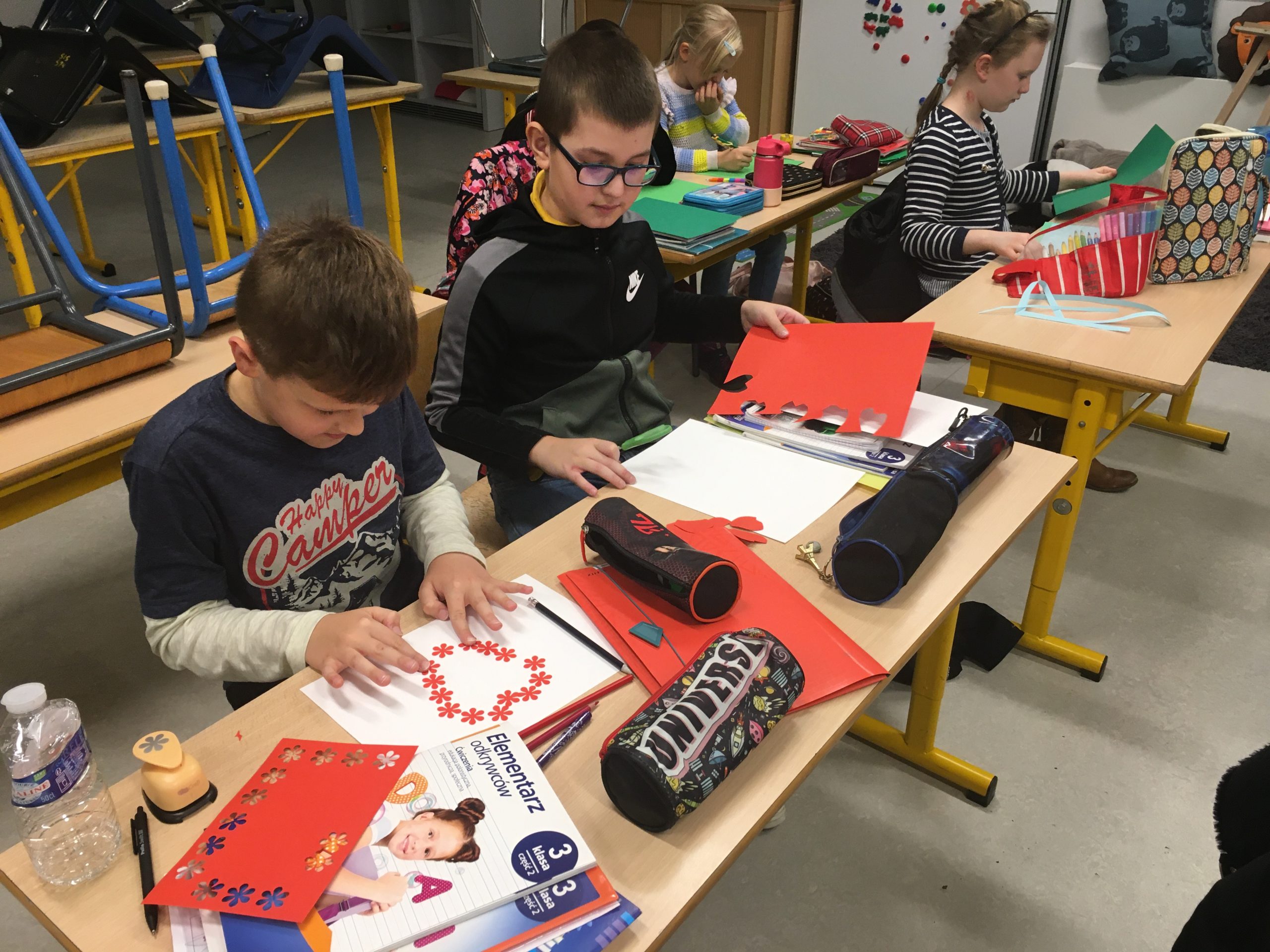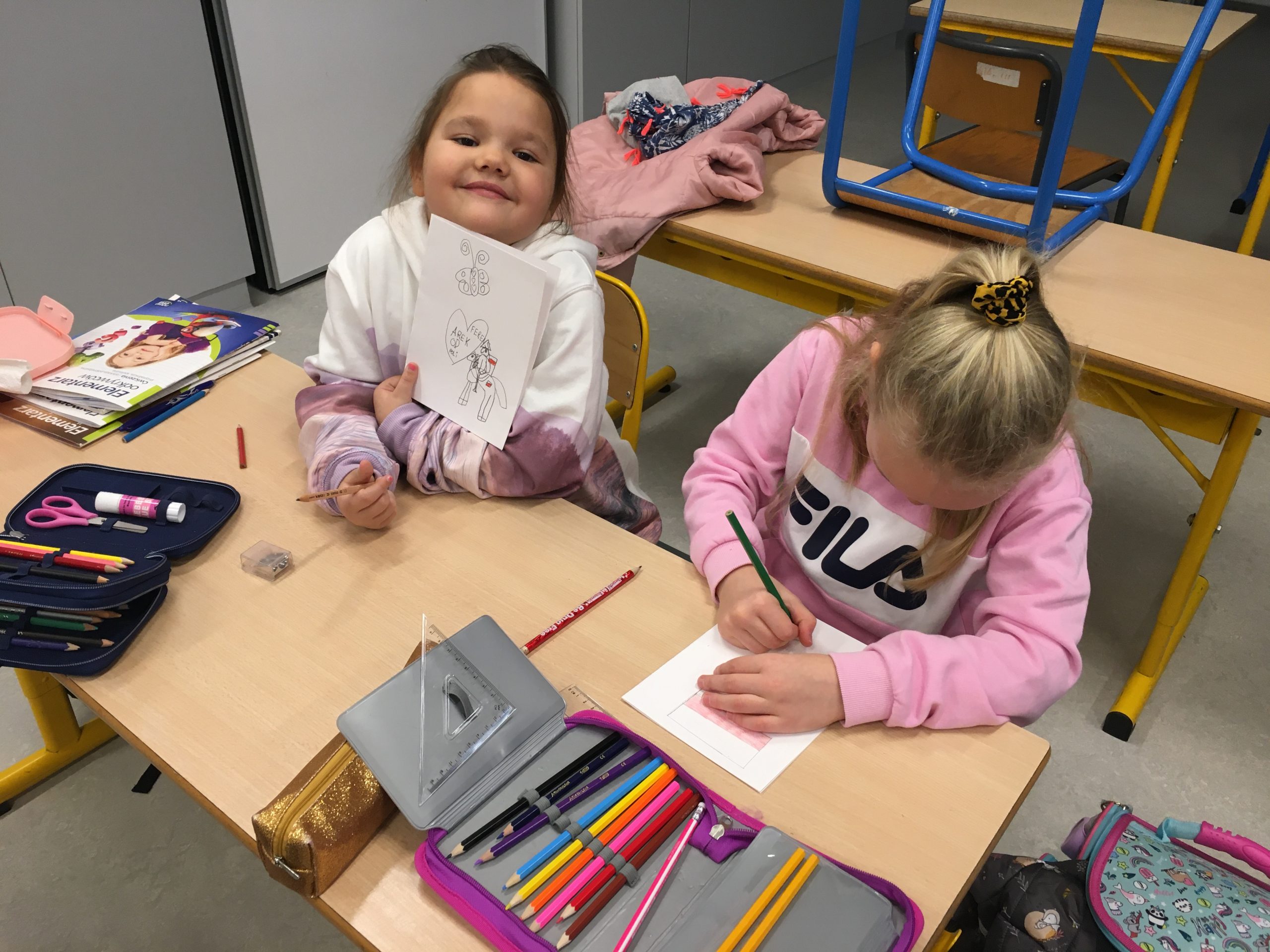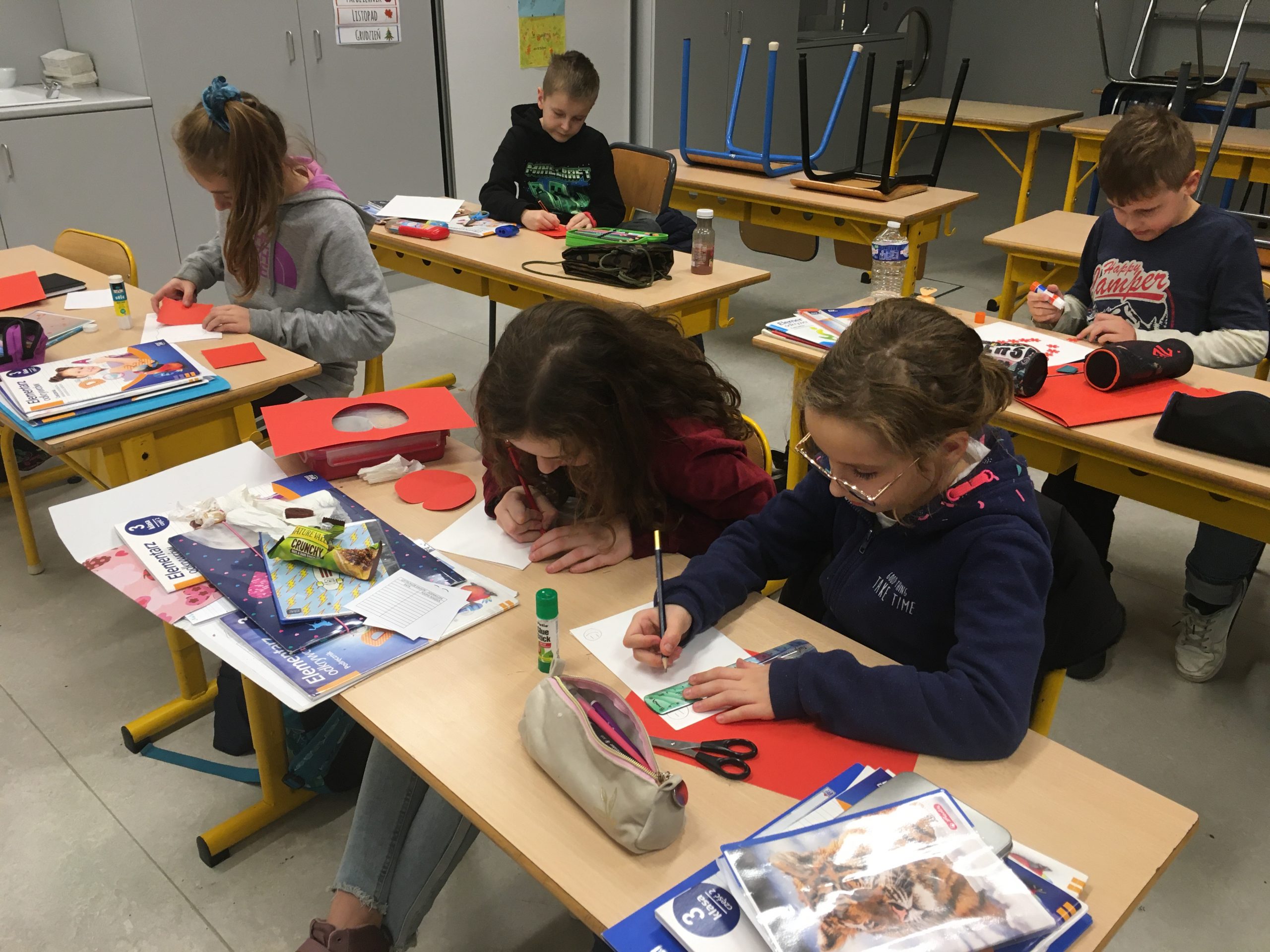 Uczniowie z przejęciem i wielkim sercem przygotowywali kartki dla żołnierzy pełniących ciężką służbę na granicy polsko-białoruskiej.