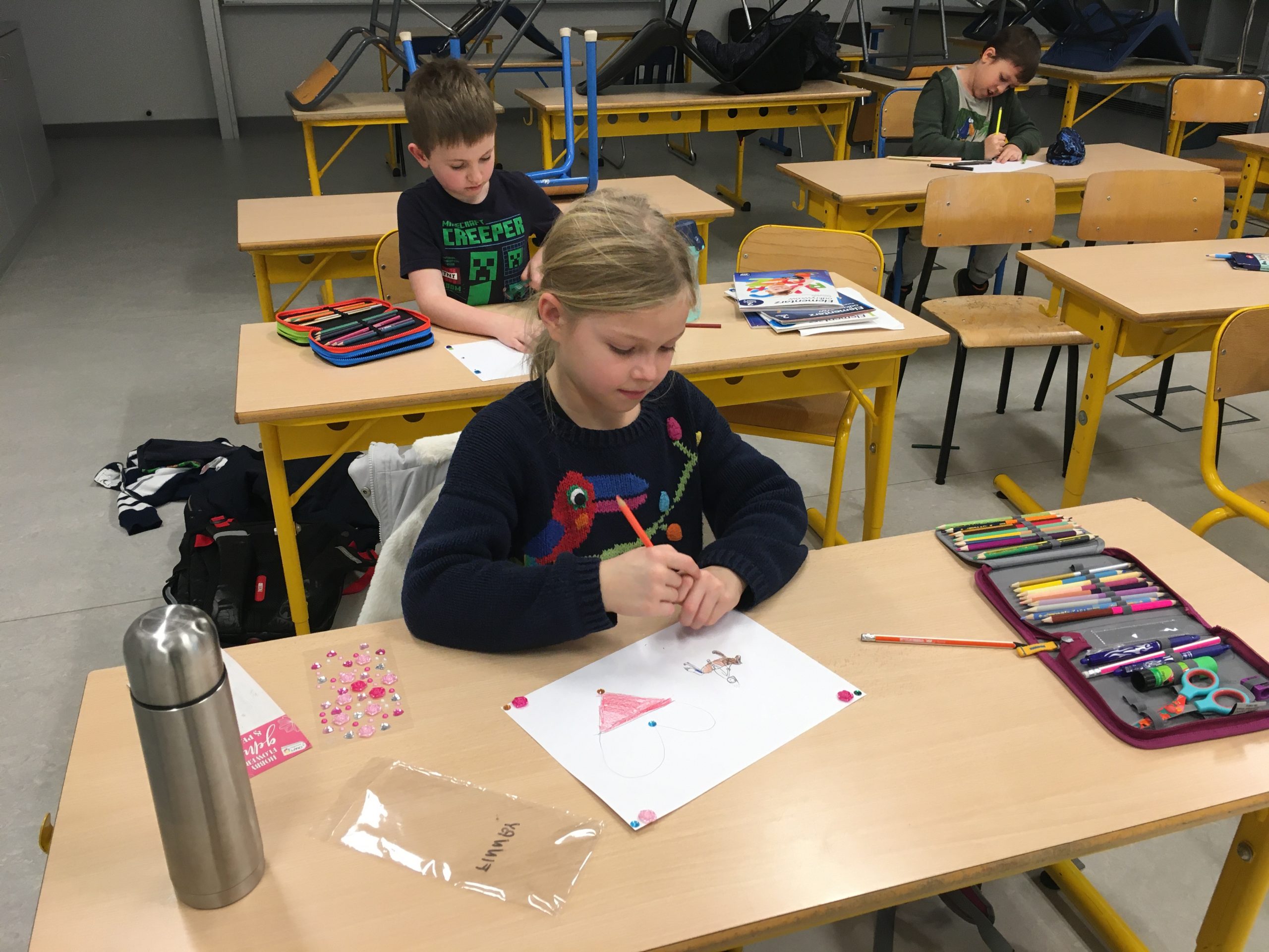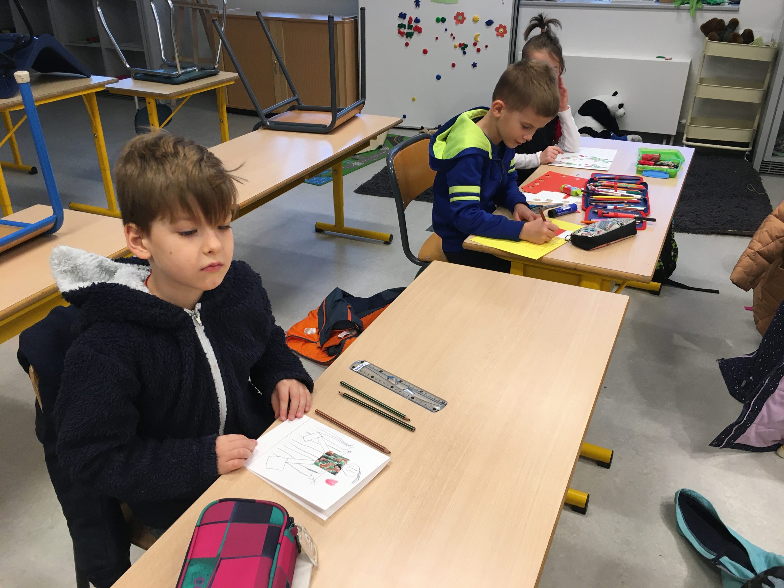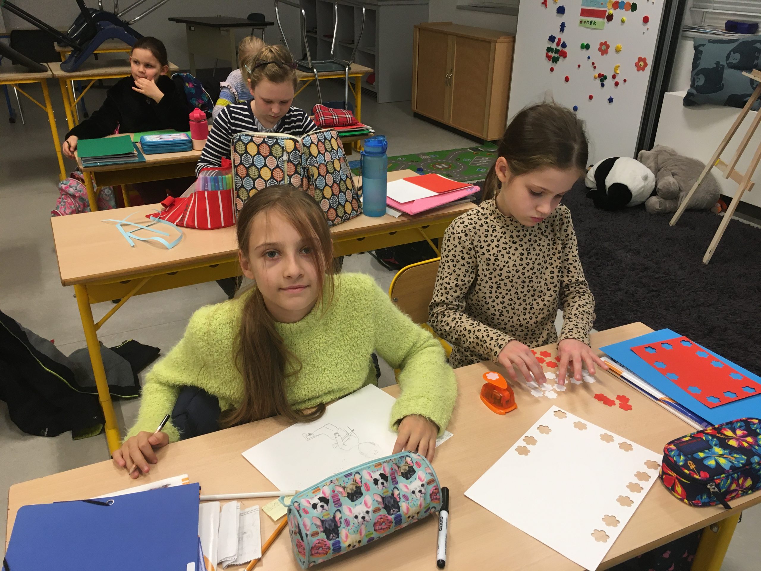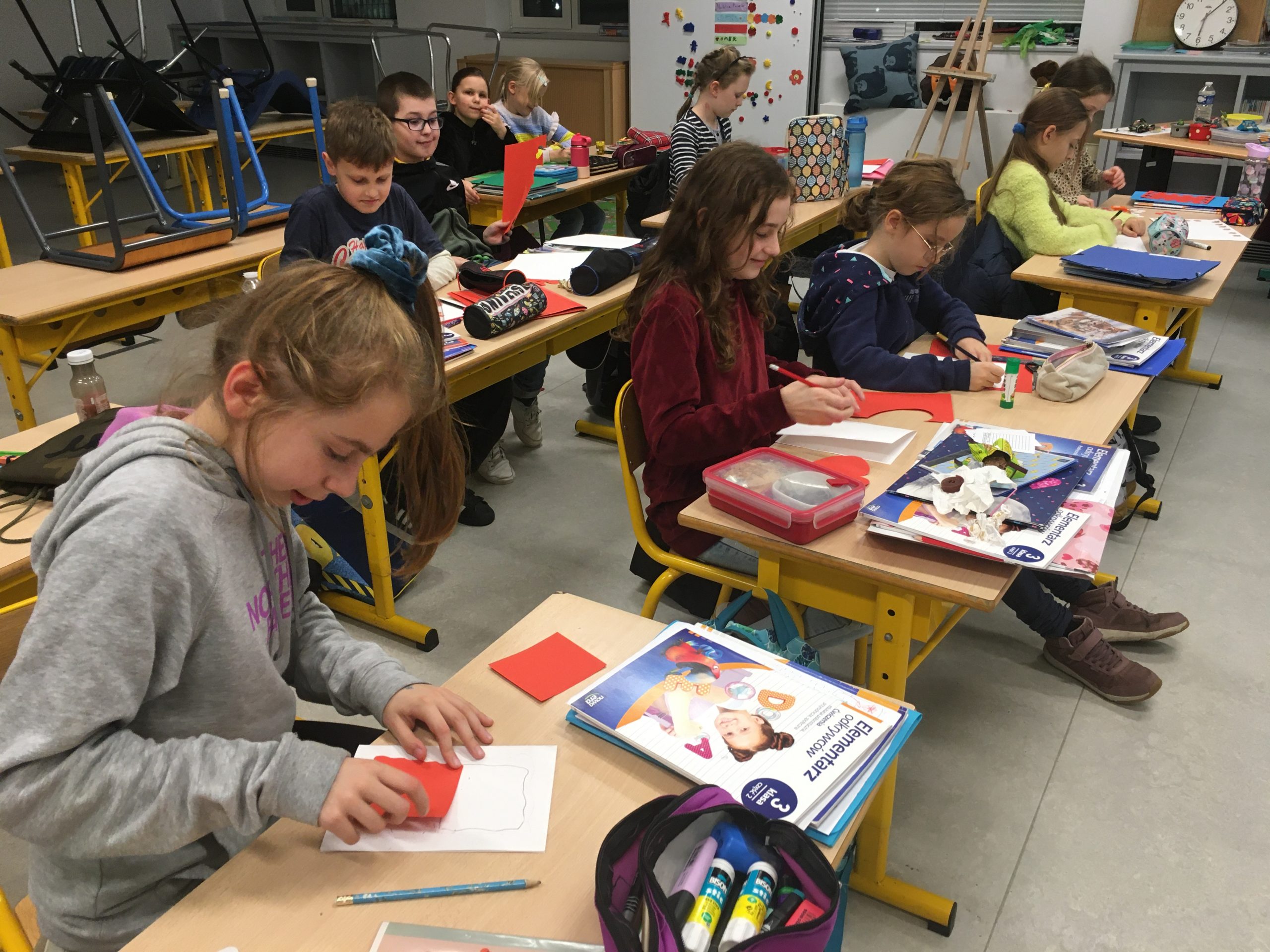 Uczniowie z przejęciem i wielkim sercem przygotowywali kartki dla żołnierzy pełniących ciężką służbę na granicy polsko-białoruskiej.