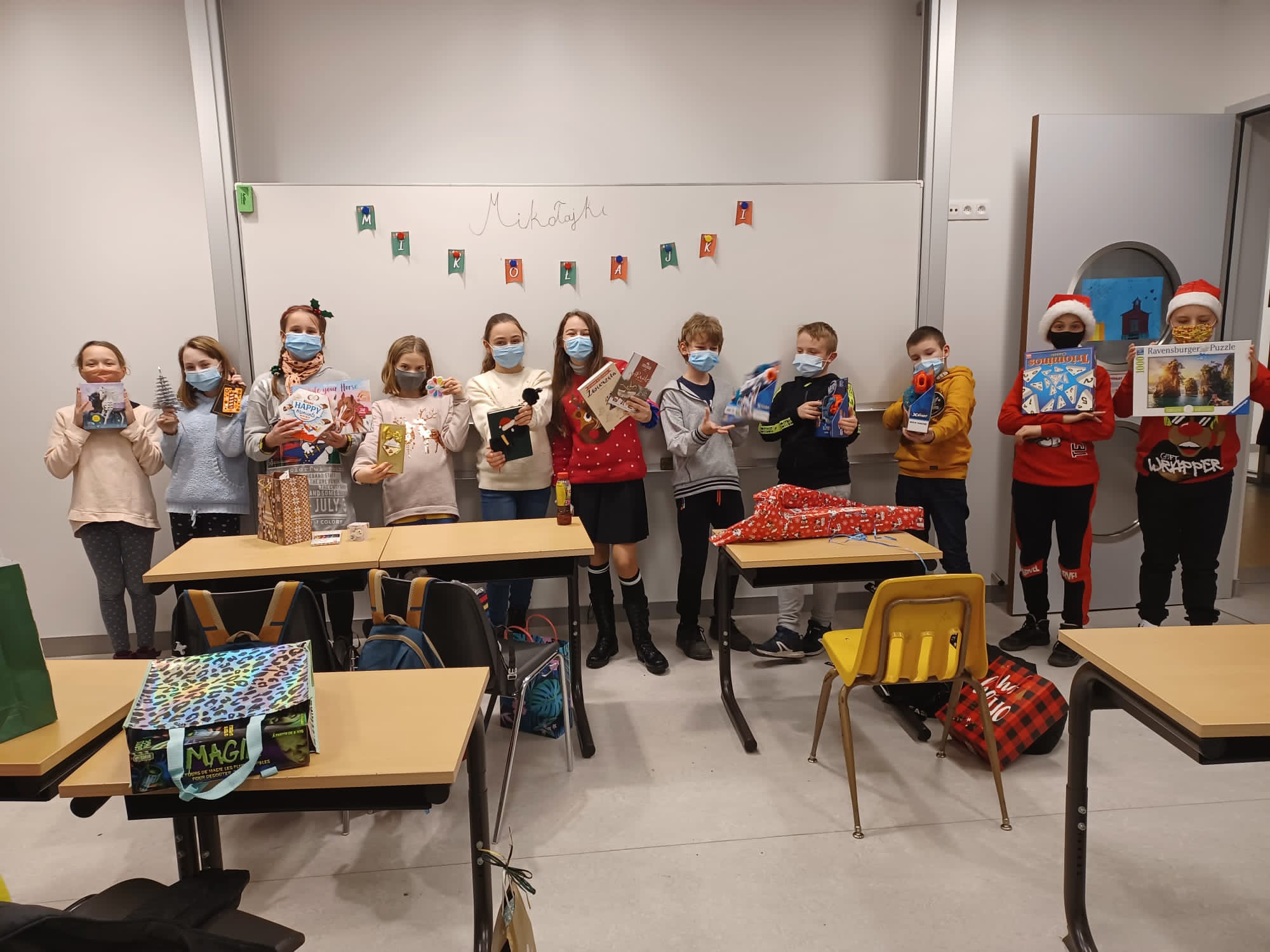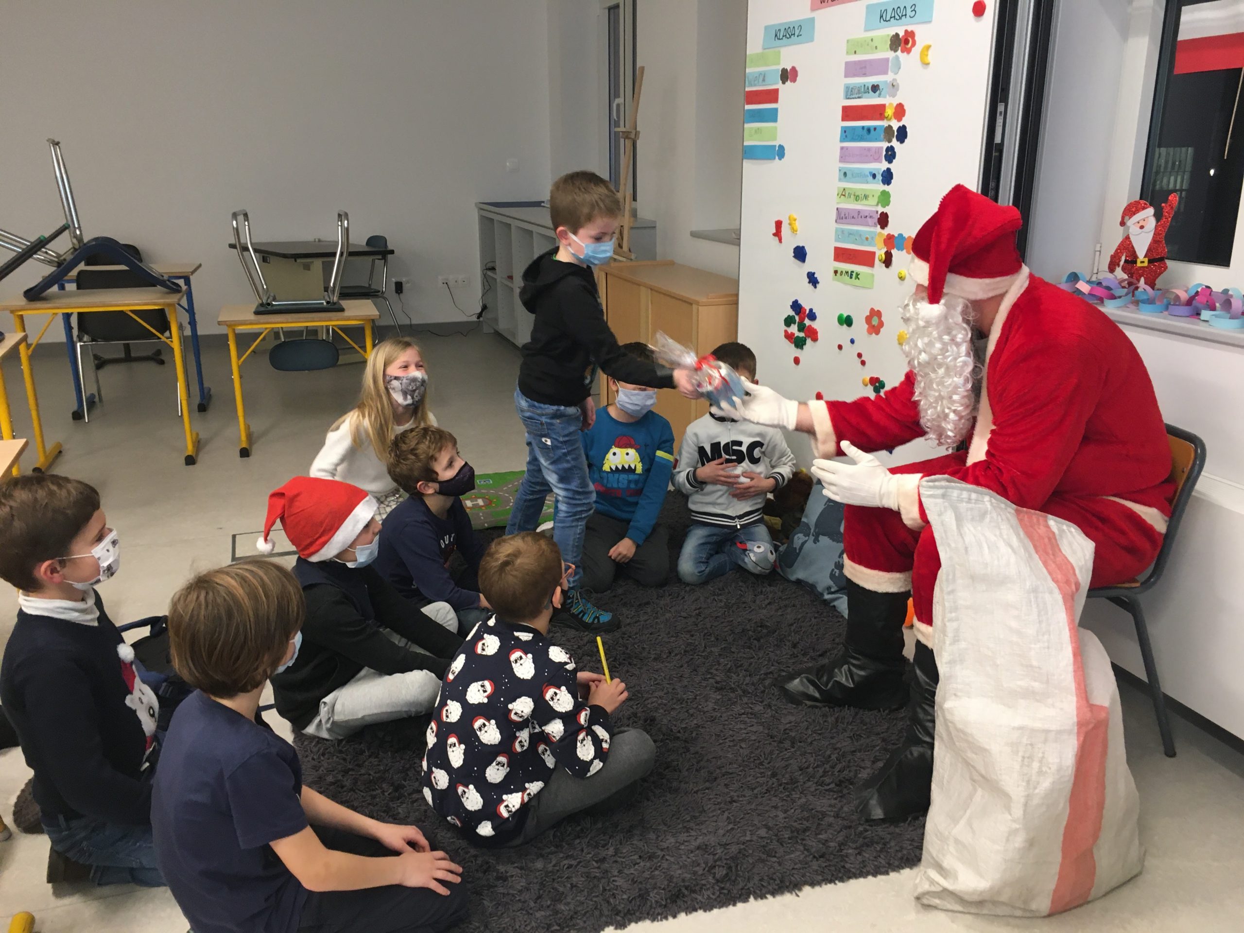 W dniu 6 grudnia do naszej szkoły znowu zawitał święty Mikołaj, obładowany prezentami. Radości z rozpakowywania prezentów było co niemiara. Uczniowie podziękowali za niespodzianki i wizytę świętego. Mamy nadzieję, że spotkamy się znowu w przyszłym roku;)