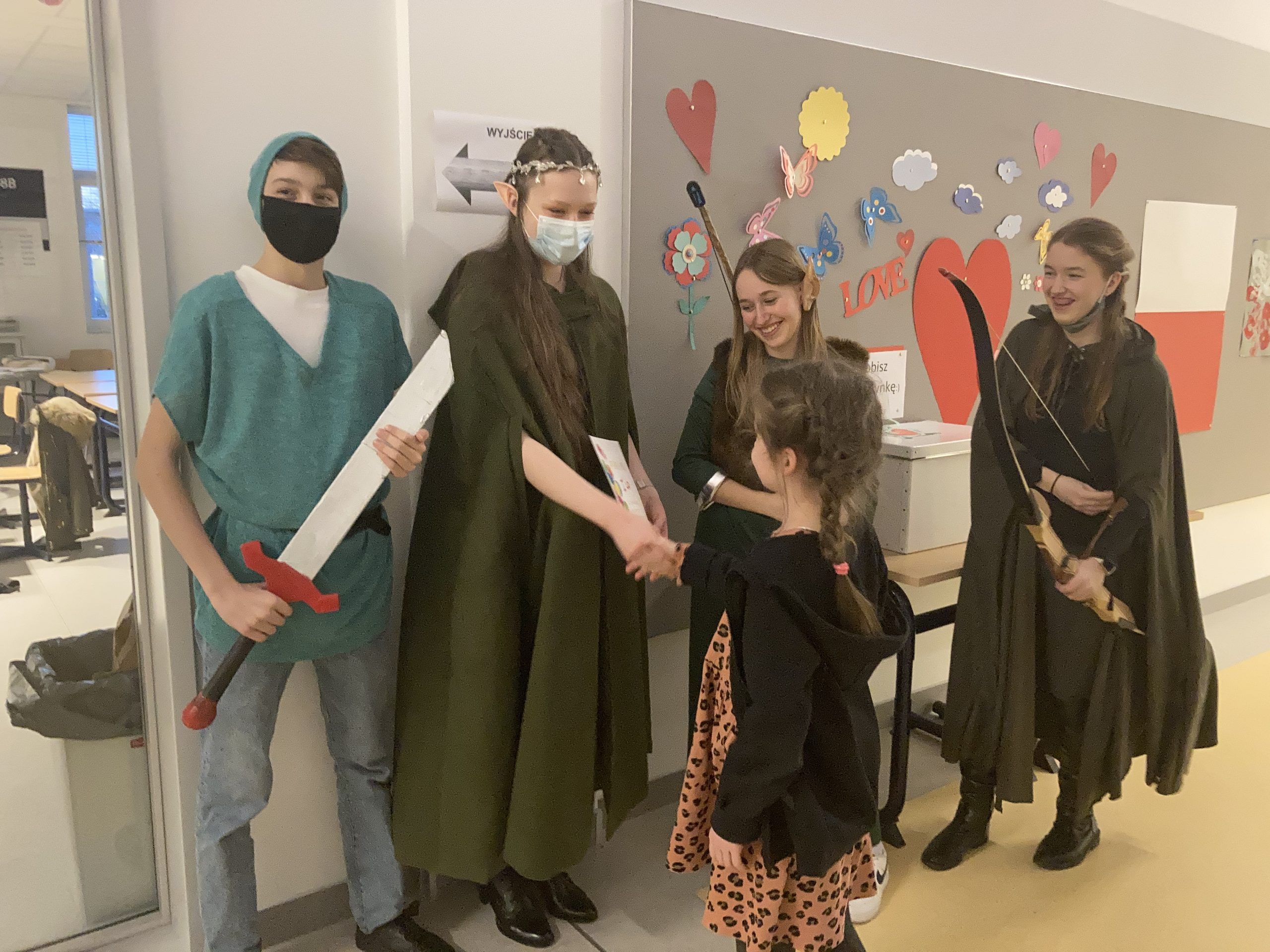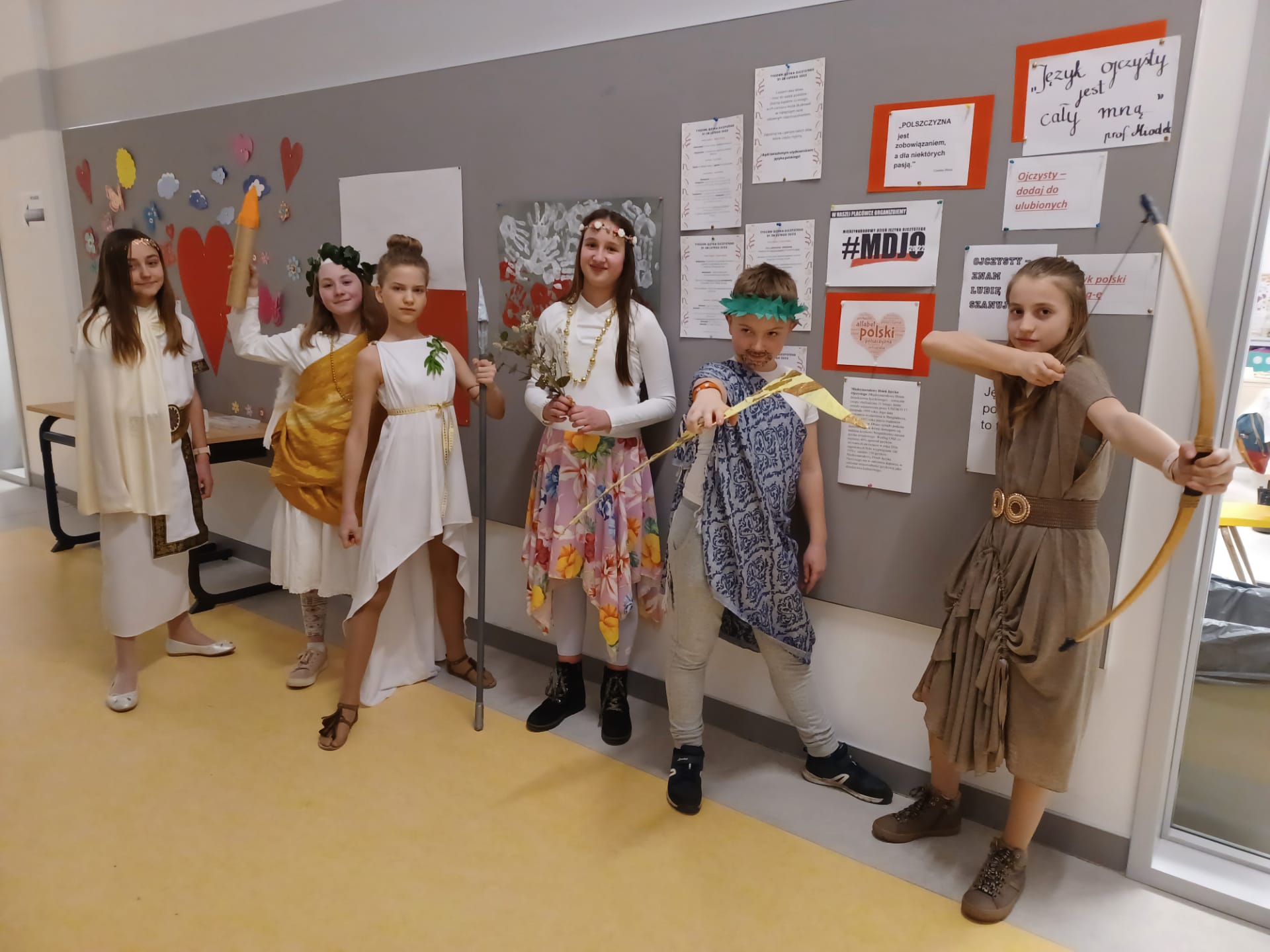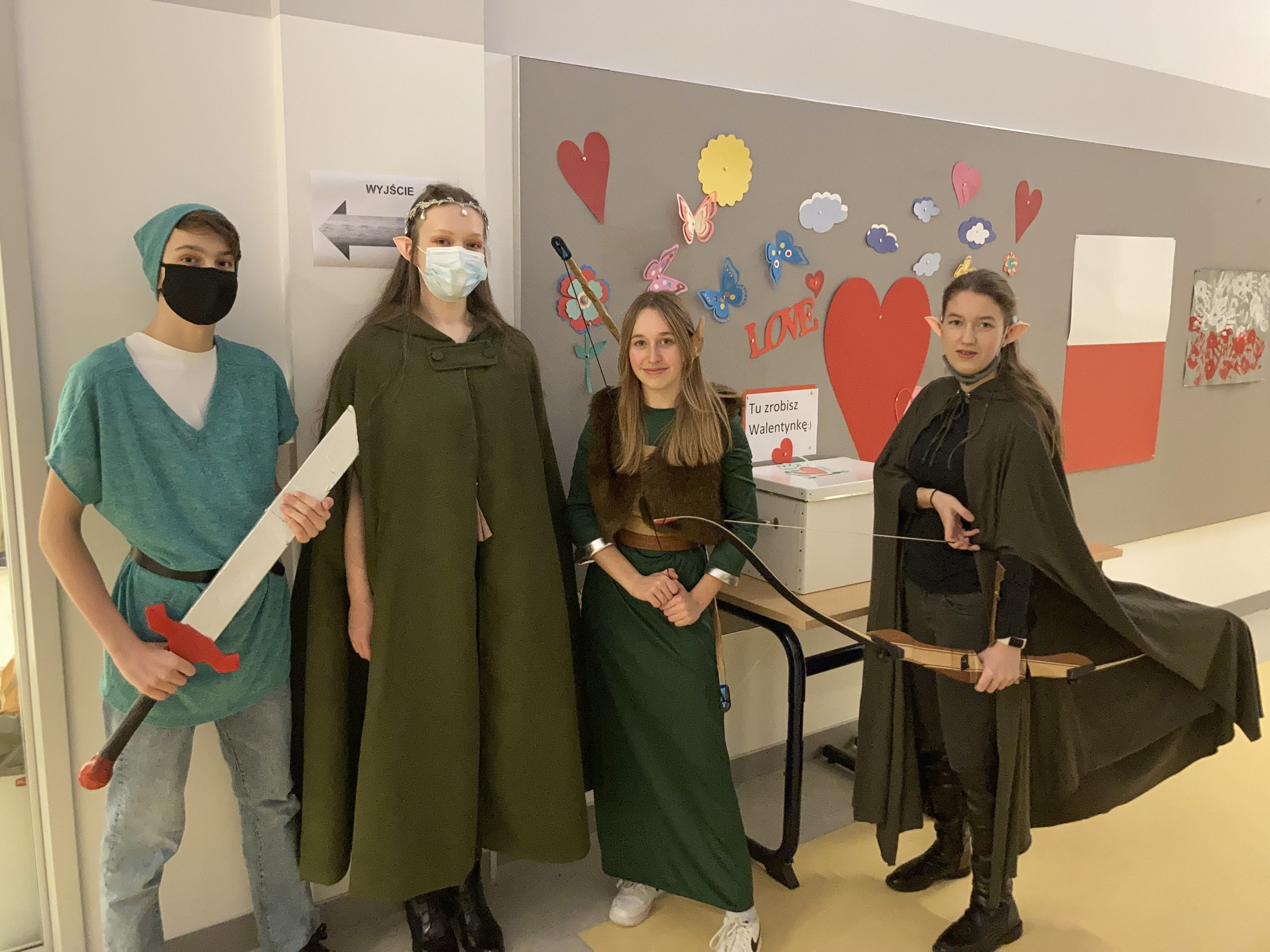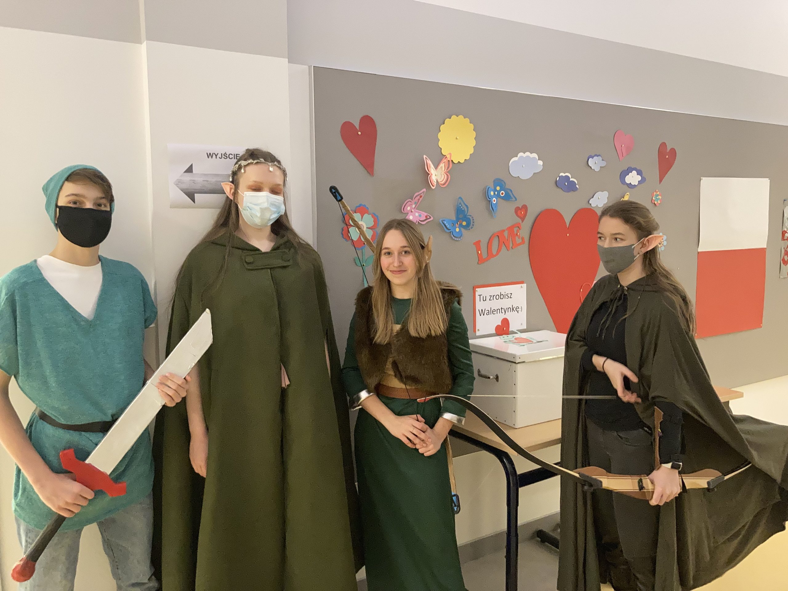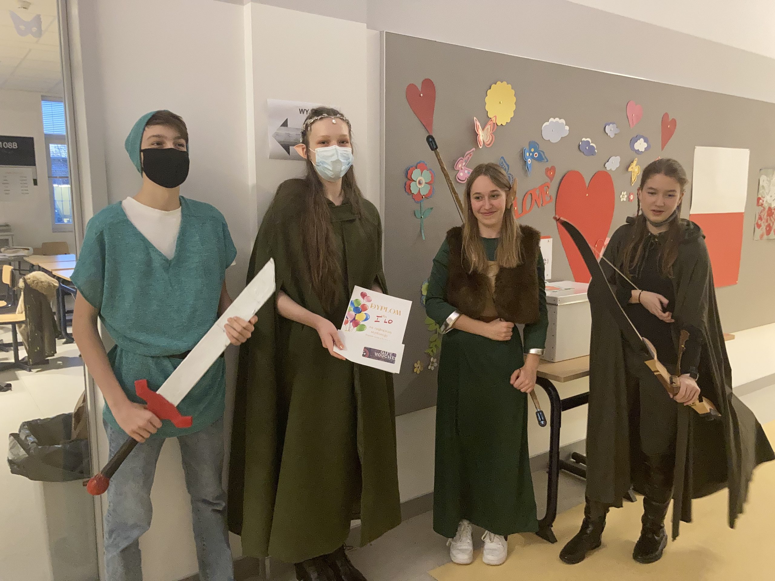 Uczniowie klas 4 i 5 z wielką radością wzięli udział w karnawałowych wyzwaniach. Przebrać się za bohatera literackiego czy filmowego? Dla klasy 4 to pestka! Urządzić karnawał na Olimpie, zaprosić bohaterów mitologicznych na ucztę boskich potraw (na stole królowały Zęby Posejdona, Przysmaki Elizejskie oraz ambrozja z jabłek) i zagrać w karty z bogami? Nie ma rzeczy niemożliwych dla klasy 5! Kunszt przebranych postaci przeszedł nasze najśmielsze oczekiwania. Najstarsi uczniowie również chętnie sięgnęli do epoki starożytnej, by wcielić się w bohaterów „Quo Vadis” inni wybrali Disneya jeszcze inni fantasy: elfy czy krasnale.