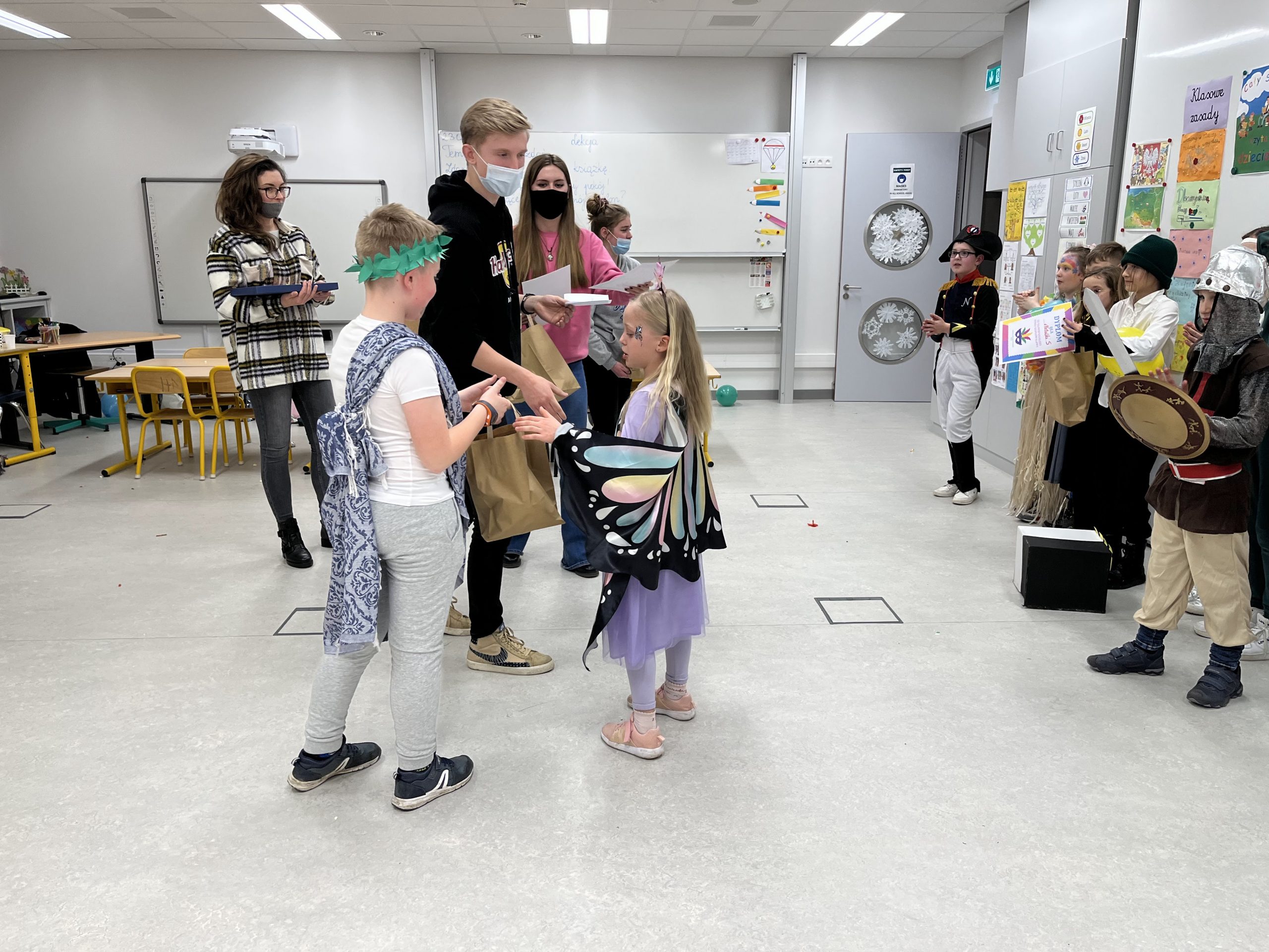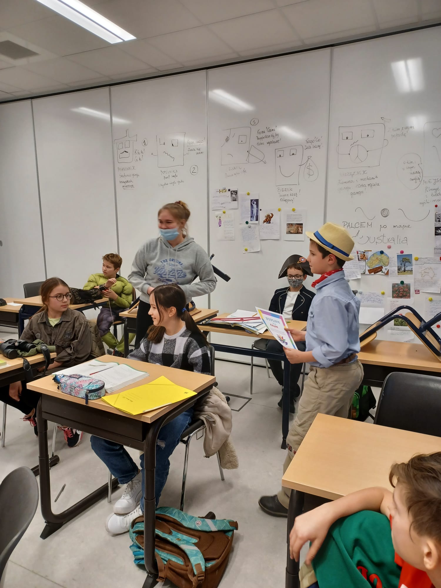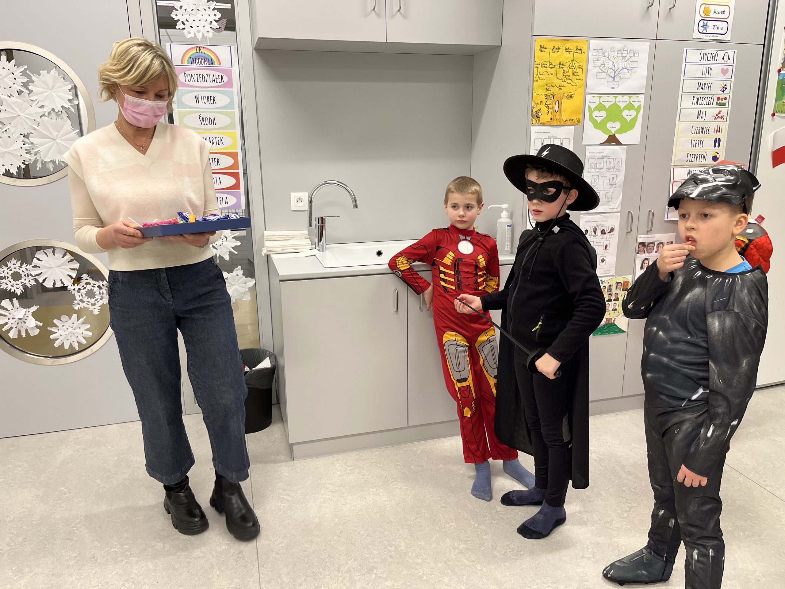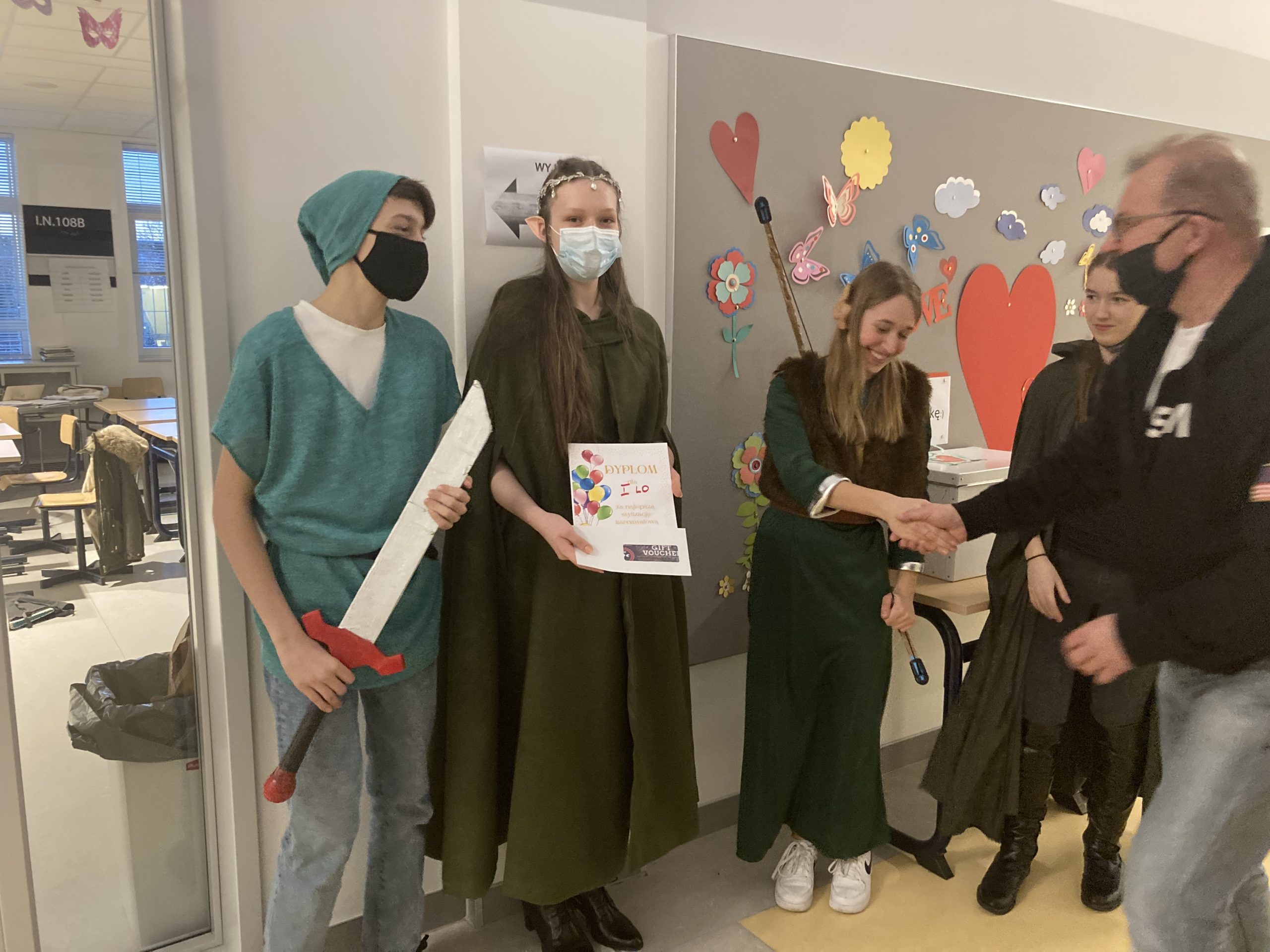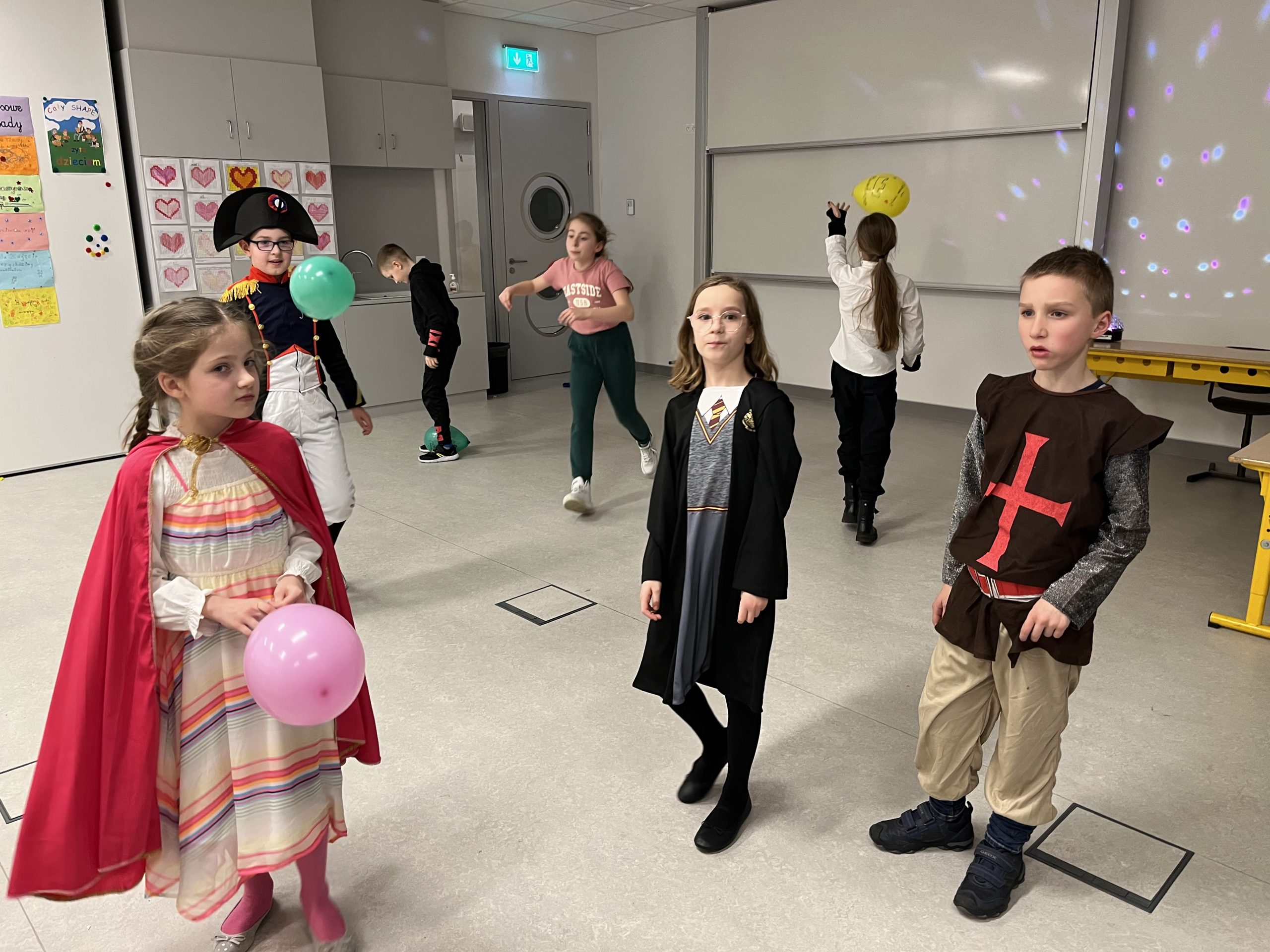 Uczniowie klas 4 i 5 z wielką radością wzięli udział w karnawałowych wyzwaniach. Przebrać się za bohatera literackiego czy filmowego? Dla klasy 4 to pestka! Urządzić karnawał na Olimpie, zaprosić bohaterów mitologicznych na ucztę boskich potraw (na stole królowały Zęby Posejdona, Przysmaki Elizejskie oraz ambrozja z jabłek) i zagrać w karty z bogami? Nie ma rzeczy niemożliwych dla klasy 5! Kunszt przebranych postaci przeszedł nasze najśmielsze oczekiwania. Najstarsi uczniowie również chętnie sięgnęli do epoki starożytnej, by wcielić się w bohaterów „Quo Vadis” inni wybrali Disneya jeszcze inni fantasy: elfy czy krasnale.
