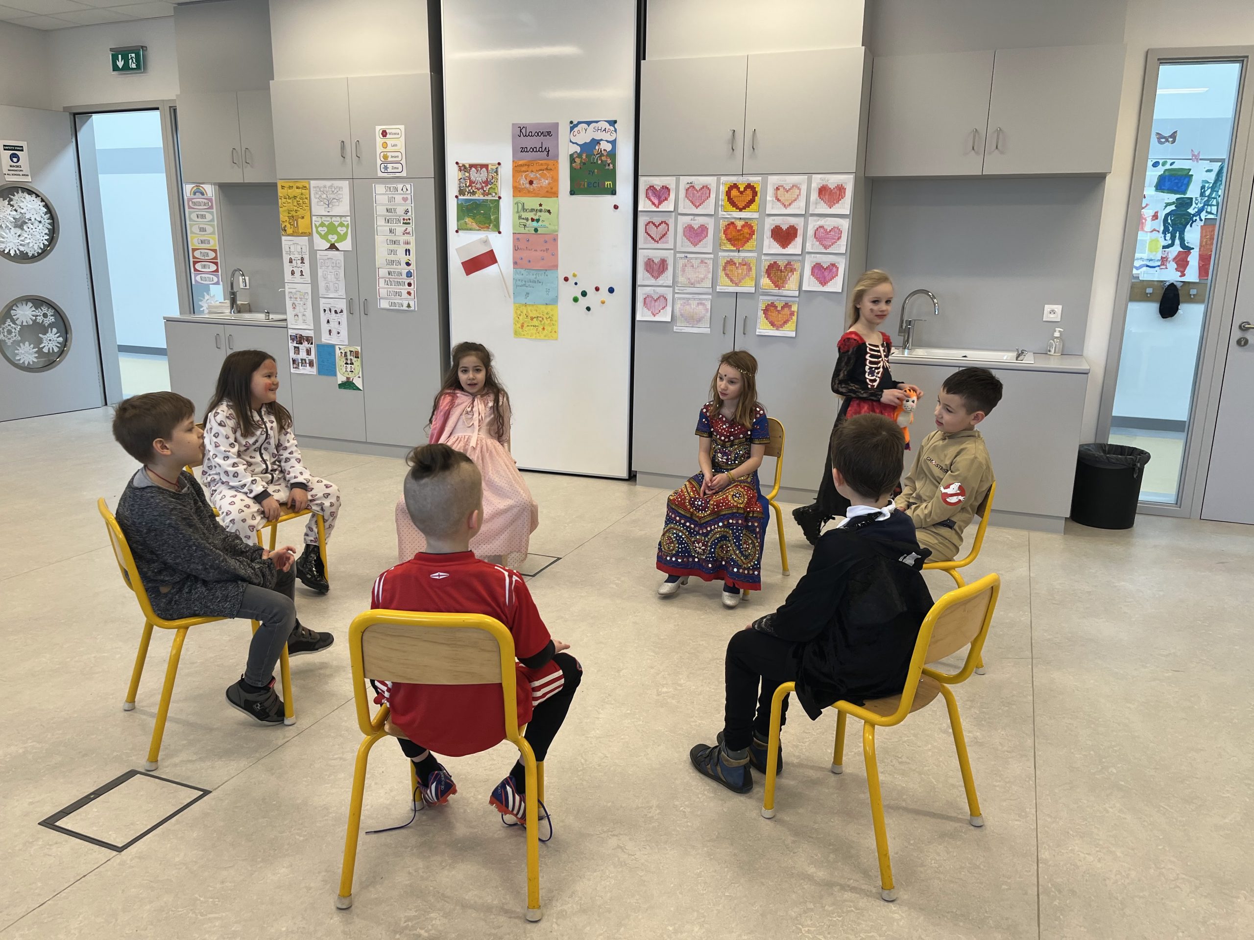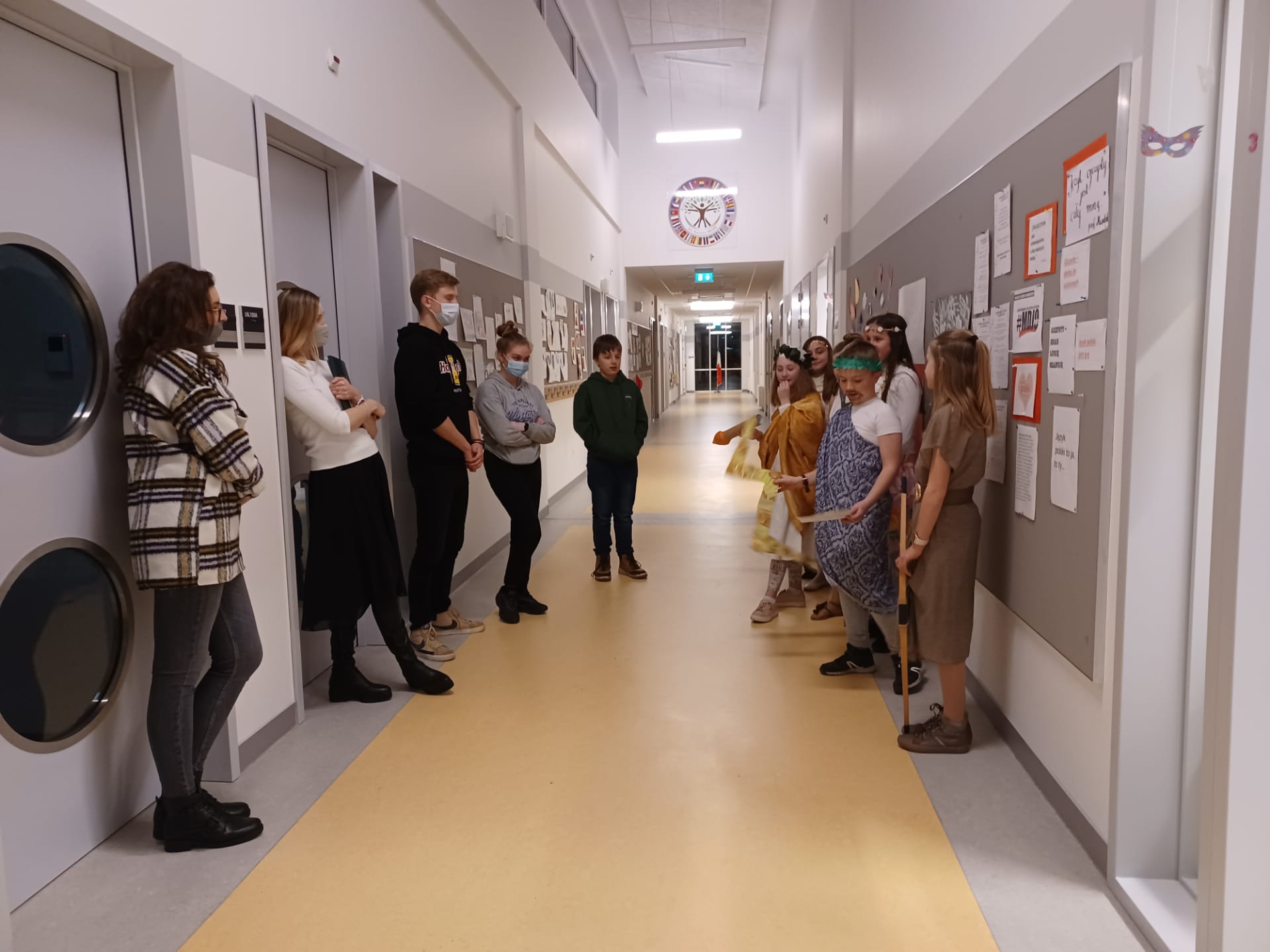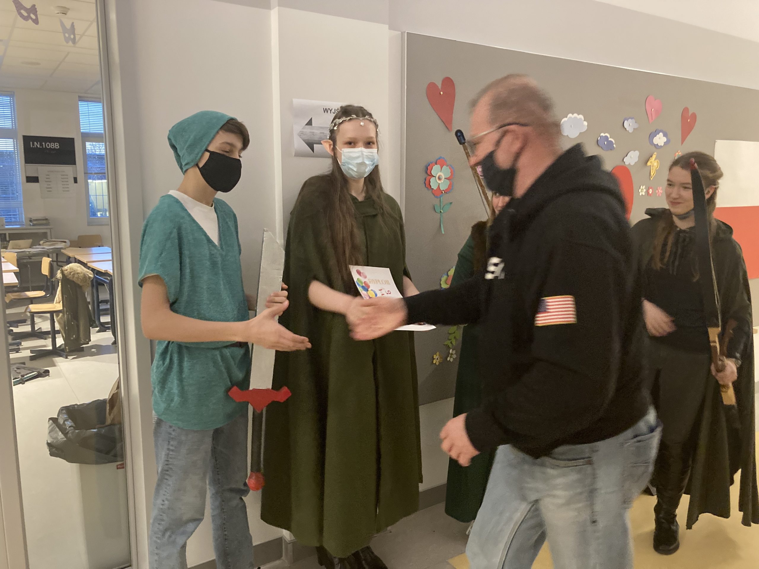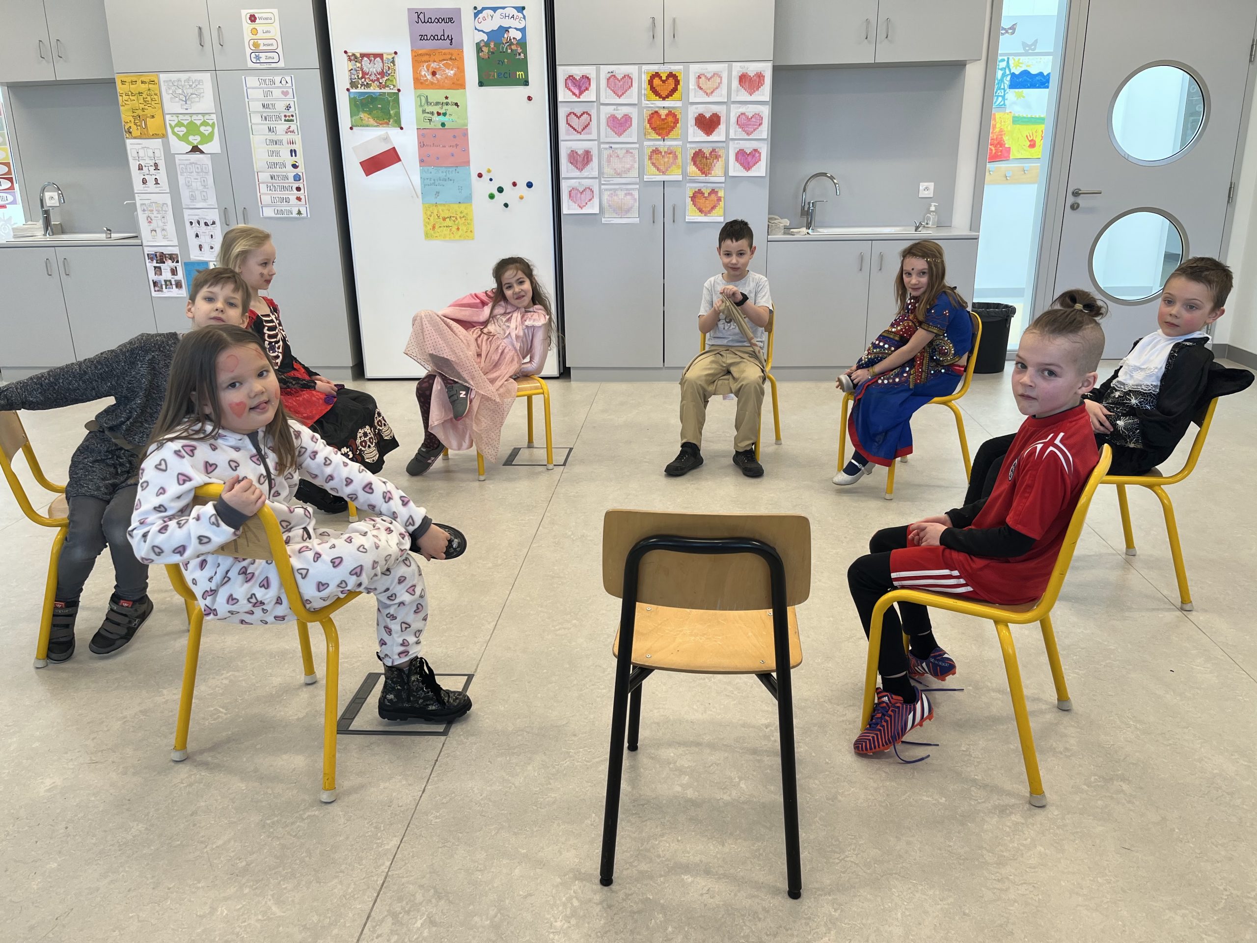 Uczniowie klas 4 i 5 z wielką radością wzięli udział w karnawałowych wyzwaniach. Przebrać się za bohatera literackiego czy filmowego? Dla klasy 4 to pestka! Urządzić karnawał na Olimpie, zaprosić bohaterów mitologicznych na ucztę boskich potraw (na stole królowały Zęby Posejdona, Przysmaki Elizejskie oraz ambrozja z jabłek) i zagrać w karty z bogami? Nie ma rzeczy niemożliwych dla klasy 5! Kunszt przebranych postaci przeszedł nasze najśmielsze oczekiwania. Najstarsi uczniowie również chętnie sięgnęli do epoki starożytnej, by wcielić się w bohaterów „Quo Vadis” inni wybrali Disneya jeszcze inni fantasy: elfy czy krasnale.