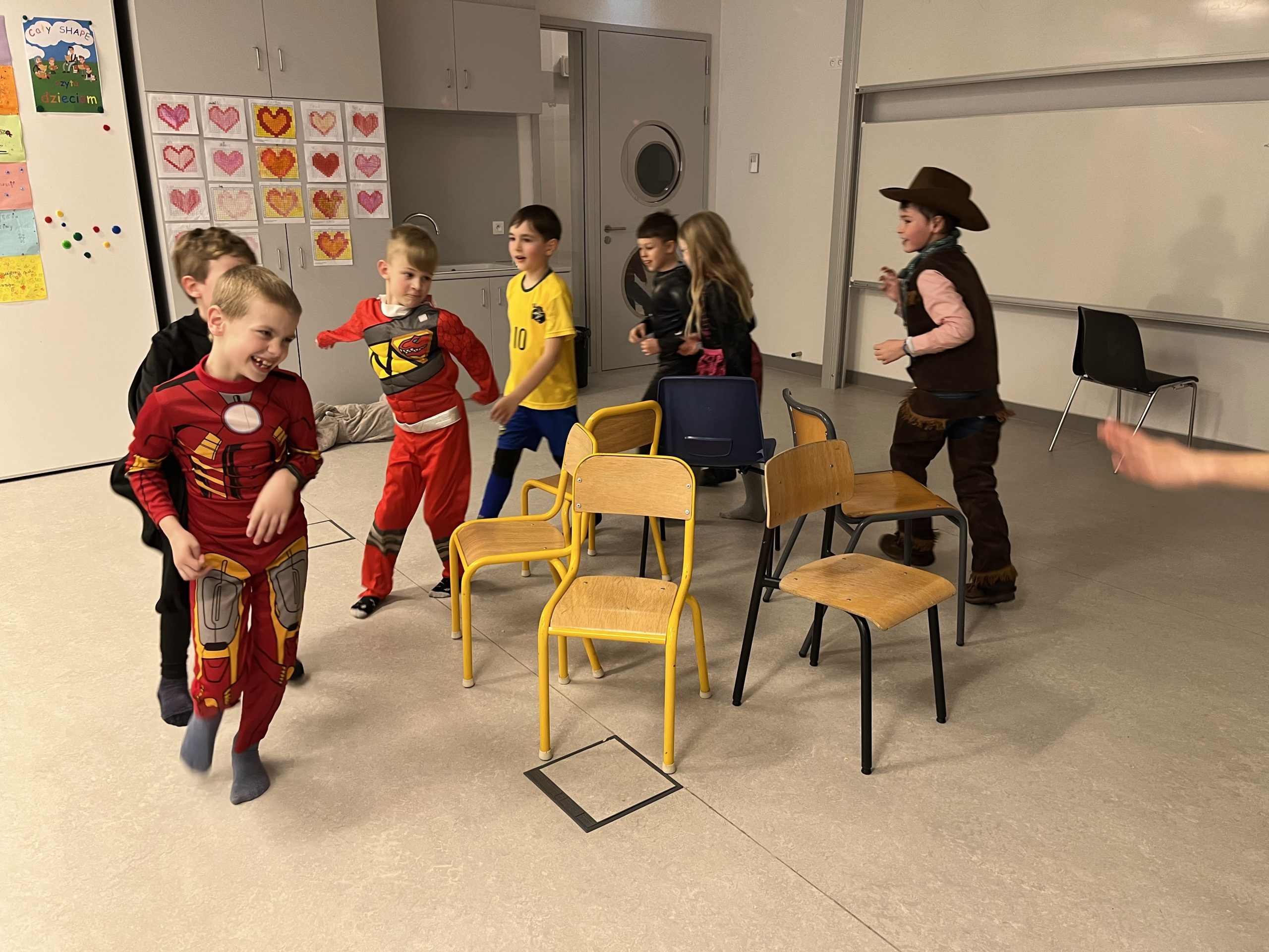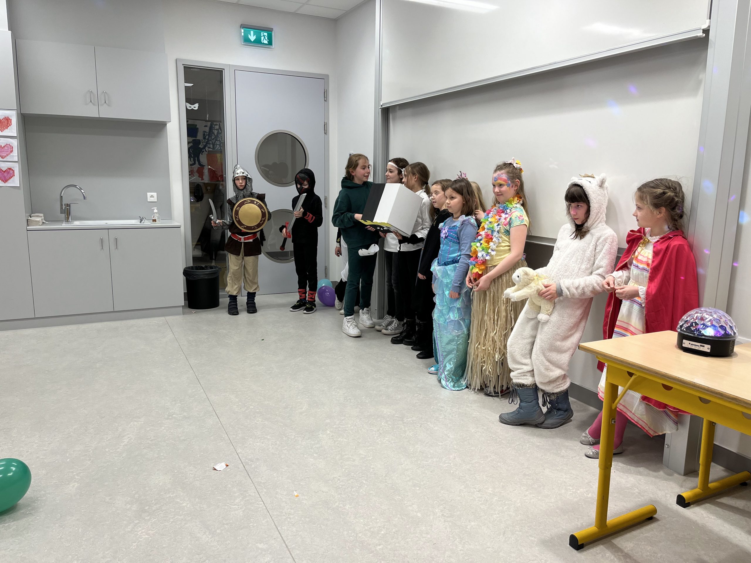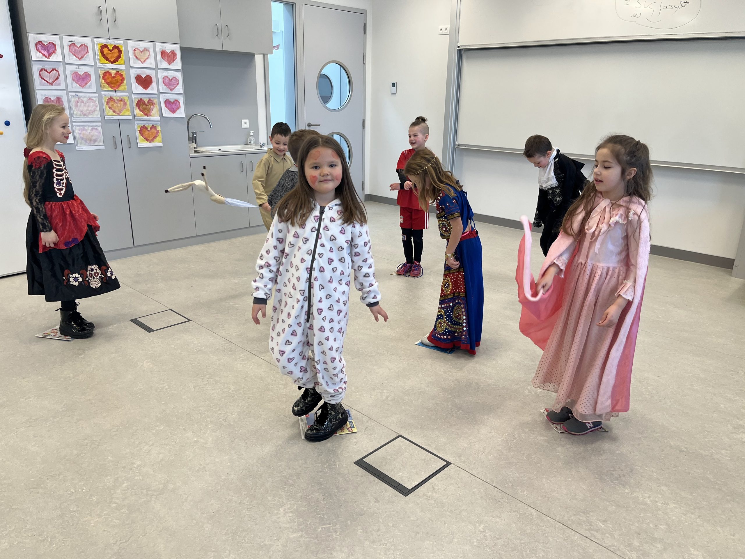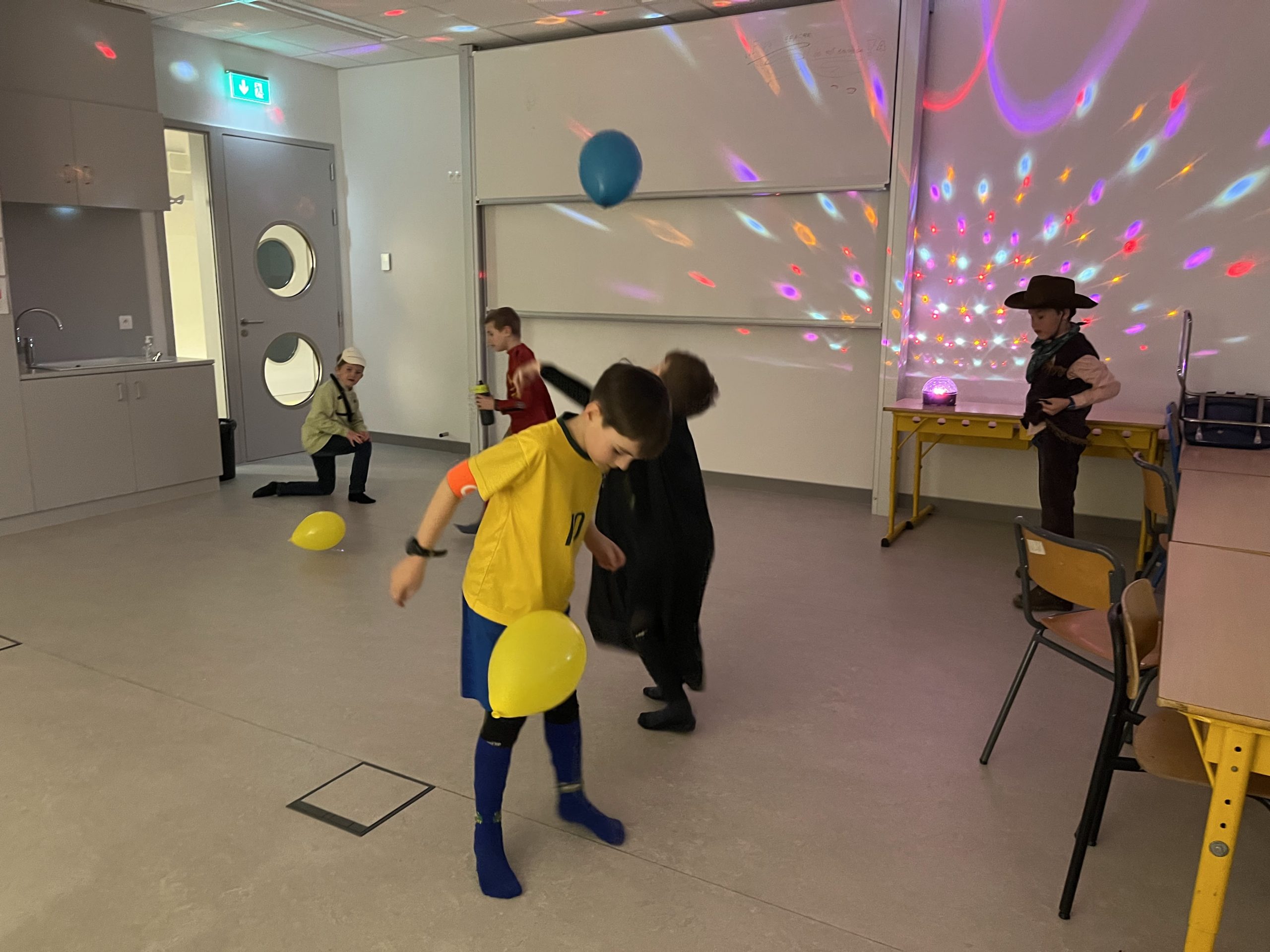 Uczniowie klas 1-3 : księżniczki, kowboje, zorro, a nawet wróżki. Wszyscy pląsali, harcowali w rytm muzyki.