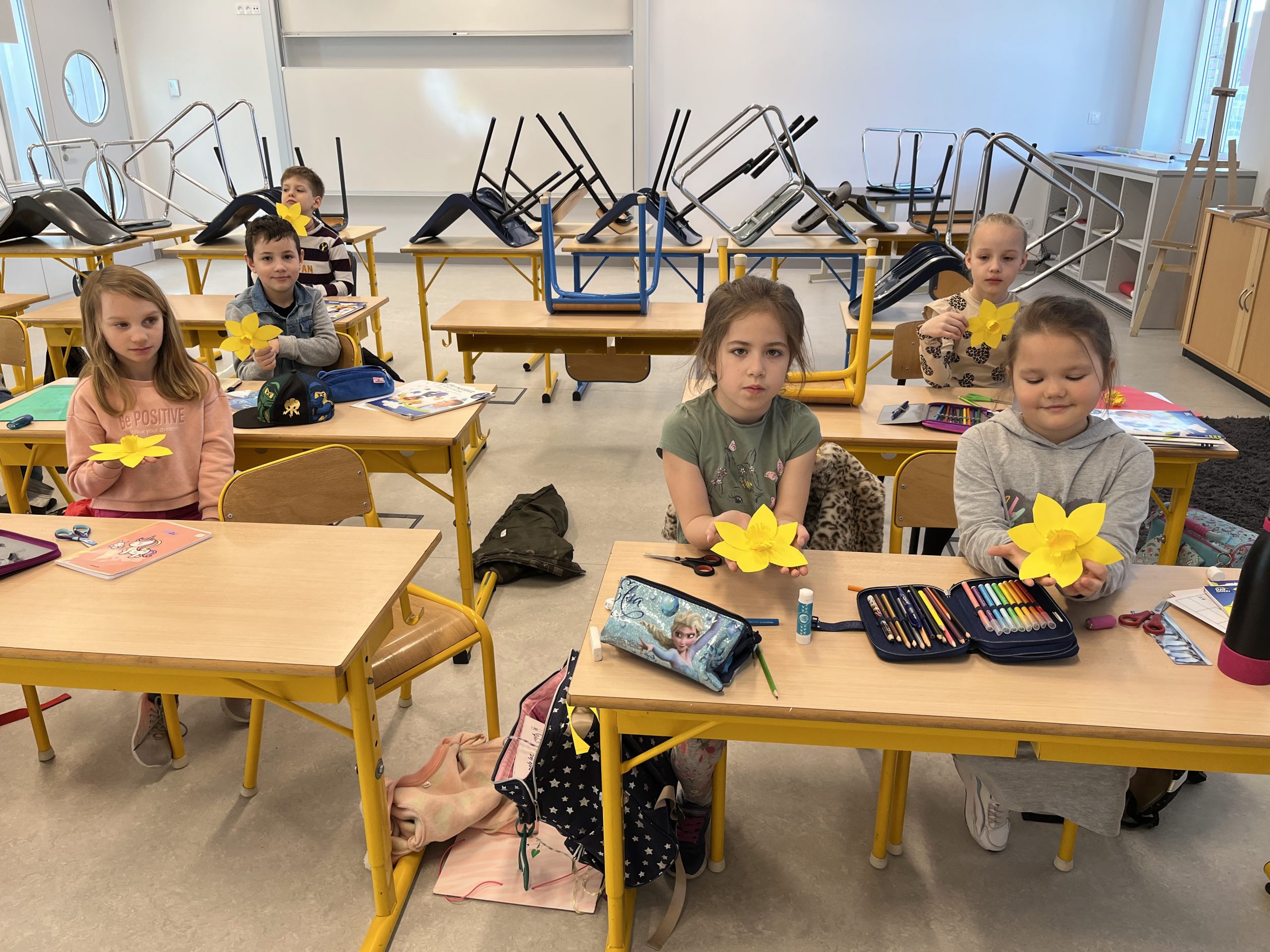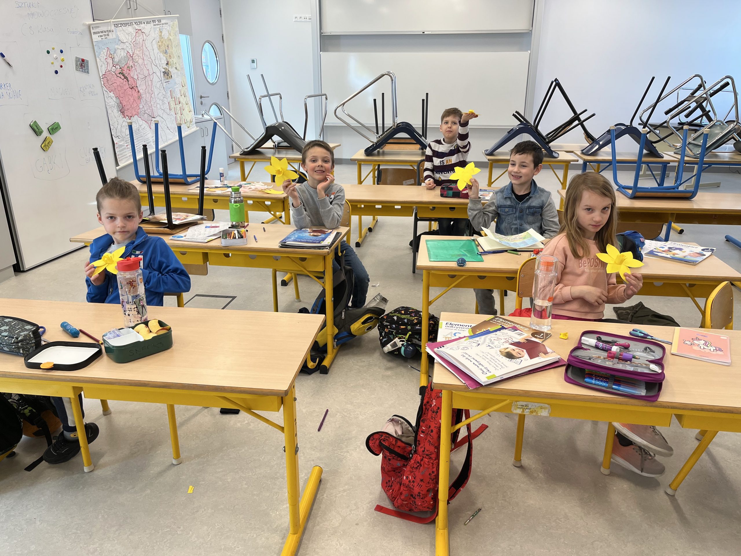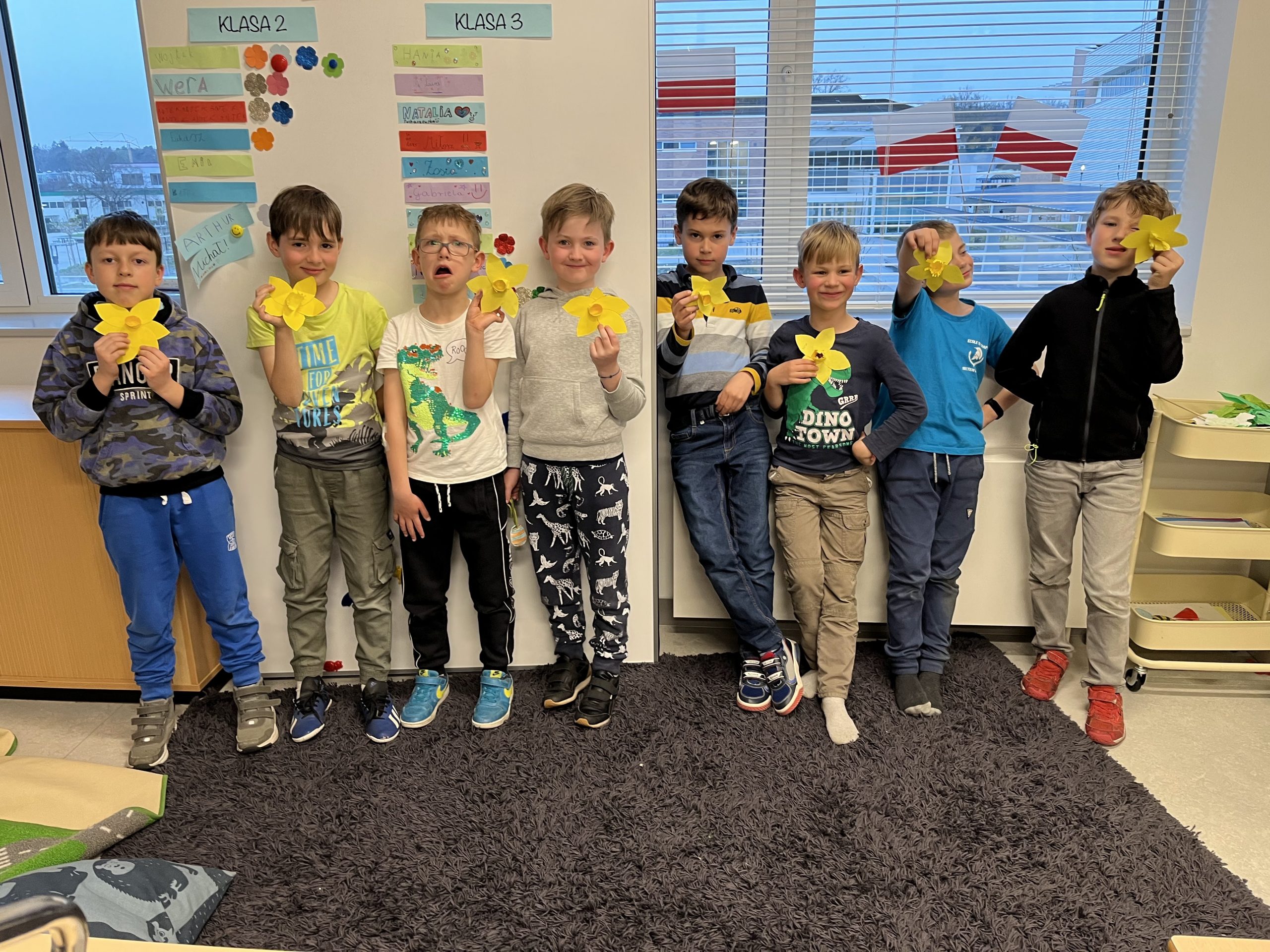 Uczniowie klas I – III nie mogli przejść obok tego faktu obojętnie i przygotowali kolorowe dekoracje przywołując upragnioną wiosnę.
