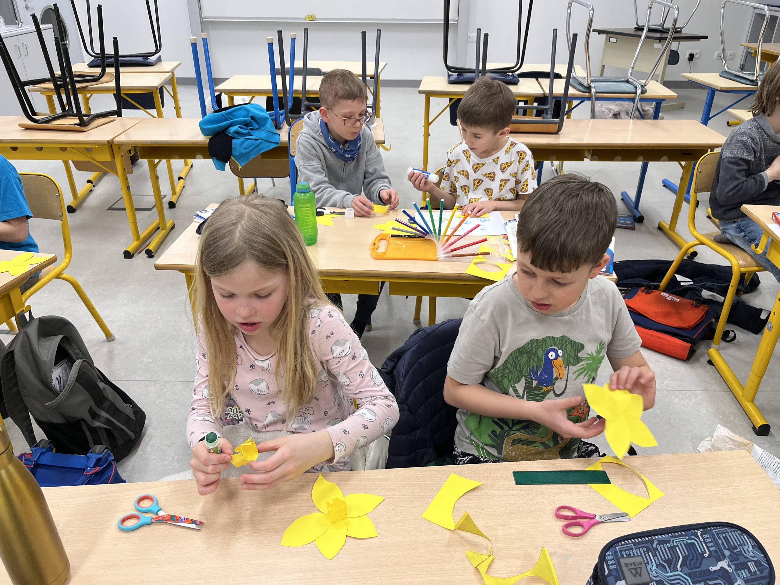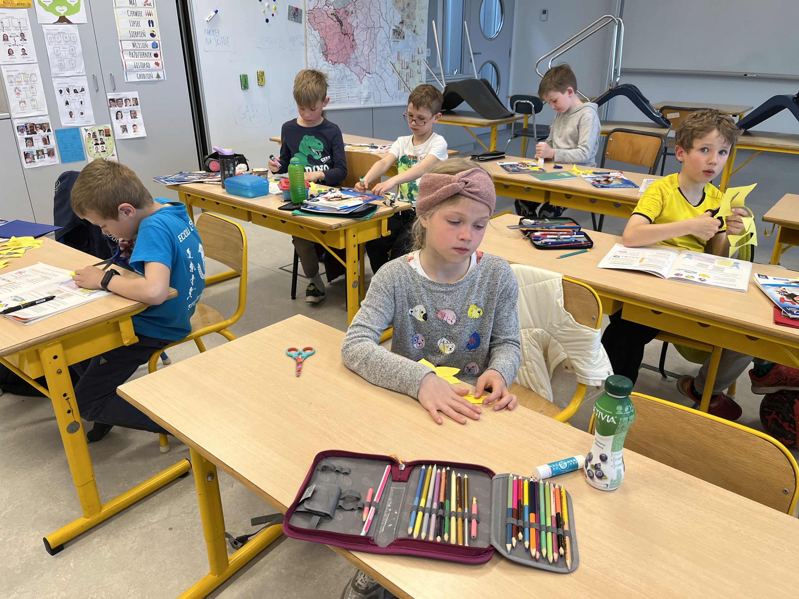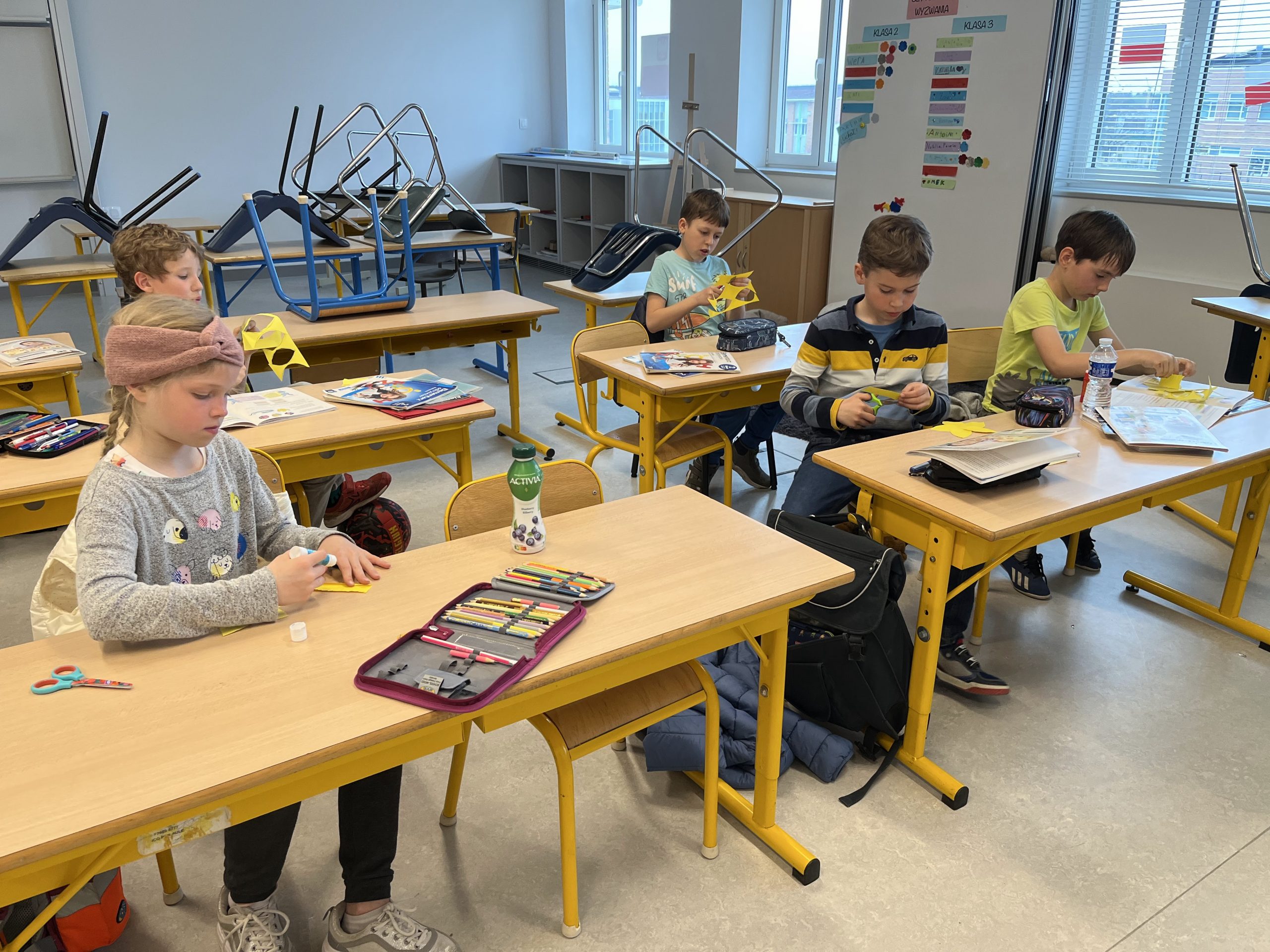 Uczniowie klas I – III nie mogli przejść obok tego faktu obojętnie i przygotowali kolorowe dekoracje przywołując upragnioną wiosnę.
