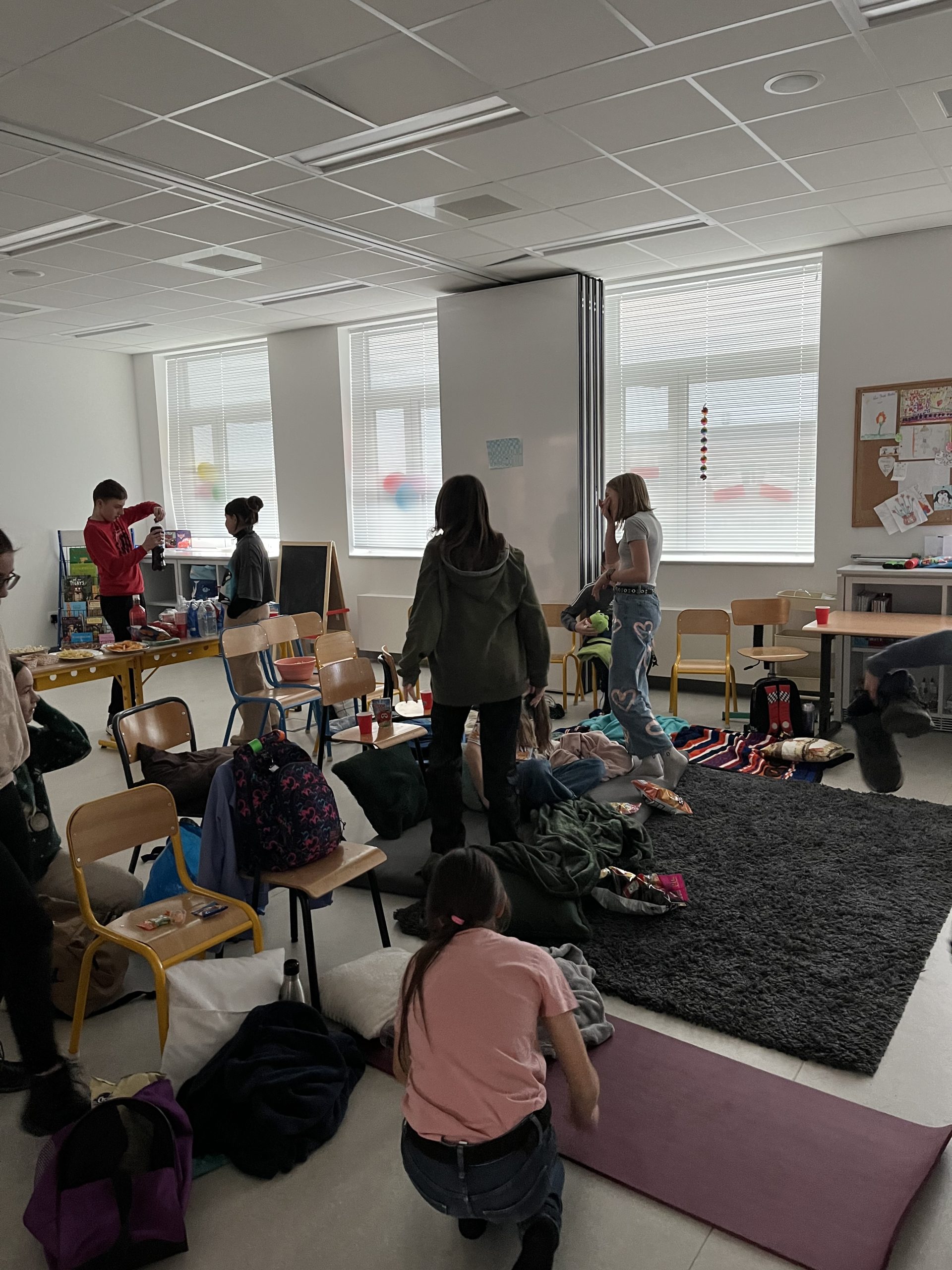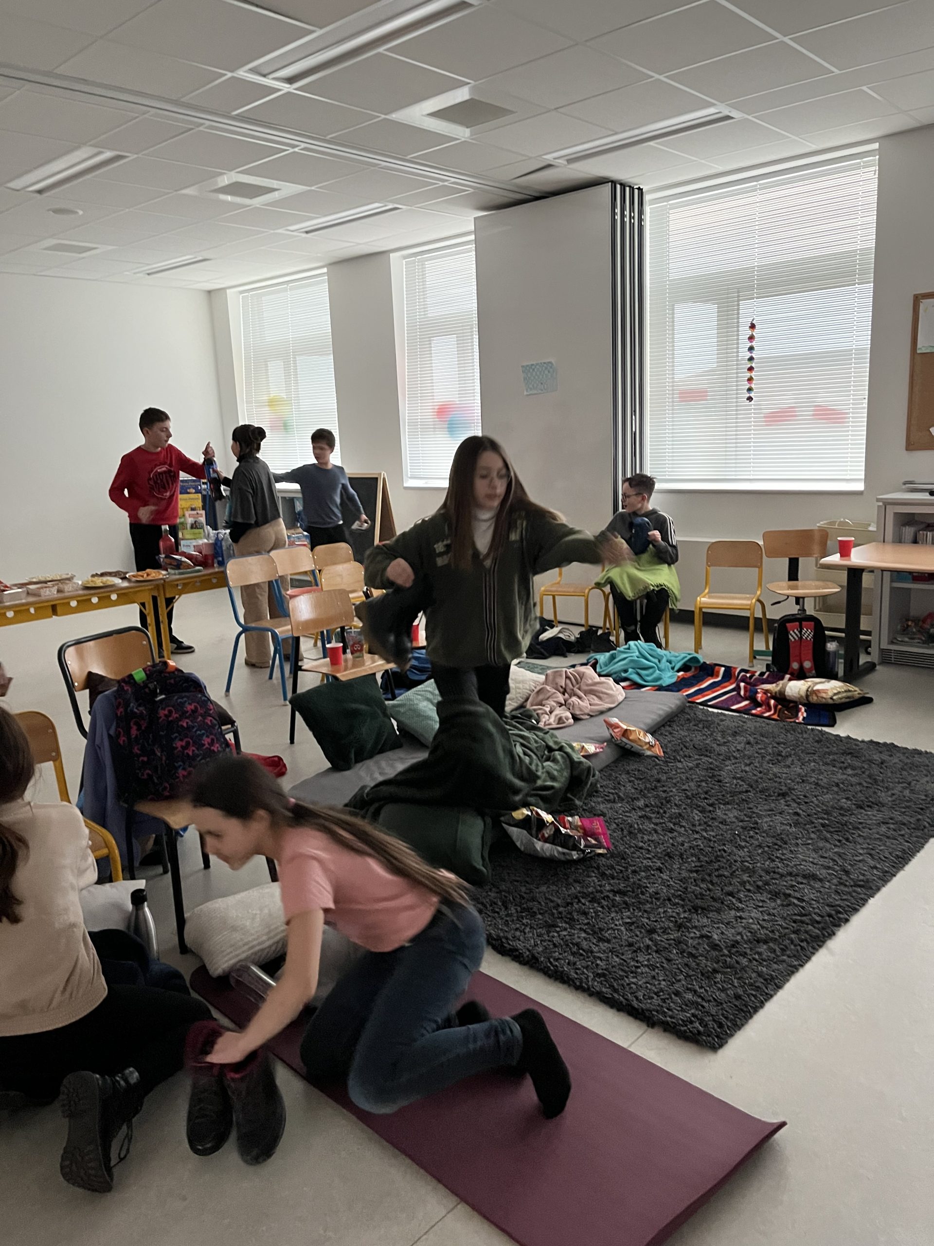 Dla starszych uczniów nauczyciele i rodzice zorganizowali wieczór filmowy. W dwóch „salach kinowych” uczniowie spotkali się z bohaterami filmów „The karate Kid” i „Braveheart”. Oprócz uczty dla ducha, była również uczta dla ciała: pizza, przekąski i smaczne gofry.