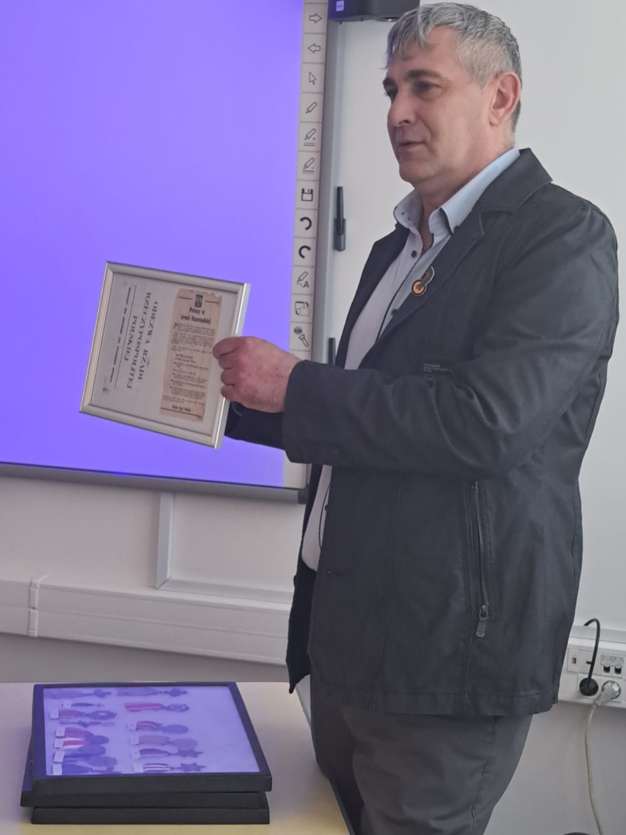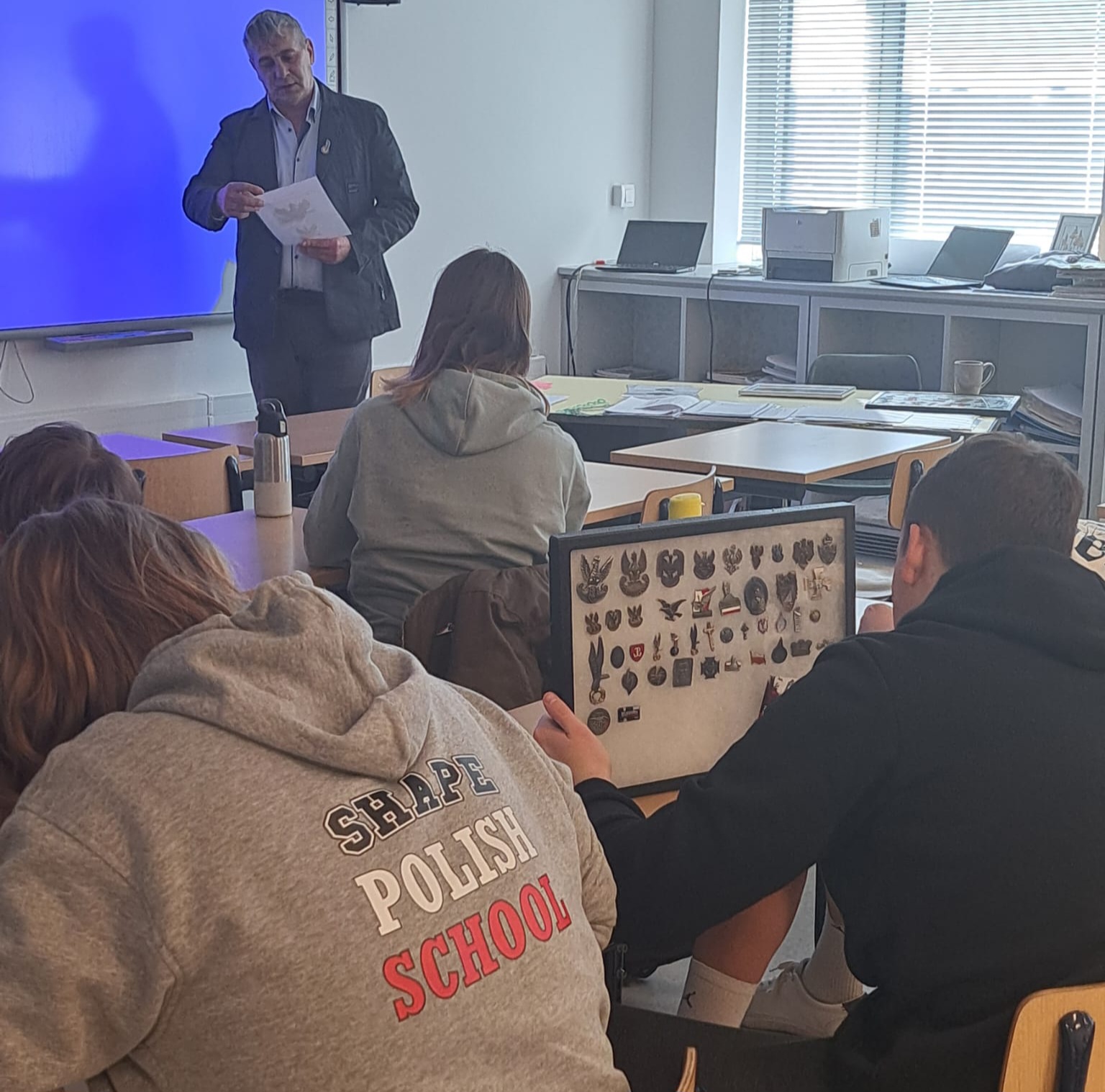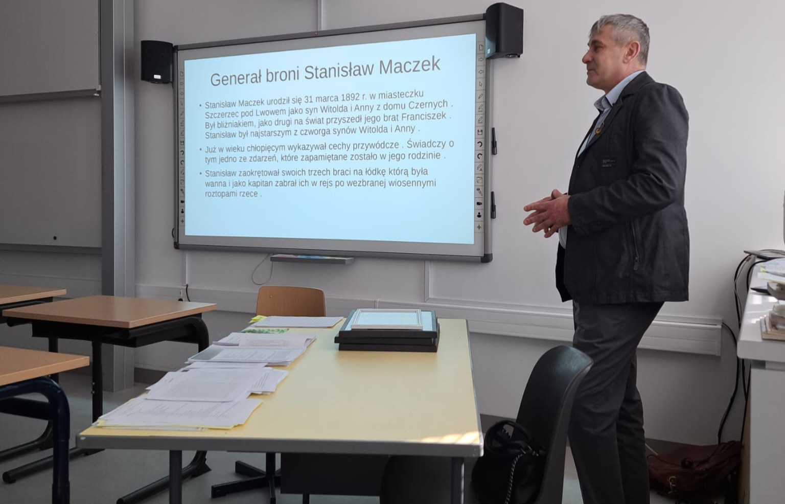 4 kwietnia 2023 mieliśmy zaszczyt gościć Pana Witka Gudysia wraz z żoną Marzeną (Polska Grupa Pamięci Historycznej), którzy po raz kolejny z ogromną pasją przedstawili naszym uczniom postać generała Stanisława Maczka.