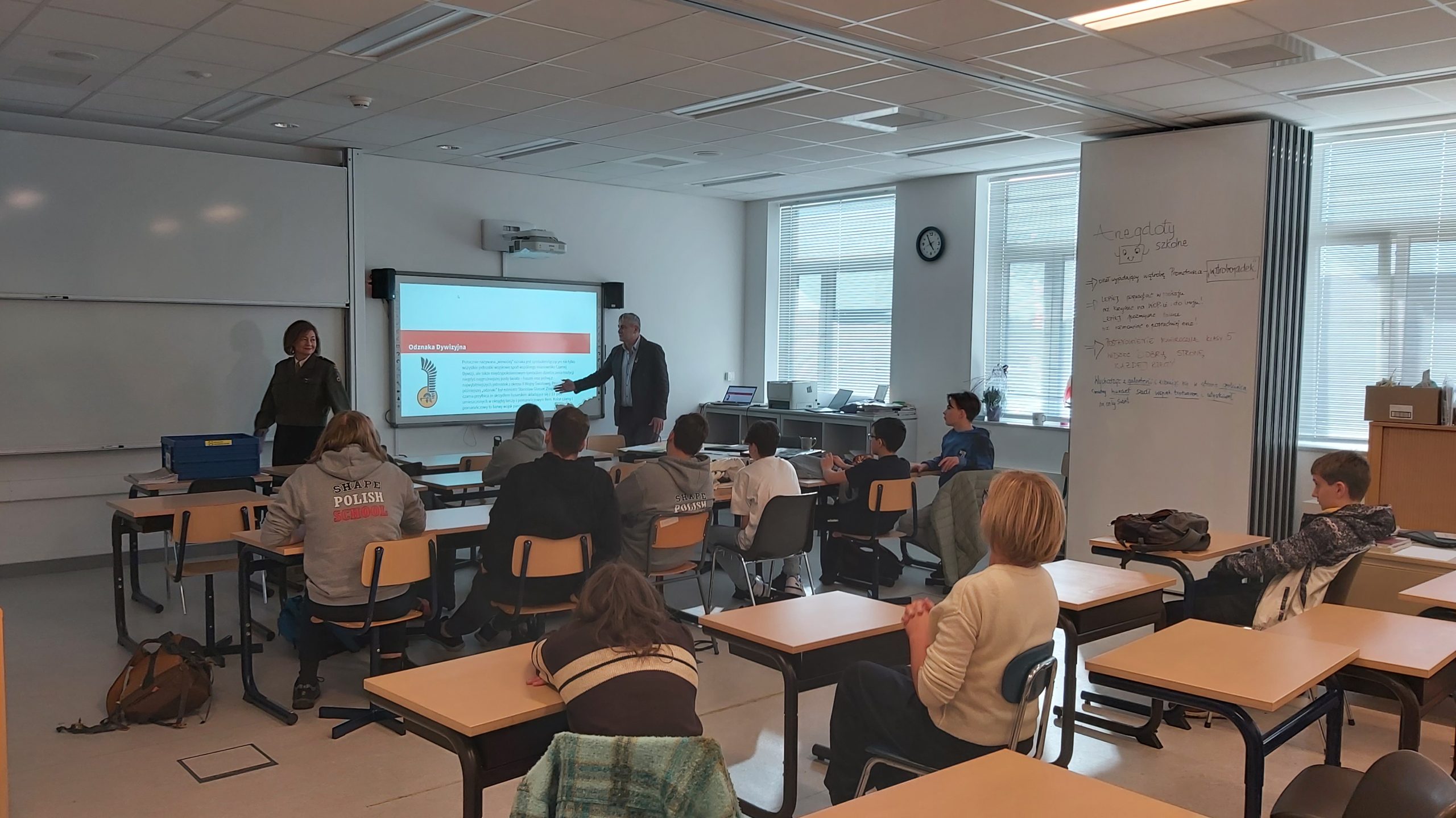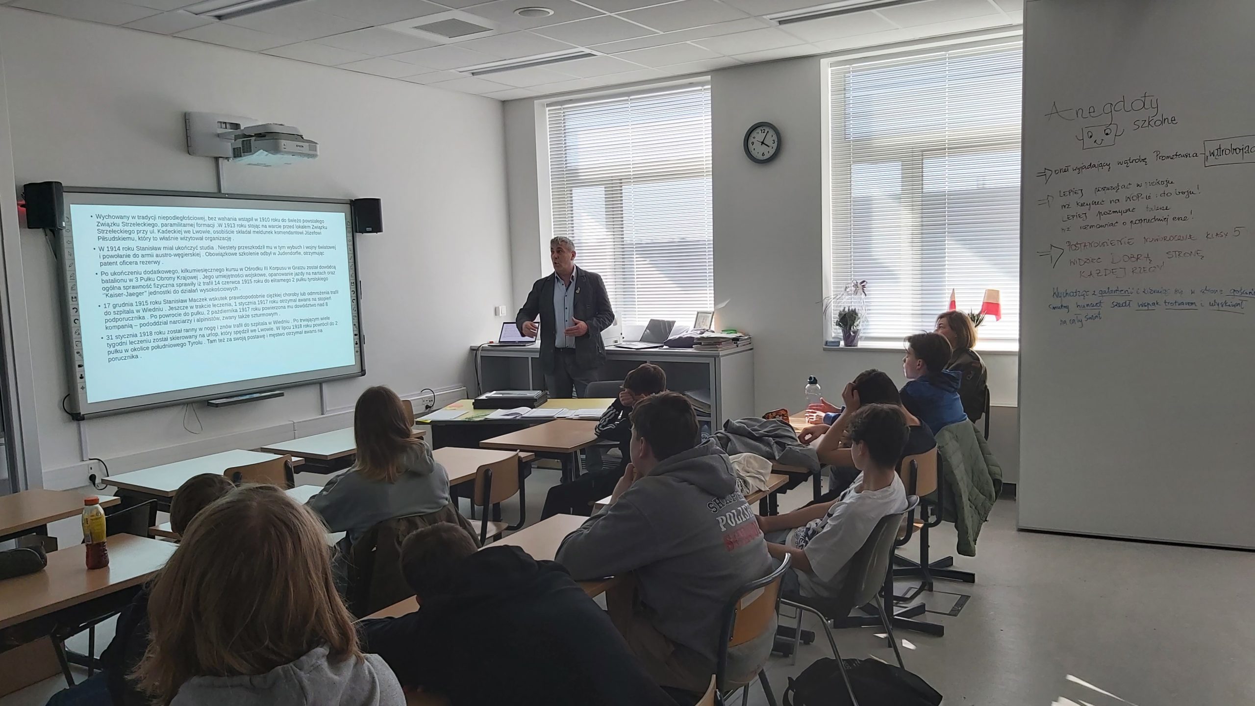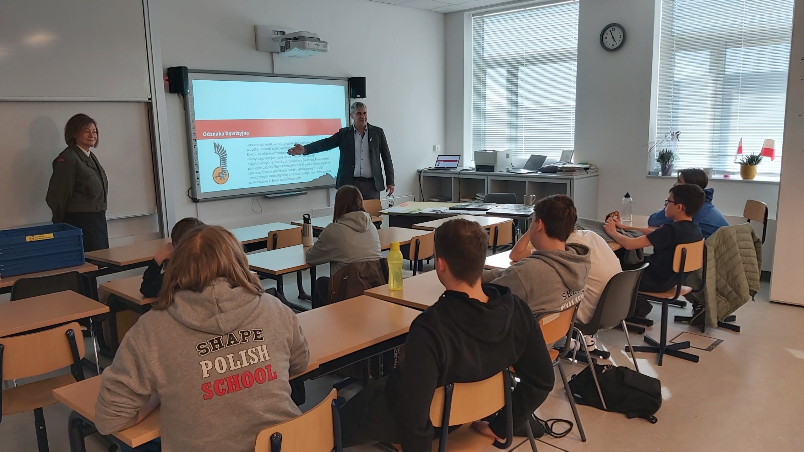 4 kwietnia 2023 mieliśmy zaszczyt gościć Pana Witka Gudysia wraz z żoną Marzeną (Polska Grupa Pamięci Historycznej), którzy po raz kolejny z ogromną pasją przedstawili naszym uczniom postać generała Stanisława Maczka.