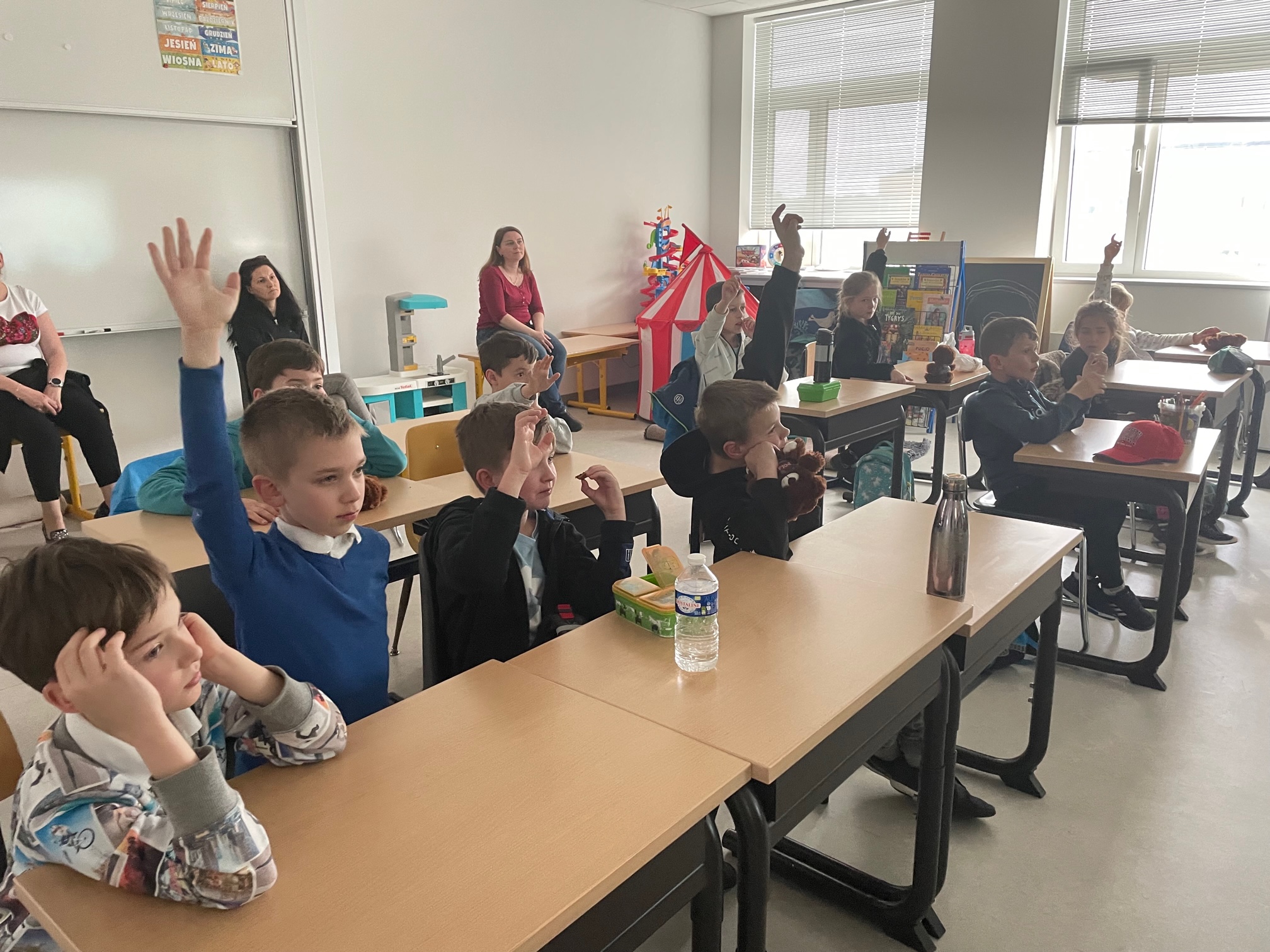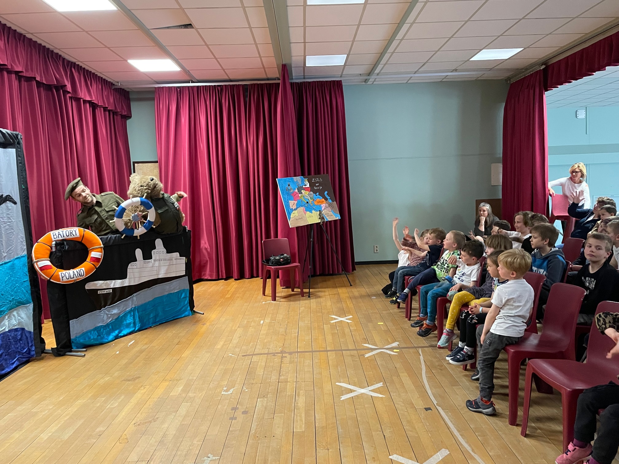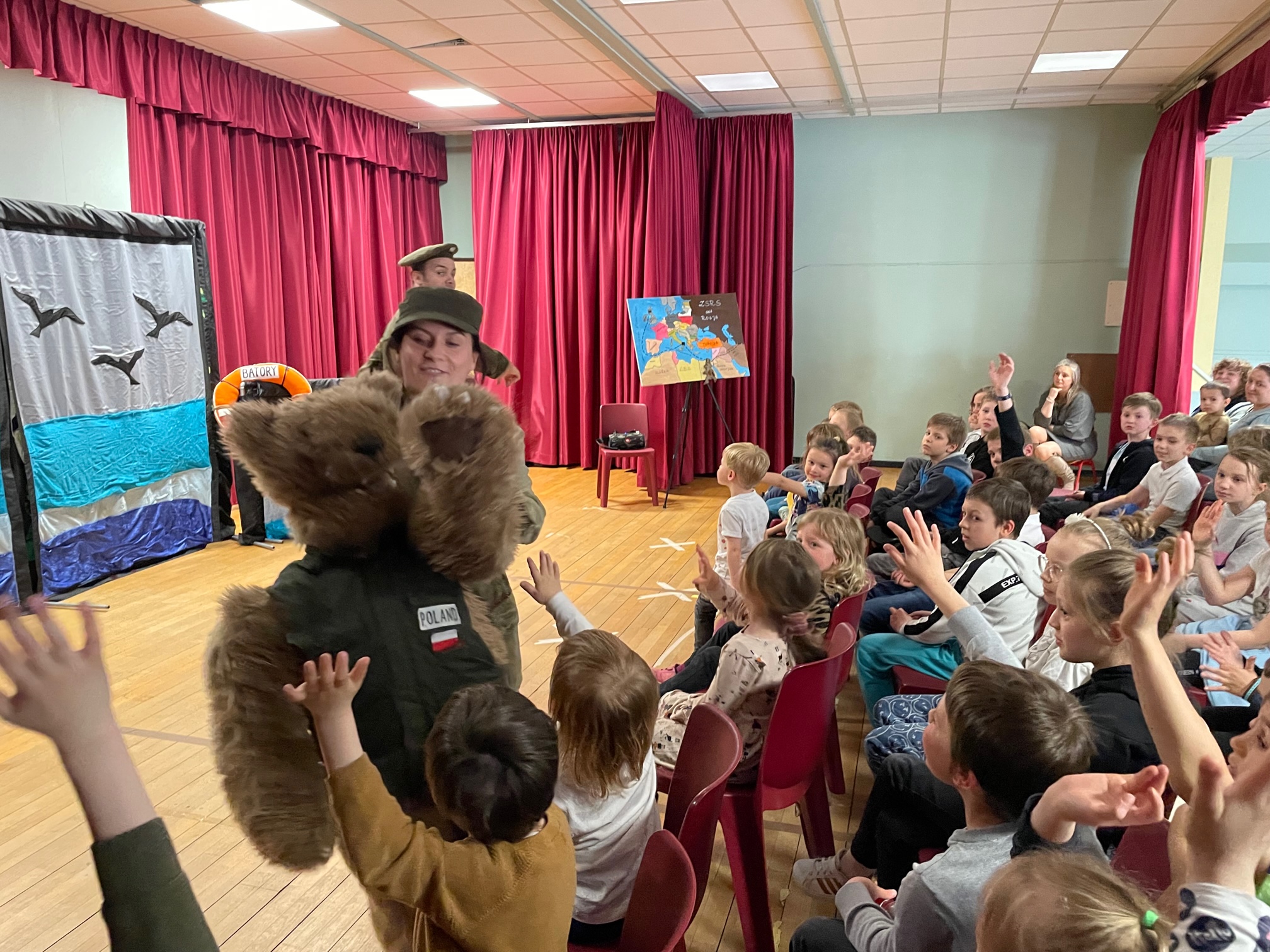 Popołudniowe zajęcia w Szkole Polskiej były nie mniej emocjonujące. Gościliśmy grupę aktorów i historyków z oddziału edukacyjnego IPN. Najmłodsi uczniowie poznali losy niedźwiedzia Wojtka i żołnierzy z Armii gen. Władysława Andersa. Nieco starsi mieli okazję uczestniczyć w niezwykłych warsztatach historycznych poświęconych polskim lotnikom z dywizjonów 302 i 303, najstarsi natomiast wsłuchiwali się w opowieści o gen. Elżbiecie „Zo” Zawackiej i elicie polskiej dywersji-Cichociemnych. To były pięknie opowiedziane historie o ważnych dla naszego państwa i narodu wydarzeniach i bohaterach. Z wielka radością i uwagą wysłuchamy w przyszłości kolejnych takich opowieści.