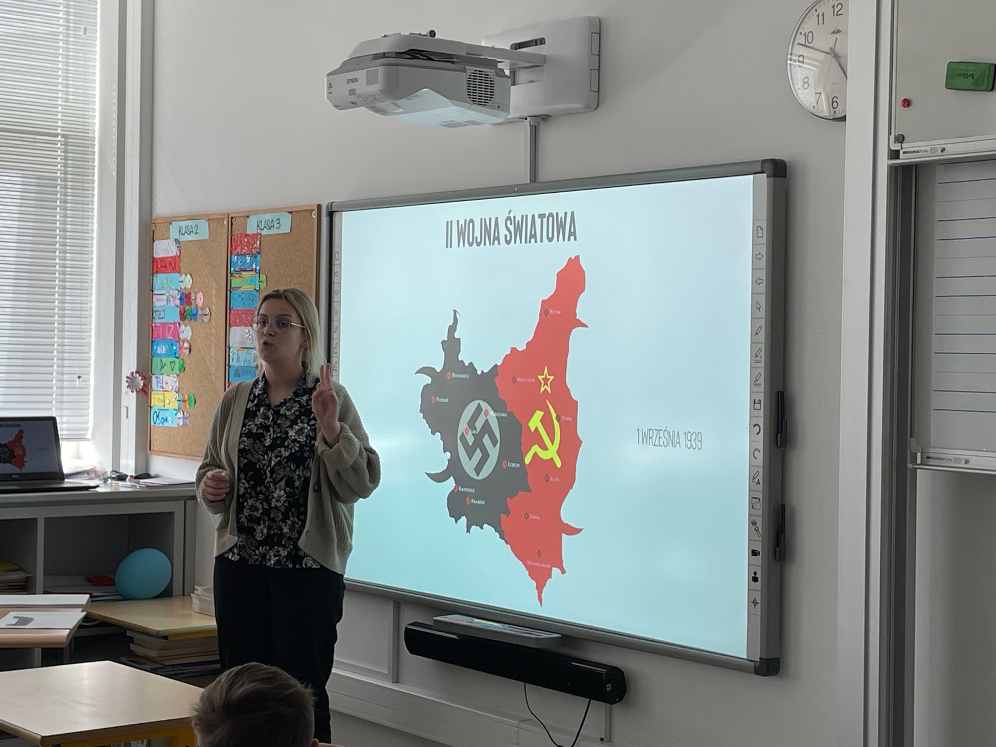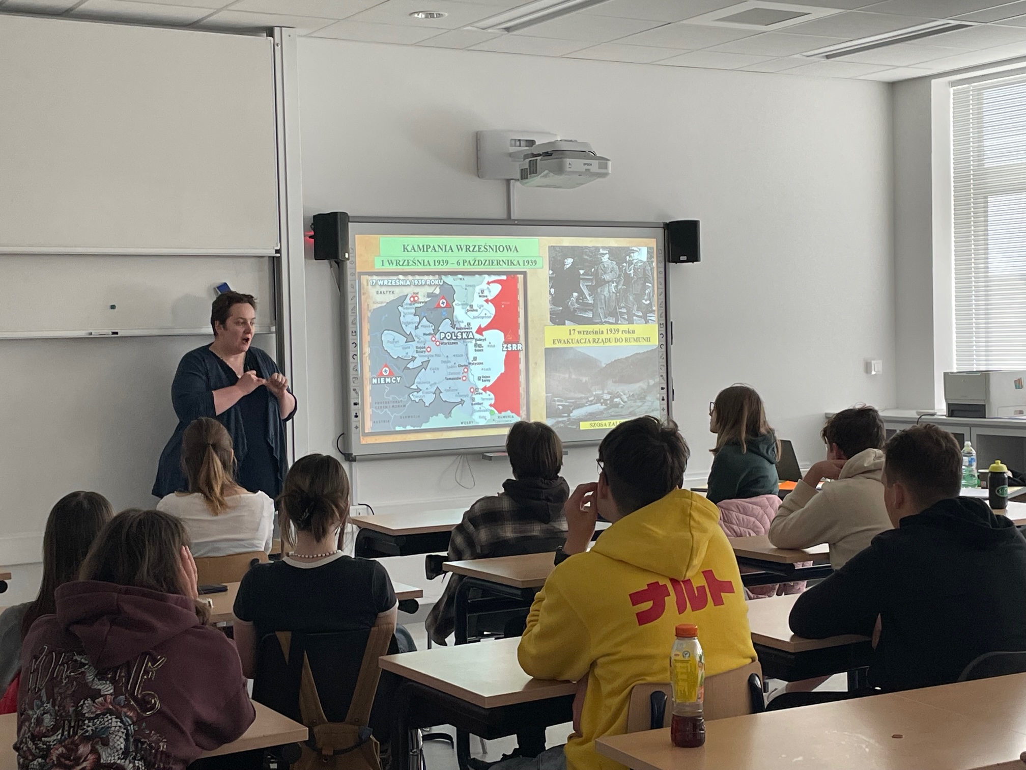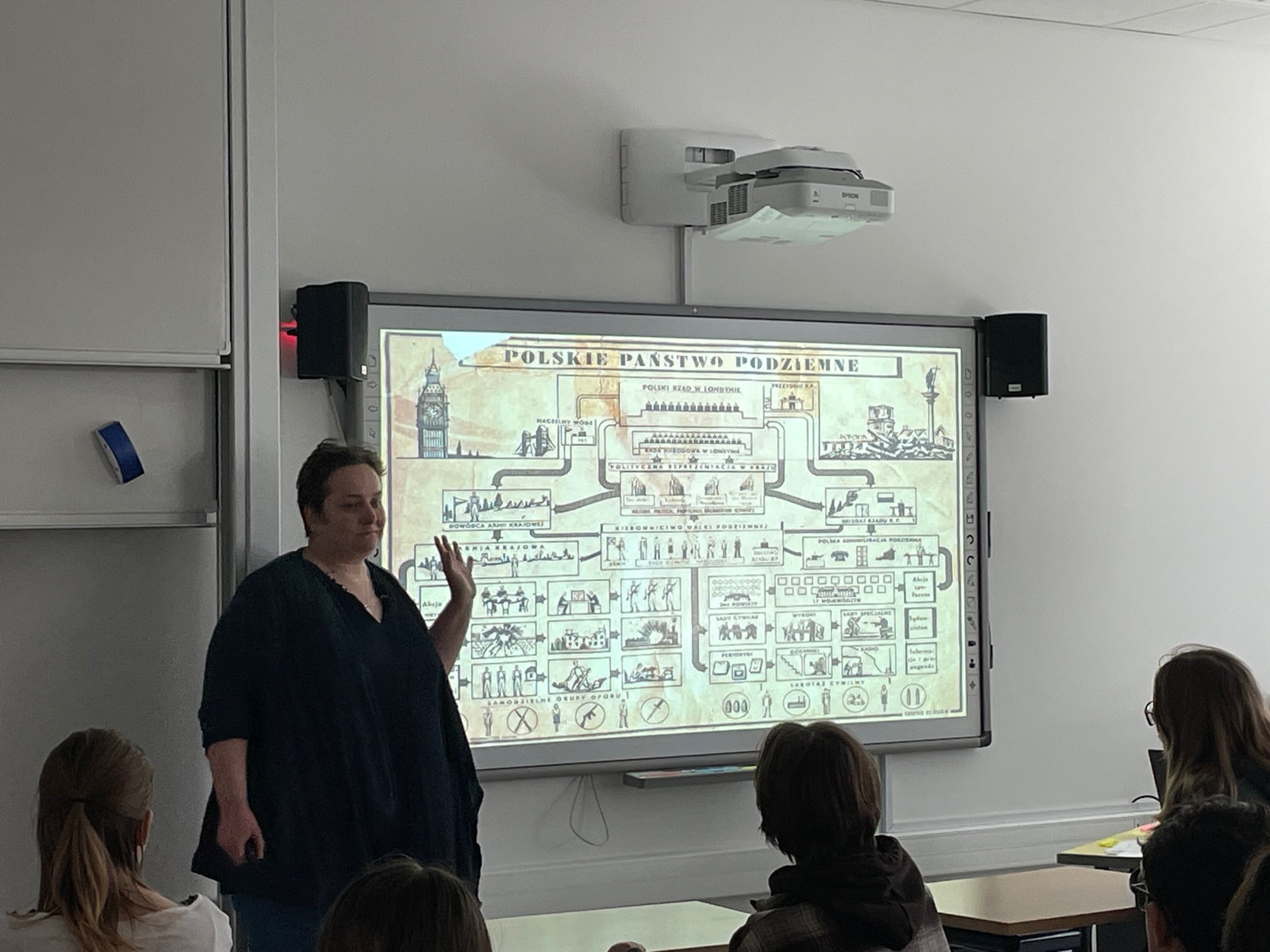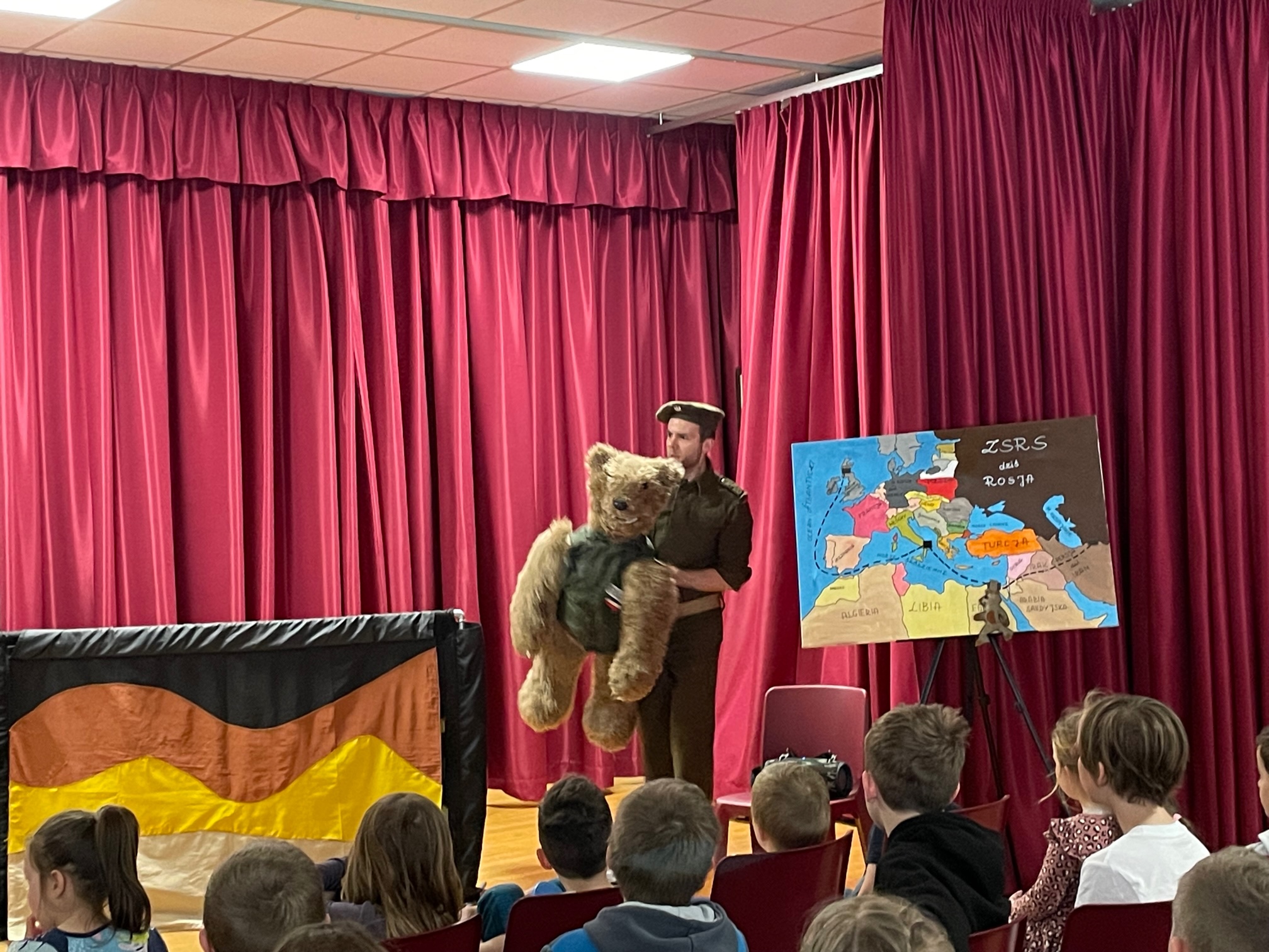 Popołudniowe zajęcia w Szkole Polskiej były nie mniej emocjonujące. Gościliśmy grupę aktorów i historyków z oddziału edukacyjnego IPN. Najmłodsi uczniowie poznali losy niedźwiedzia Wojtka i żołnierzy z Armii gen. Władysława Andersa. Nieco starsi mieli okazję uczestniczyć w niezwykłych warsztatach historycznych poświęconych polskim lotnikom z dywizjonów 302 i 303, najstarsi natomiast wsłuchiwali się w opowieści o gen. Elżbiecie „Zo” Zawackiej i elicie polskiej dywersji-Cichociemnych. To były pięknie opowiedziane historie o ważnych dla naszego państwa i narodu wydarzeniach i bohaterach. Z wielka radością i uwagą wysłuchamy w przyszłości kolejnych takich opowieści.