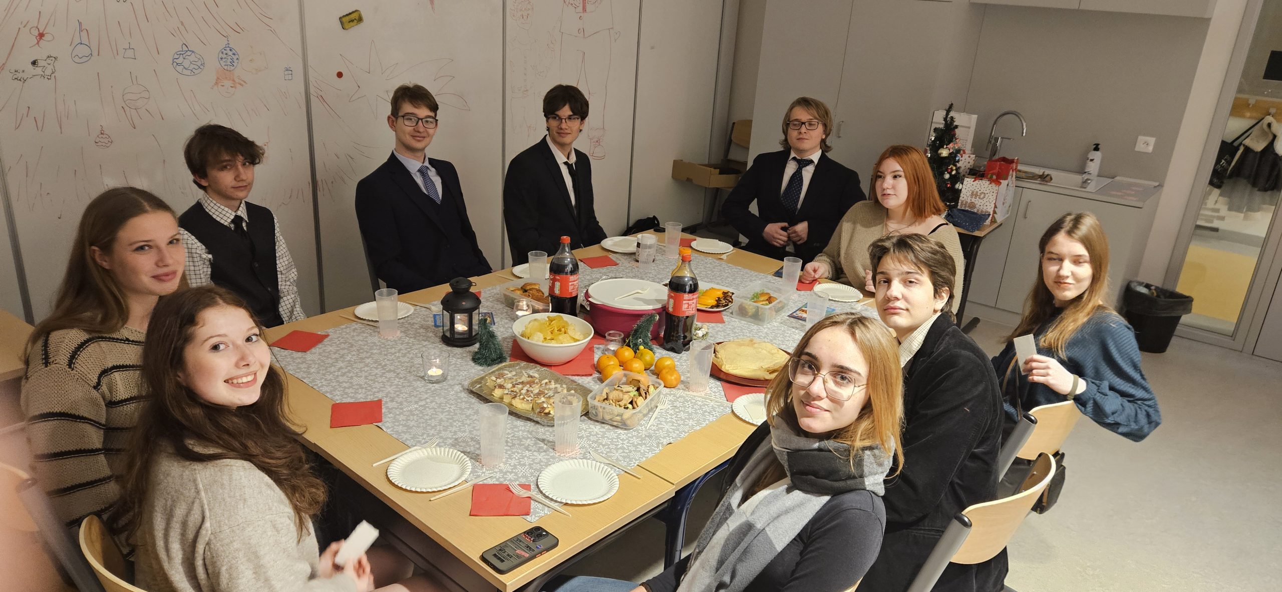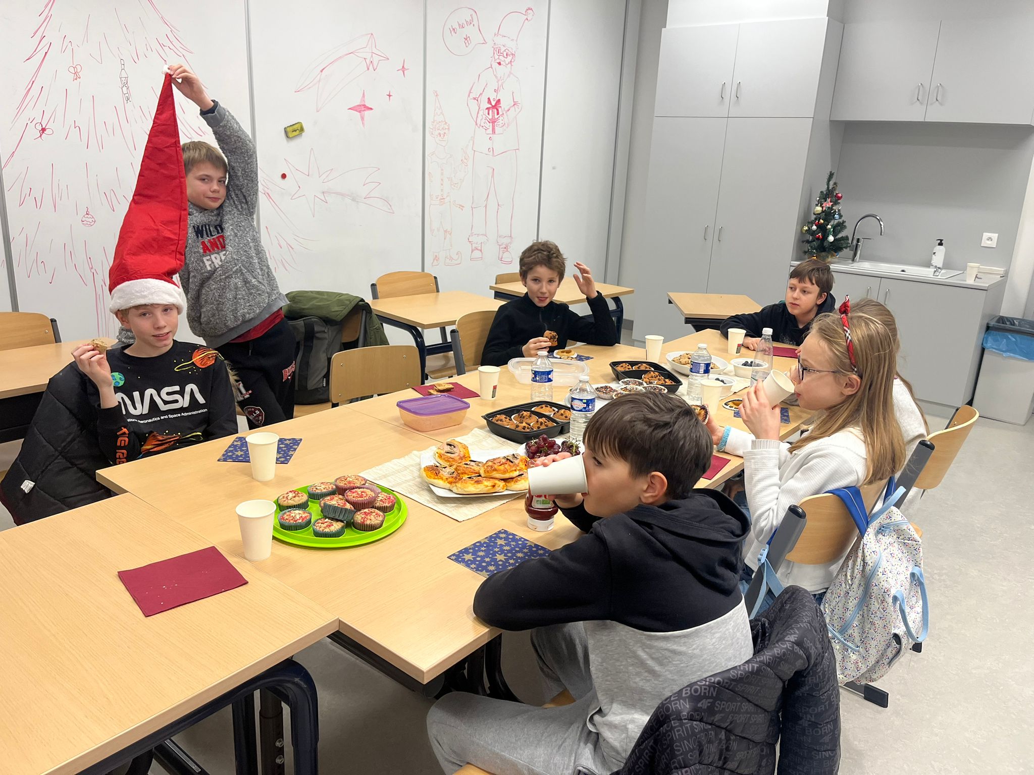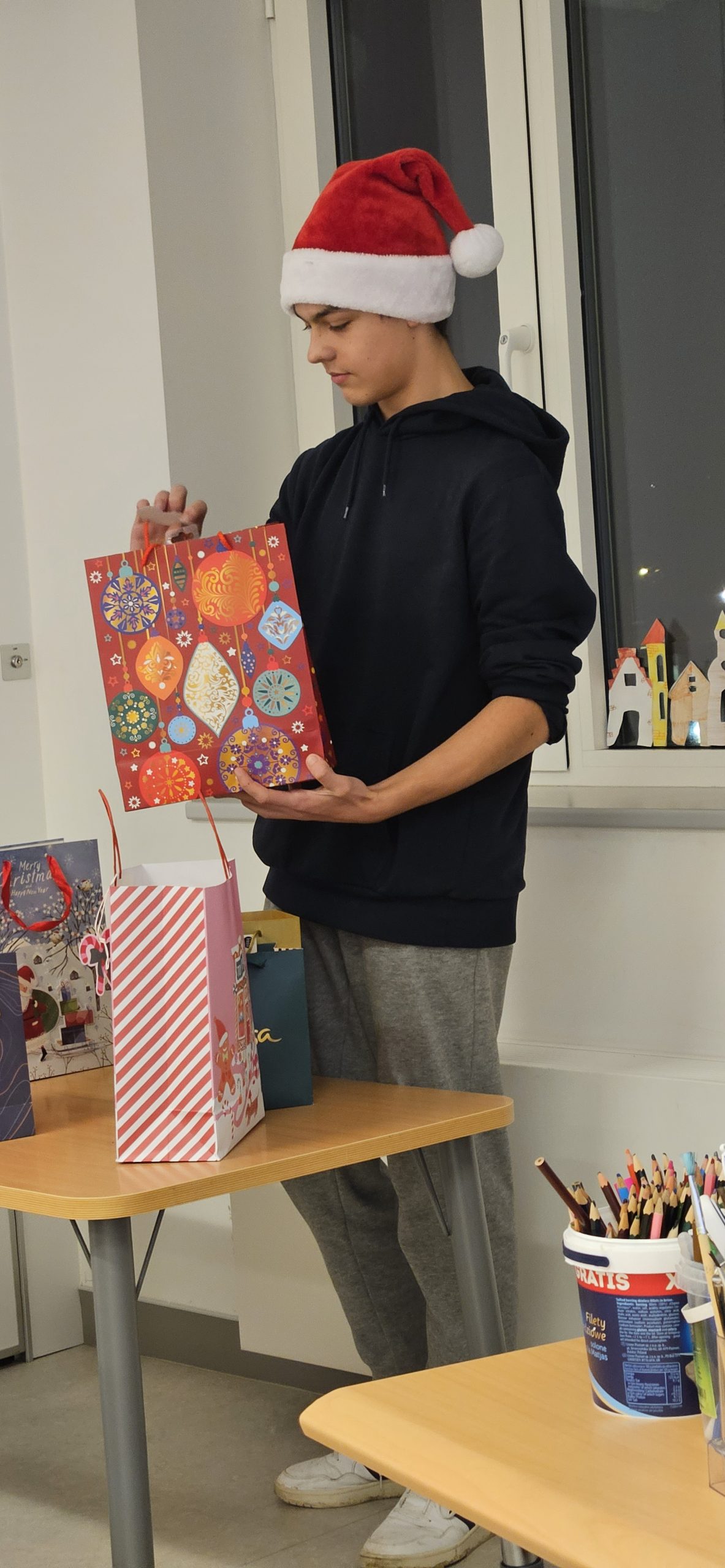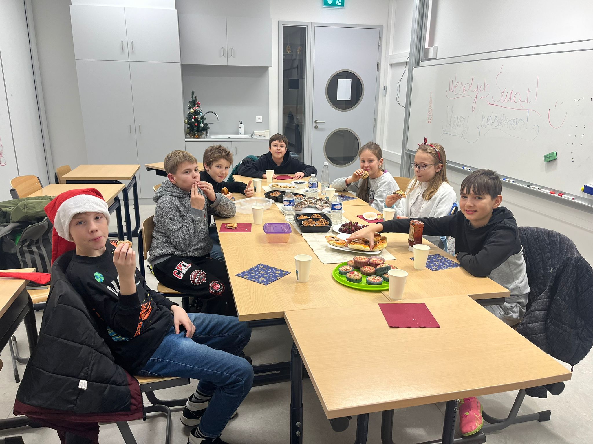 W szkole czuć już atmosferę zbliżających się Świąt. Na korytarzu spotkać można Mikołaja z workiem prezentów. Wszędzie roznosi się zapach wigilijnych potraw, przeplatany z korzenną nutą pierników. Każdy jest uśmiechnięty, słysząc rozbrzmiewające kolędy i pastorałki….