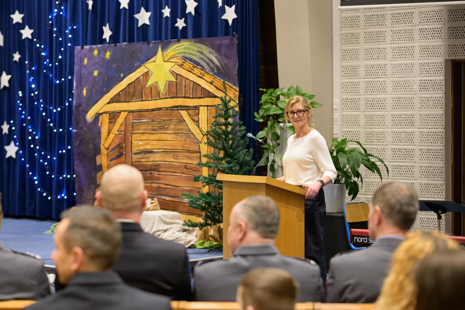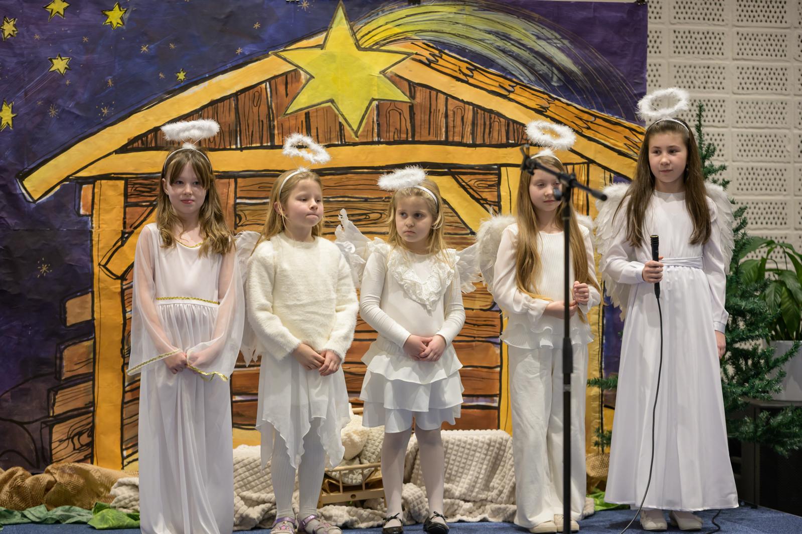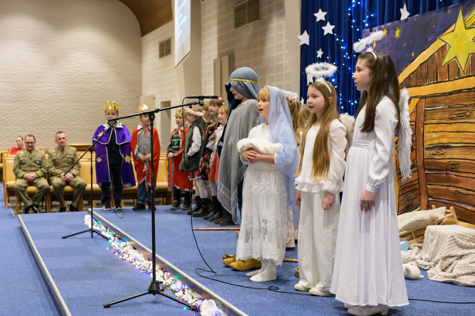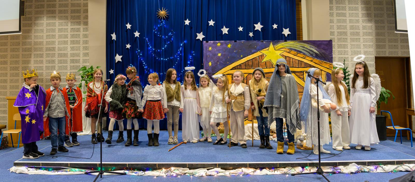 11 grudnia w Międzynarodowej Kaplicy zrobiło się wyjątkowo świątecznie, a wszystko za sprawą jasełek bożonarodzeniowych przygotowanych przez uczniów klas 1–3. Mali artyści zaprezentowali swoje przedstawienie polskim rodzinom mieszkającym i pracującym w SHAPE, skutecznie wprowadzając wszystkich w radosny, bożonarodzeniowy nastrój.