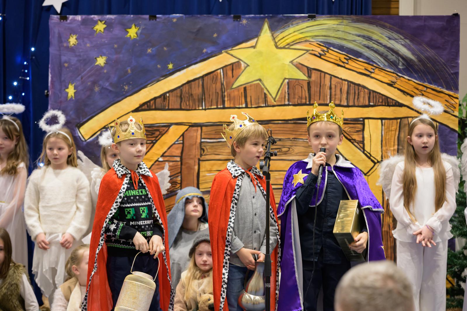 Nasi uczniowie z ogromnym zaangażowaniem wcielili się w swoje role, przypominając historię narodzin Jezusa. Były piękne stroje, donośne kolędy – czasem śpiewane z pełnym przekonaniem, czasem z uroczą improwizacją – oraz dziecięca radość, która sprawiła, że całe wydarzenie miało niezwykle ciepły i wzruszający charakter.