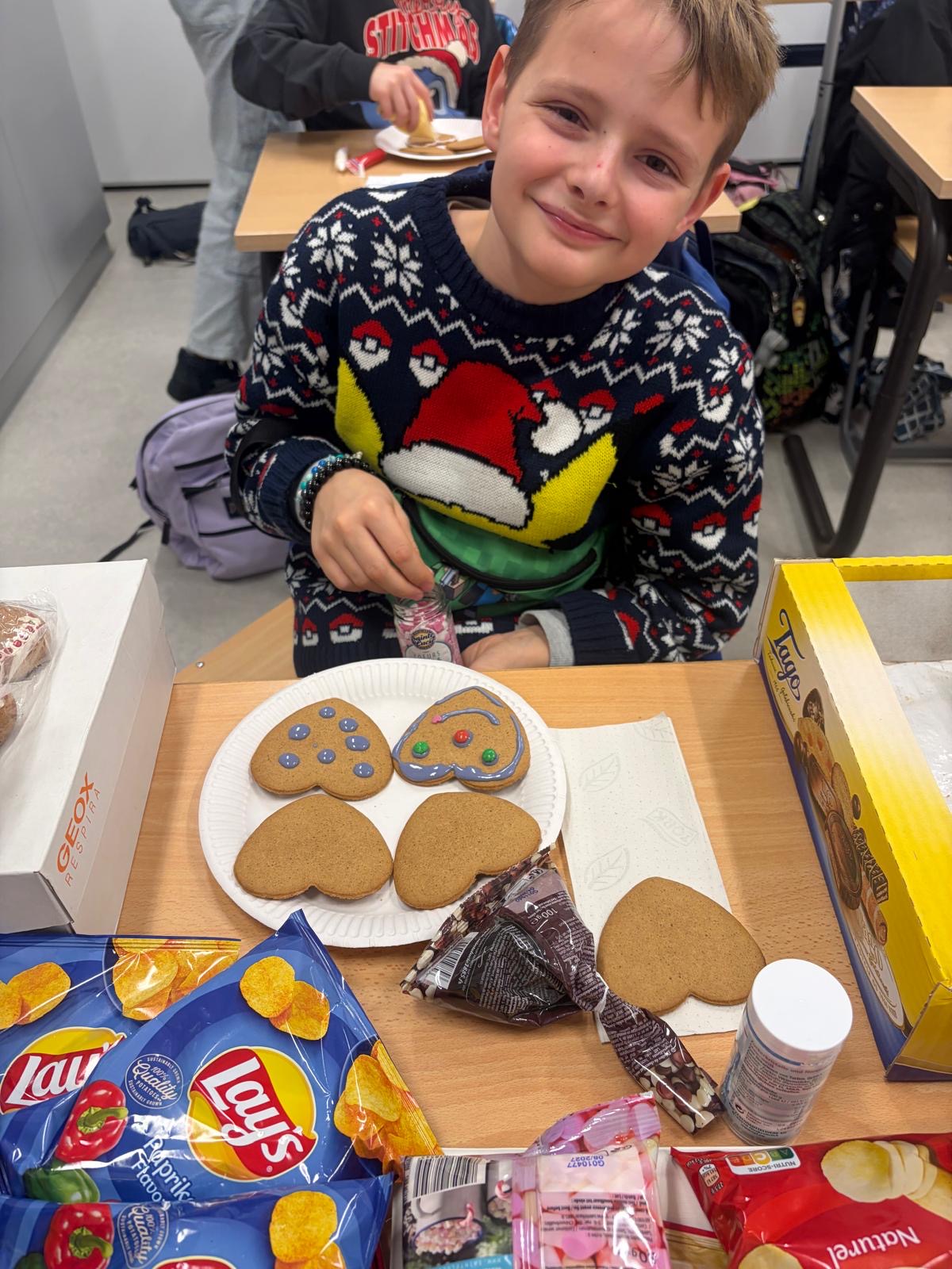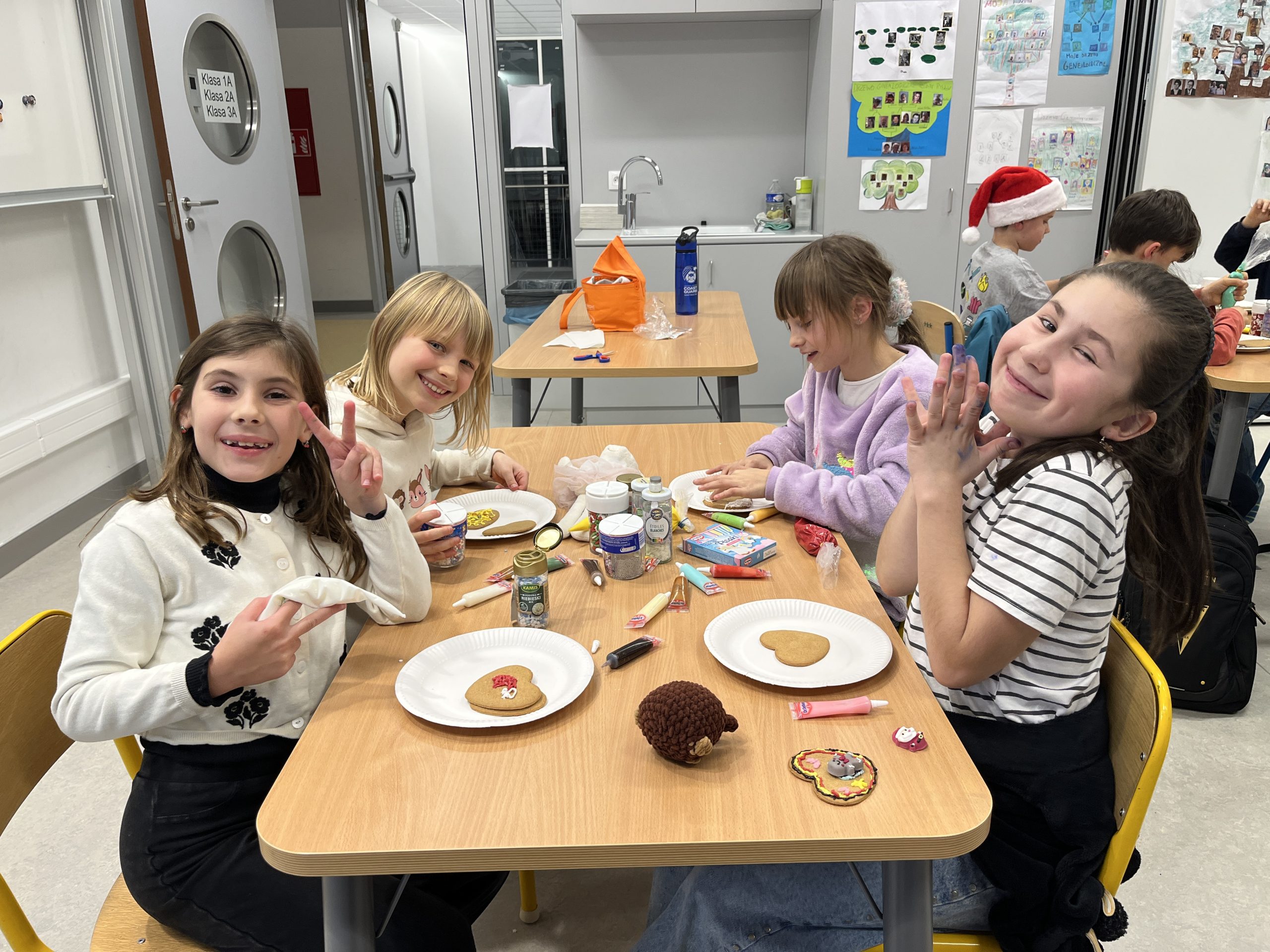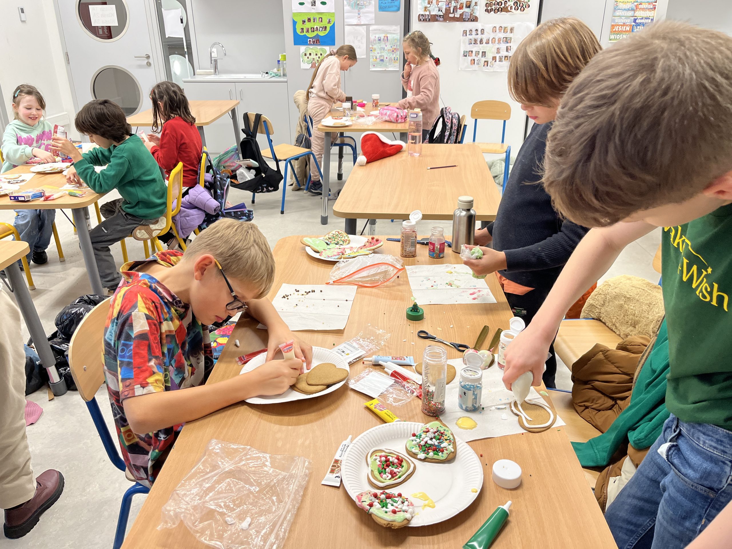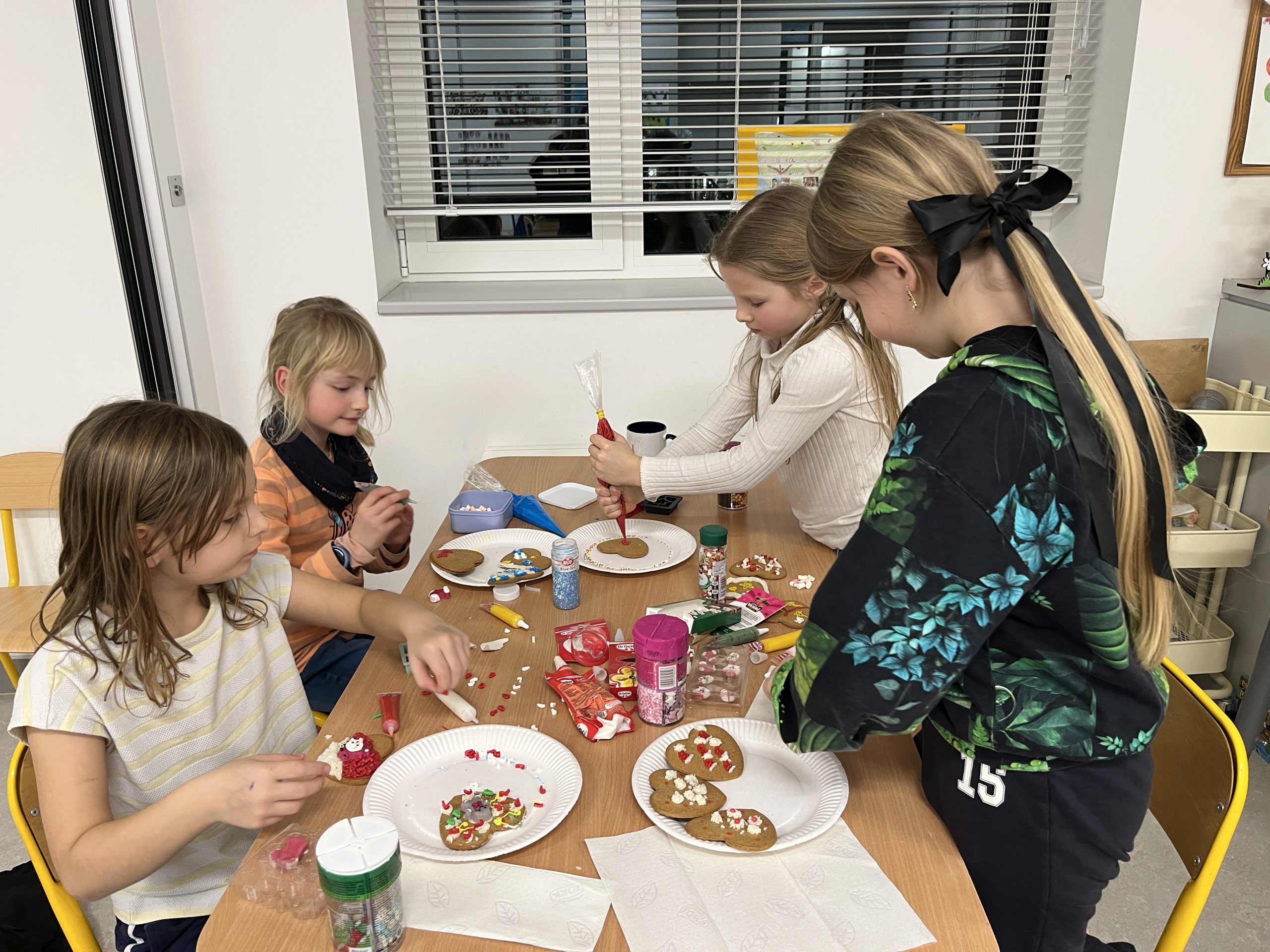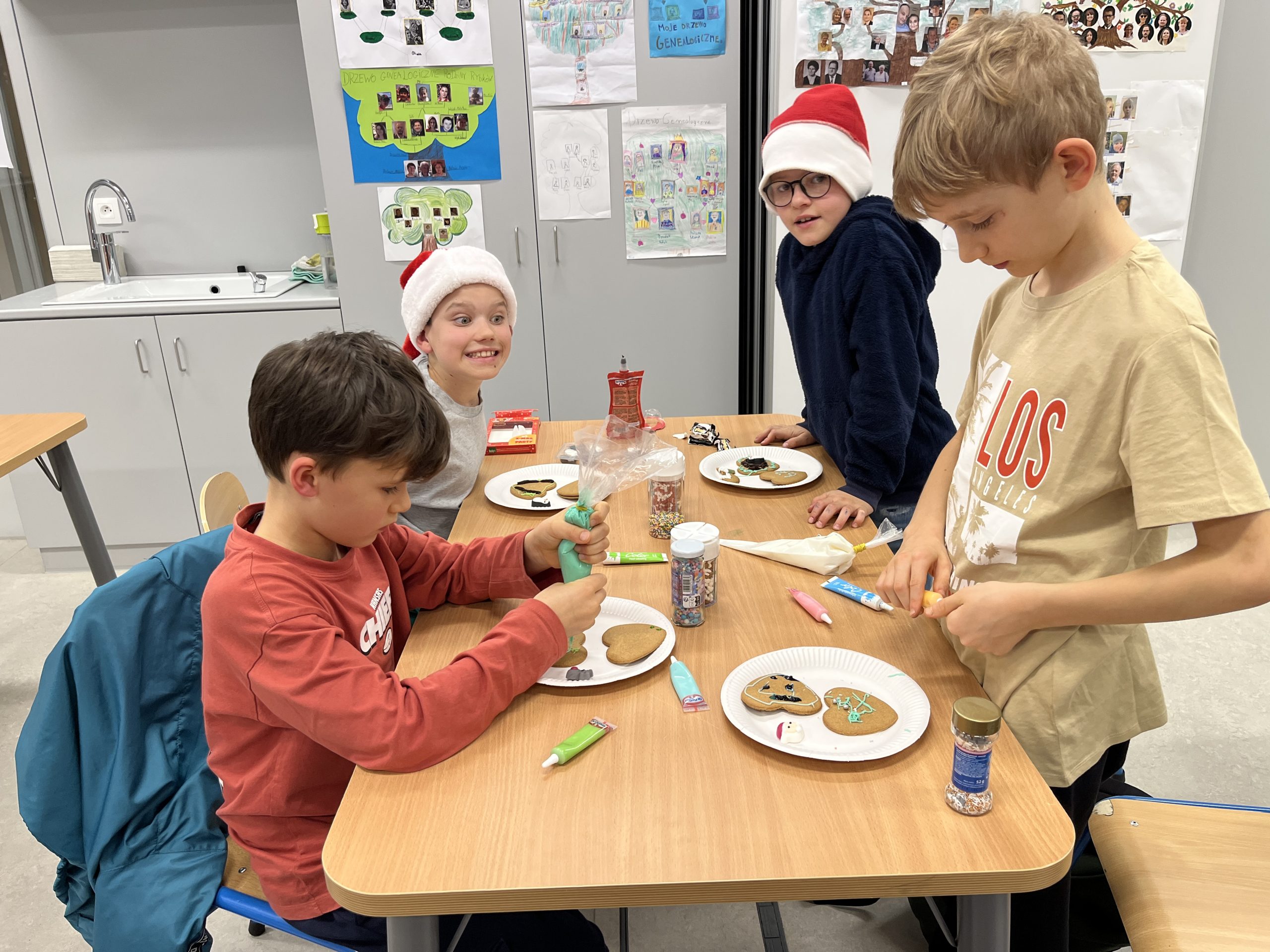 Mikołajki w naszej szkole już na stałe wpisały się w kalendarz ważnych wydarzeń. To przecież znak, że już niedługo będą święta Bożego Narodzenia. Tego dnia atmosfera była niezwykle magiczna i świąteczna, pełna uśmiechu dzieci i nauczycieli. Uczniowie wprowadzili wszystkich obecnych w magiczny nastrój poprzez udekorowanie sal i przygotowanie stołów do poczęstunku, po części ufundowanego przez Radę Rodziców. Punktem centralnym był czas obdarowywania się prezentami. Do młodszych uczniów przyszedł sam święty Mikołaj! A następnie wieczór zakończyły długo oczekiwane warsztaty dekorowania pierników. Każdy uczeń otrzymał zestaw pierników oraz lukier przygotowany i zapakowany starannie przez p.Danusię w woreczki. Ozdabianie pierników przebiegało w atmosferze skupienia i pełnego zaangażowania. Uczniowie wykazali się fantazją i niesamowitym kunsztem.