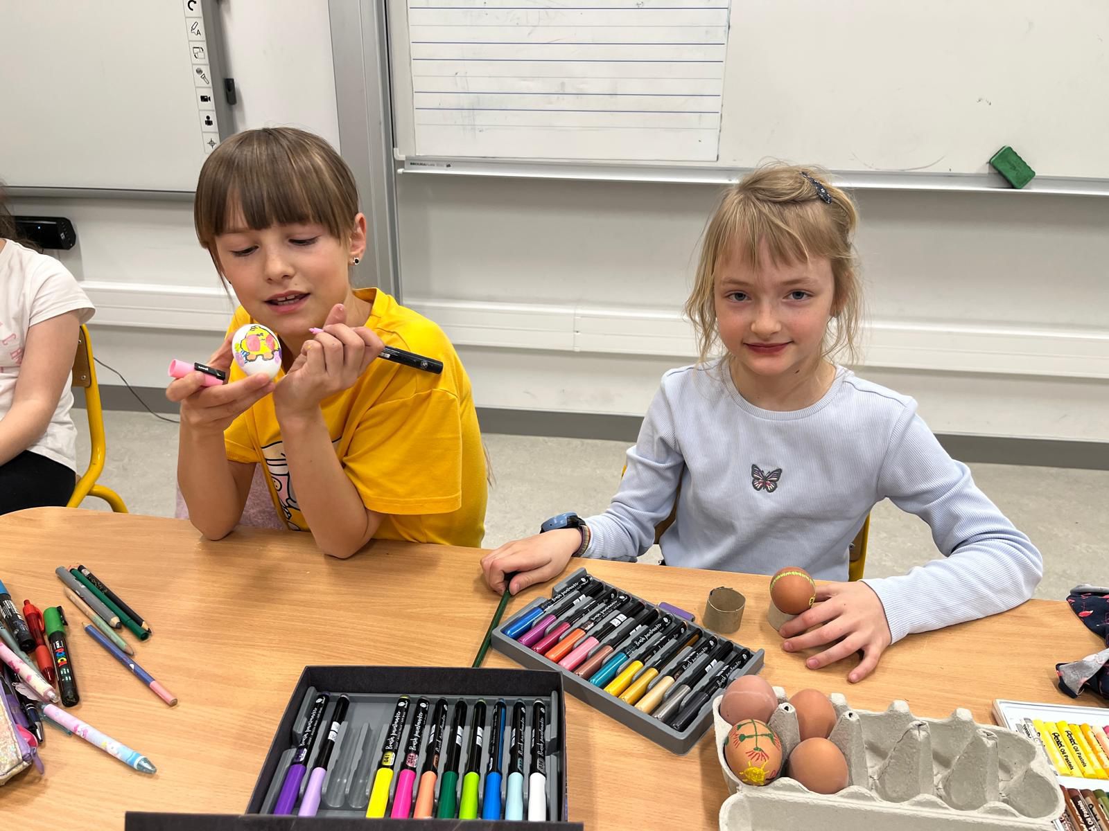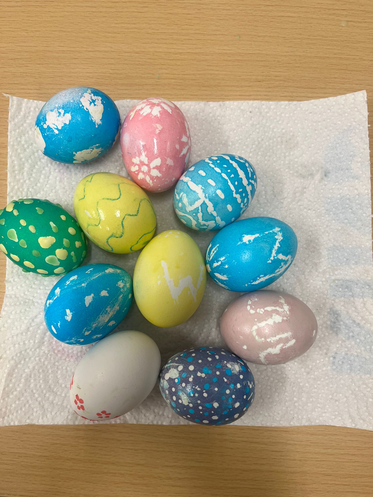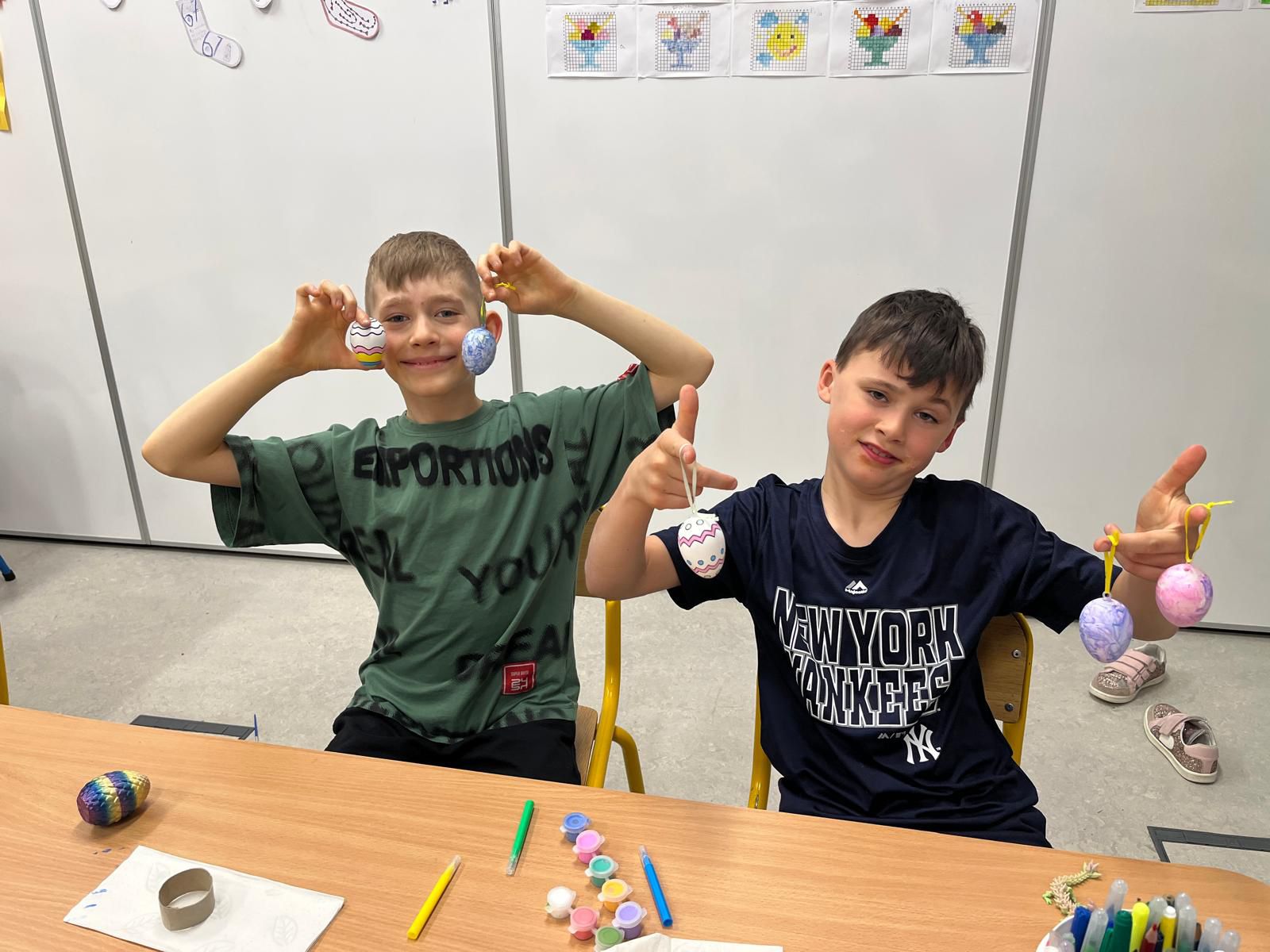 Nasi uczniowie już są gotowi na Święta Wielkanocne. Pisanki mienią się kolorami i róznymi wzorami.